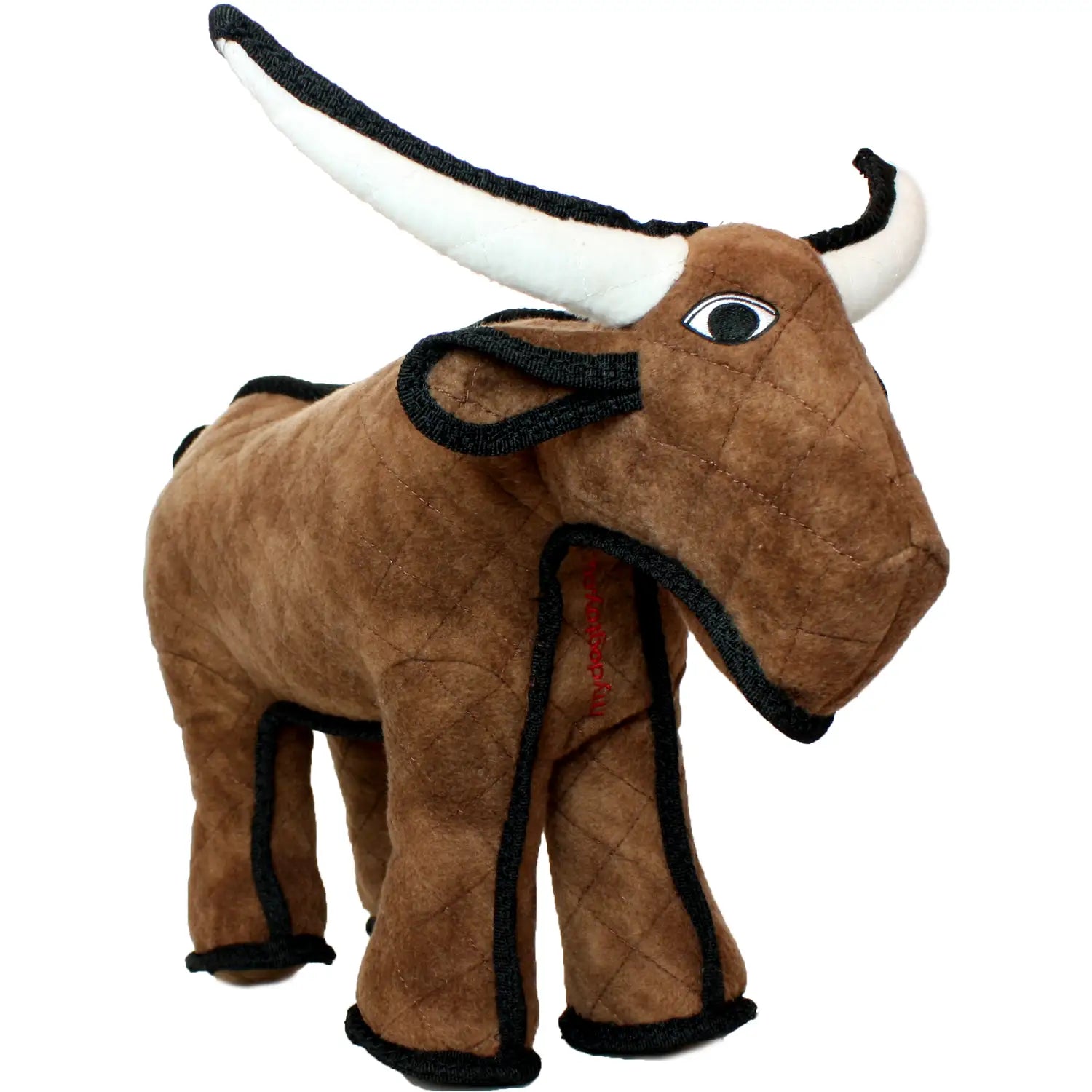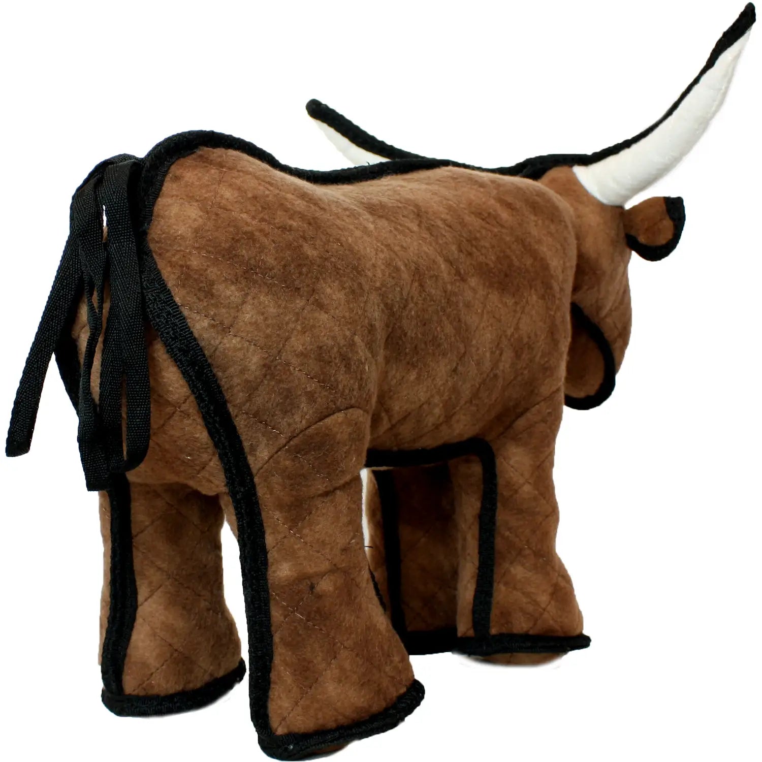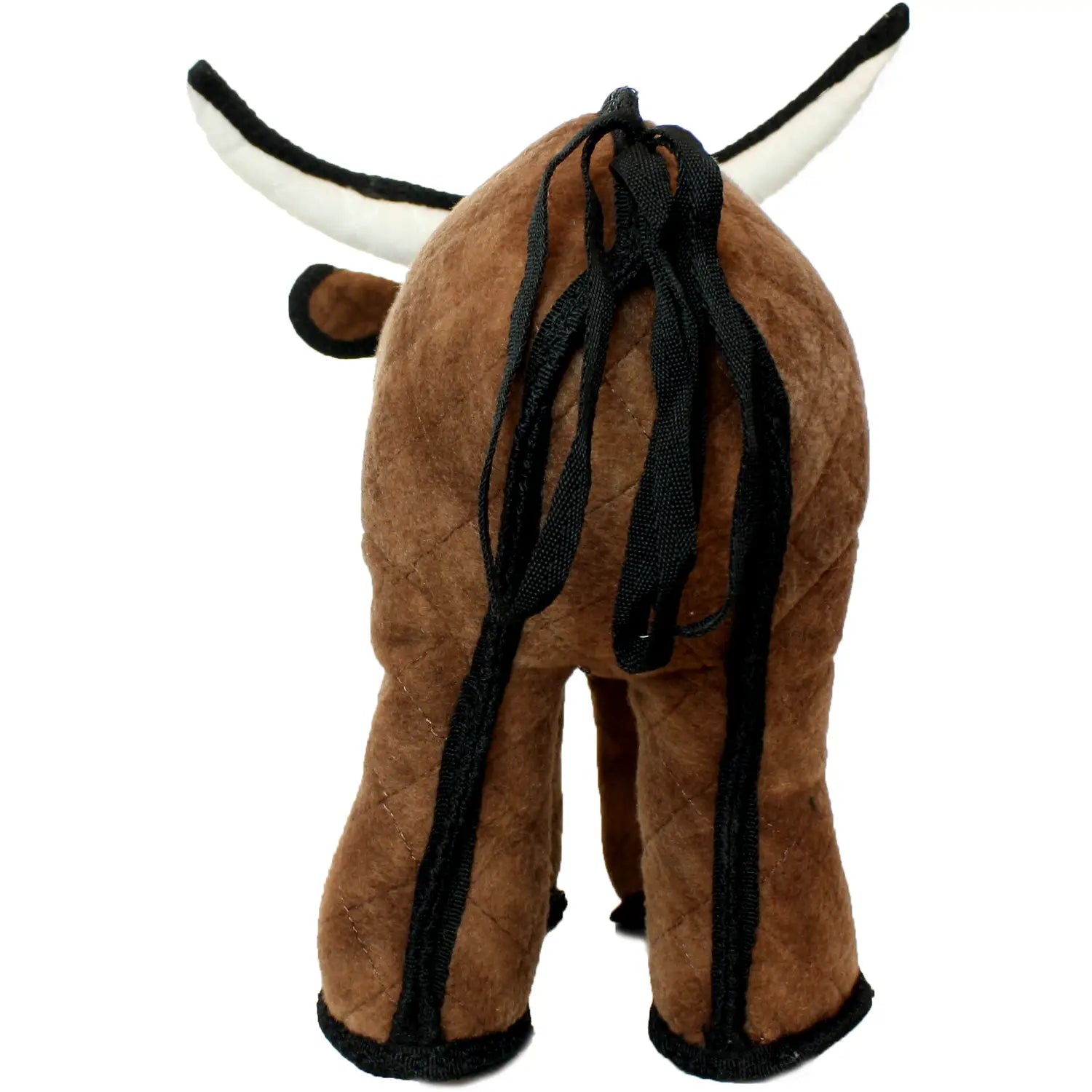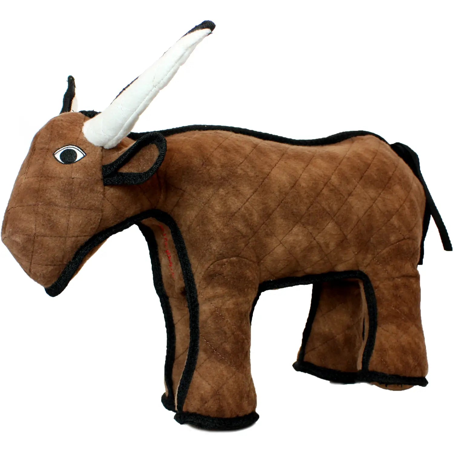 Tuffy Dog Toys – Bevo the Bull - No Bull—This Toy Means Tough Business! This Bull is the heavyweight champ of the Tuffy Barnyard Dog Toy Collection! Raised from the finest longhorn stock, Bevo is big, bold, and built to last. This extra-large plush dog toy is designed for rough-and-tumble play with larger breeds that love to tug, toss, and chase. Whether your dog’s a wrangler or a wrestler, Bevo’s got the grit to stay in the game. Made for interactive play, Bevo is double-stitched, packed with durable layers, and squeaks with every squeeze to keep tails wagging.