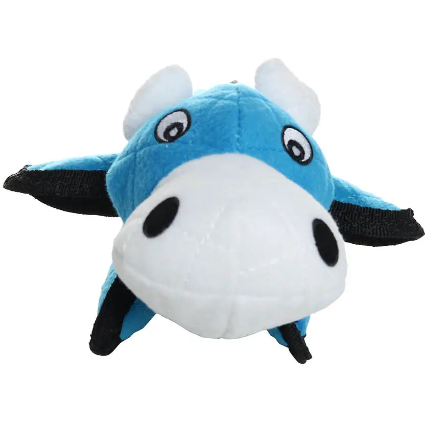 Tuffy Dog Toys Kelvin the cow - Kelvin is playtime ready, He's triple-stitched, featuring a built-in squeaker to entice fido to get to mooo'ving. Your Pooch will be pleased with this all-new, fun, and adventurous toy! For interactive play with one or multiple dogs. Easy to toss and Great For Indoors! Washable! And Floats!! - soft edges won't hurt gums. Kelvin comes in a smaller size! Click Here