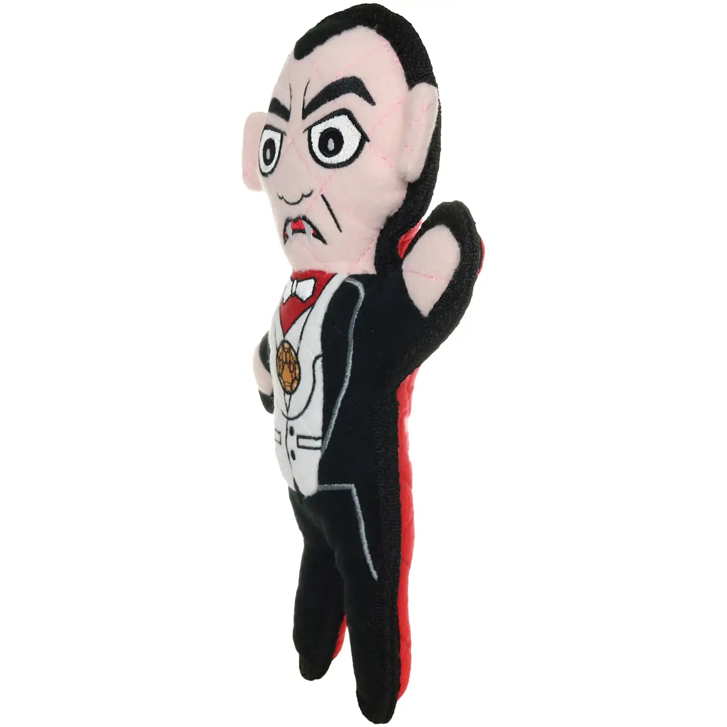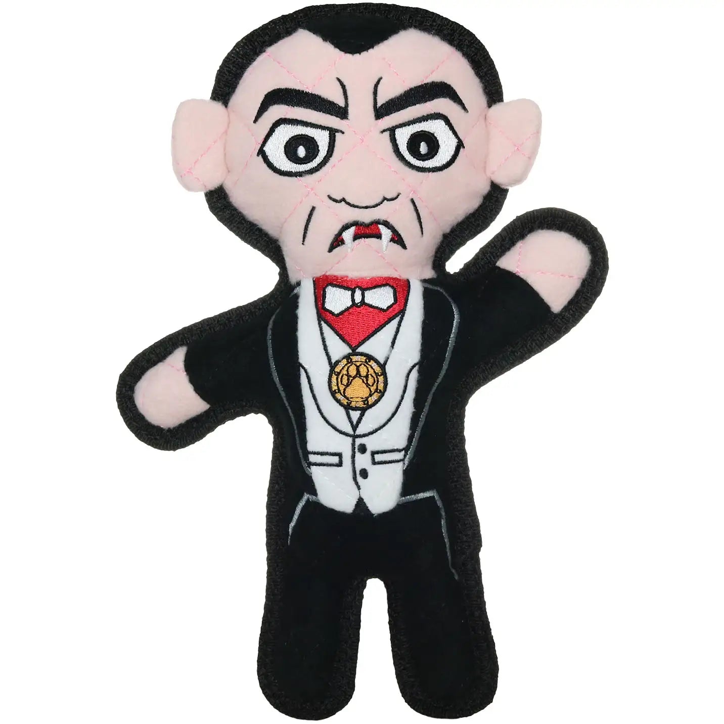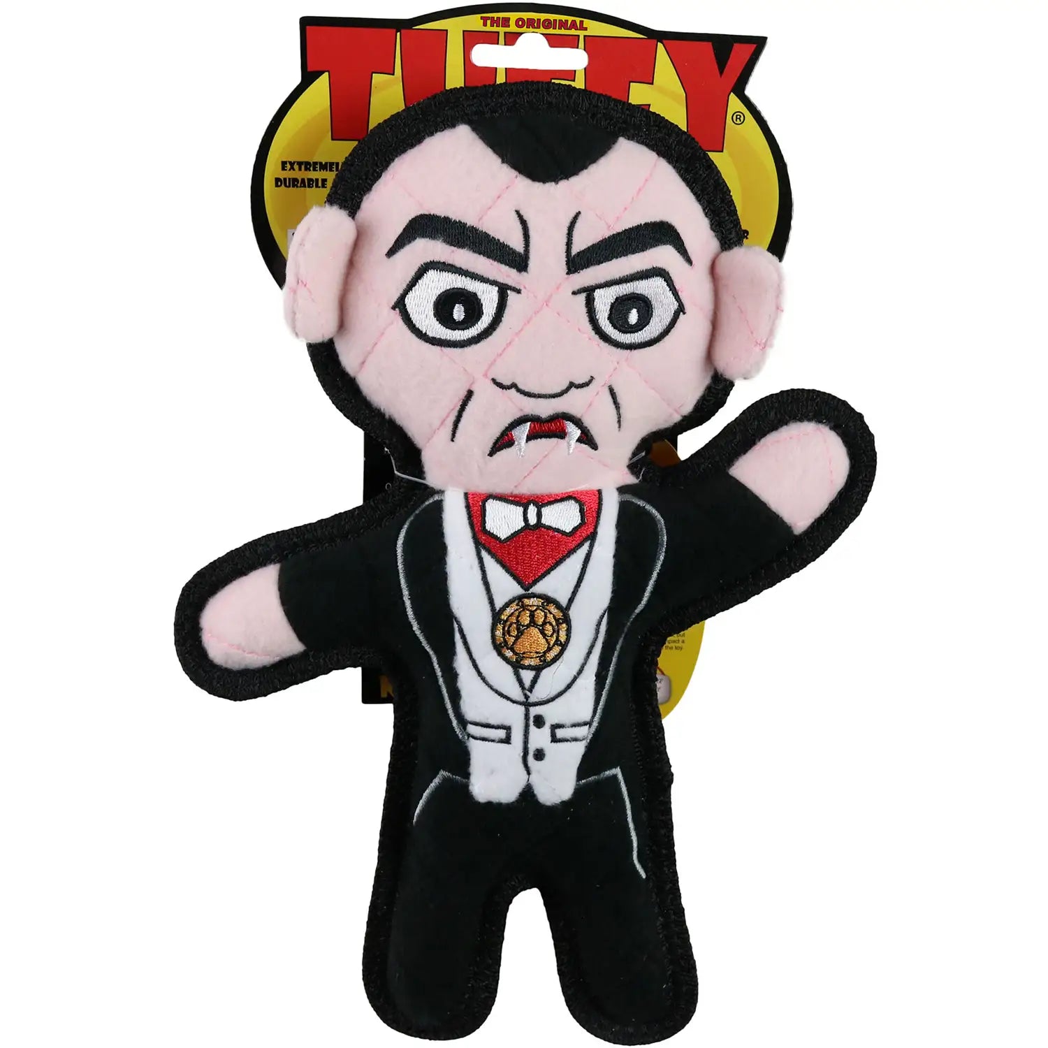 Tuffy Dog Toys Count Dracula - Sink your teeth into playtime with the Toughest Count around! This fang-tastic plush is built Tuffy-tough with multiple layers of durable materials and double-stitched seams to withstand hours of spooky fun. Count Dracula is ready to run amuck with your pup, featuring a built-in squeaker that’s safely secured inside a protective pouch for added durability and safety.