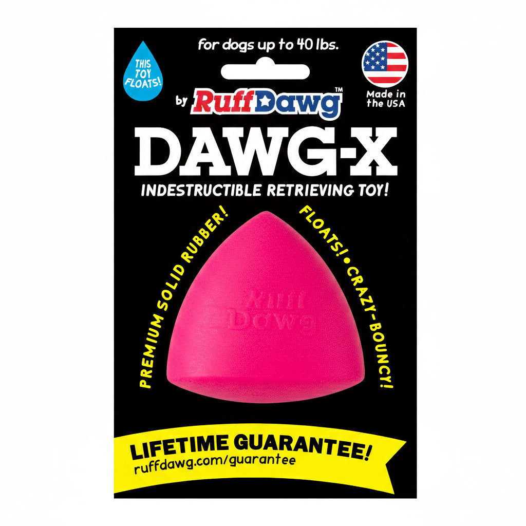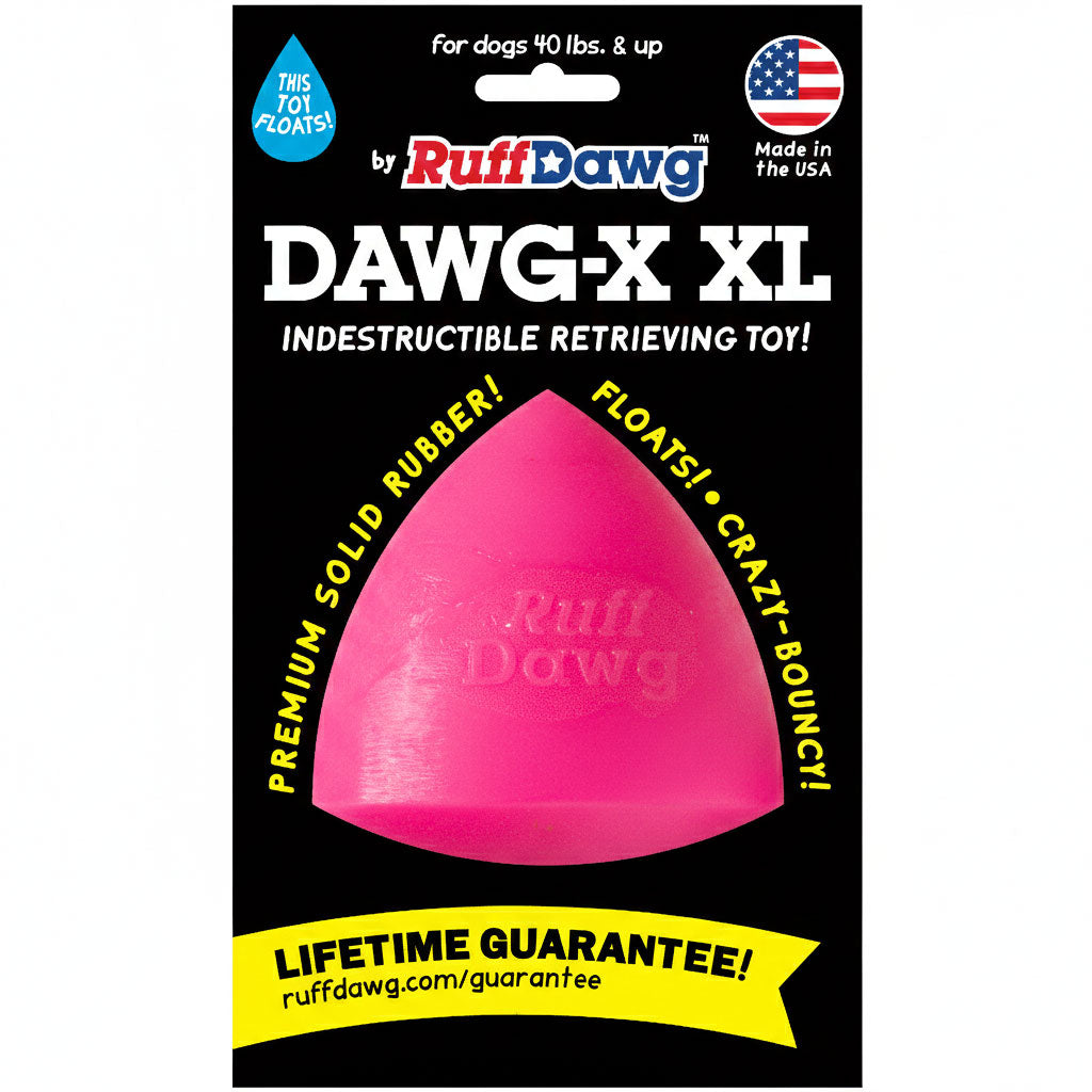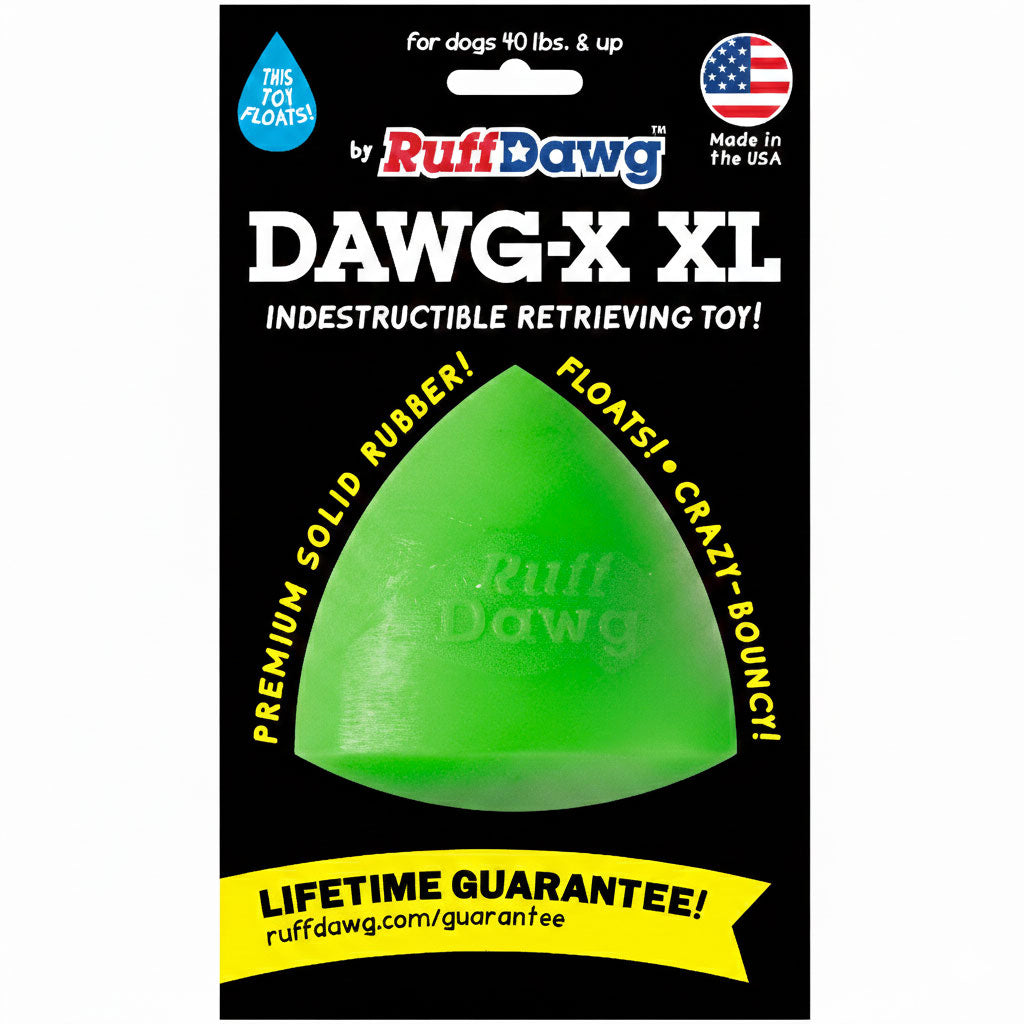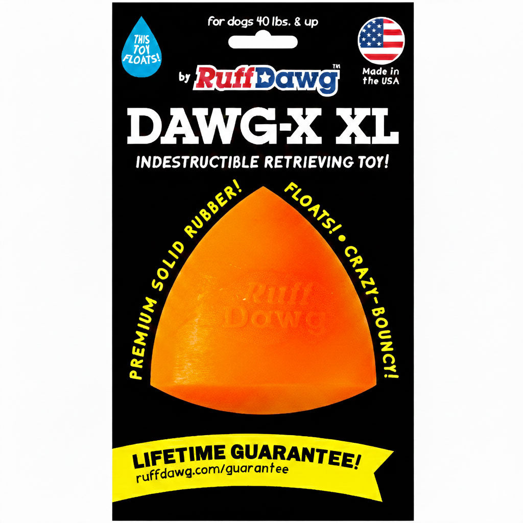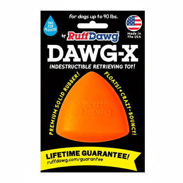 Ruff Dawg Dawg-X – Indestructible Dog Fetch Toy. Built for endless games of fetch, chase, and tug. Made in the USA from ultra-durable, non-toxic rubber, this indestructible dog toy is designed to stand up to the toughest chewers while remaining gentle on teeth and gums.