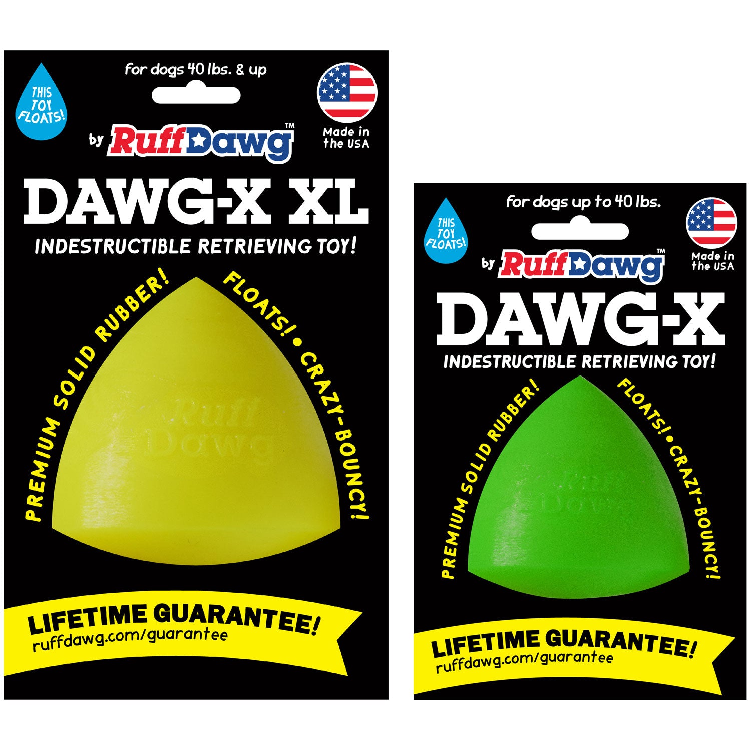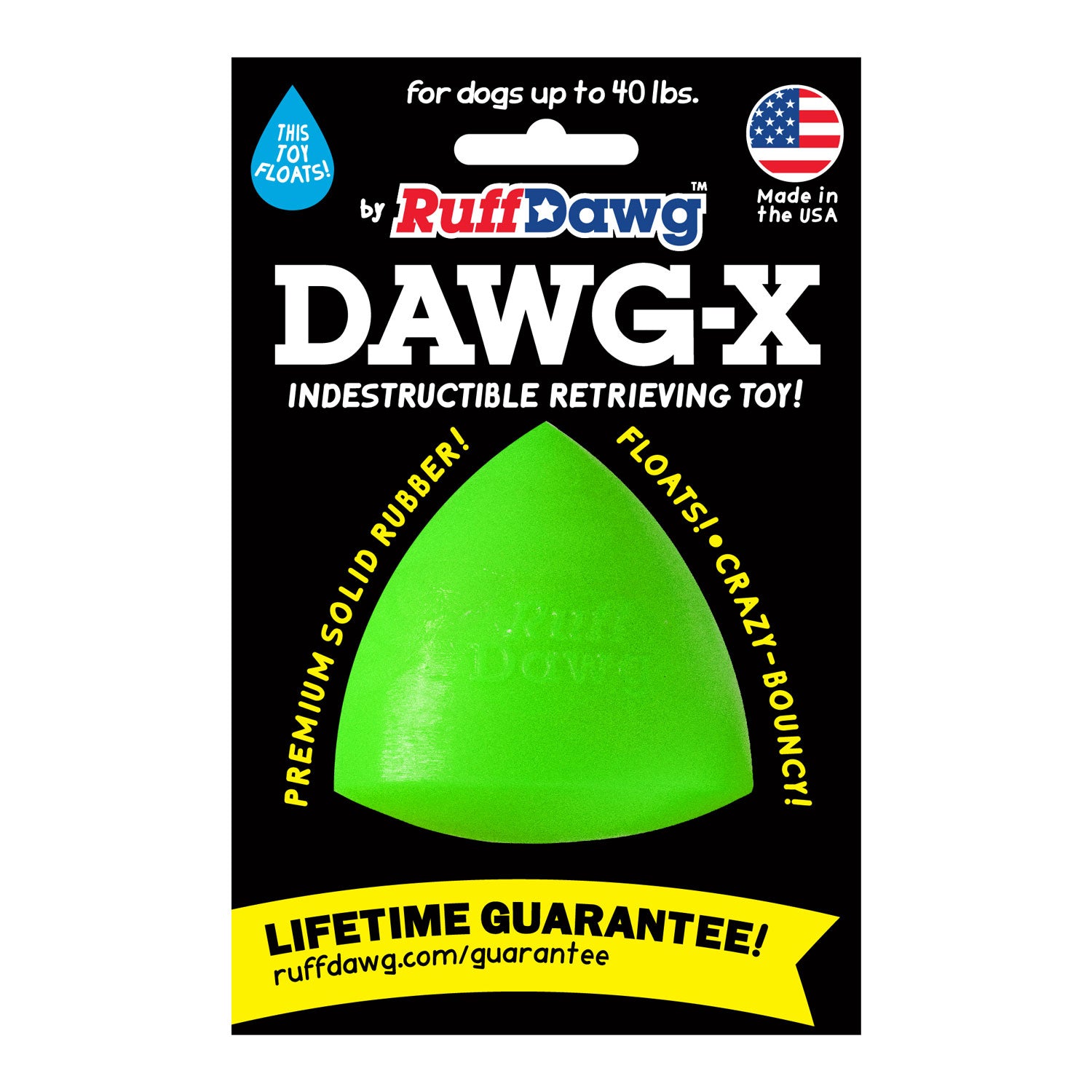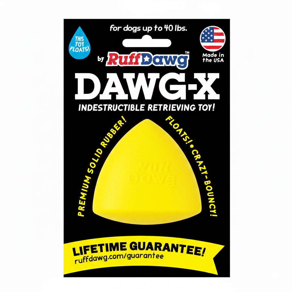 Ruff Dawg Dawg-X – Indestructible Dog Fetch Toy. Built for endless games of fetch, chase, and tug. Made in the USA from ultra-durable, non-toxic rubber, this indestructible dog toy is designed to stand up to the toughest chewers while remaining gentle on teeth and gums.