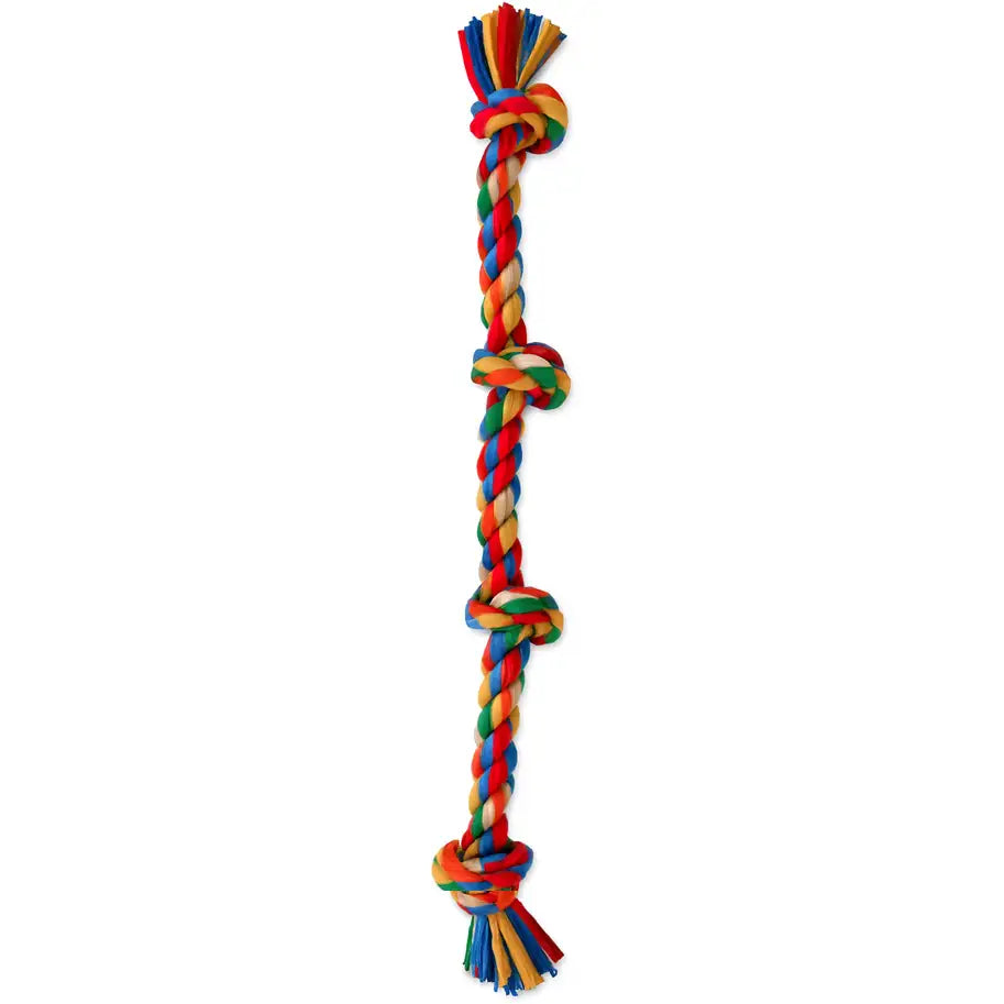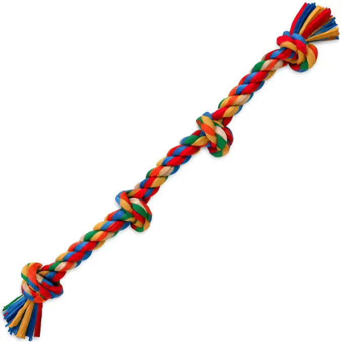 Tough, colorful, and made for serious tuggers! The Mammoth Flossy Chews Cloth Rope Tug is crafted from premium woven cloth materials that stand up to rough play while helping to clean your dog’s teeth. Designed for interactive games of tug-of-war, this 27-inch 4-knot rope is the ultimate choice for large breeds and strong chewers.