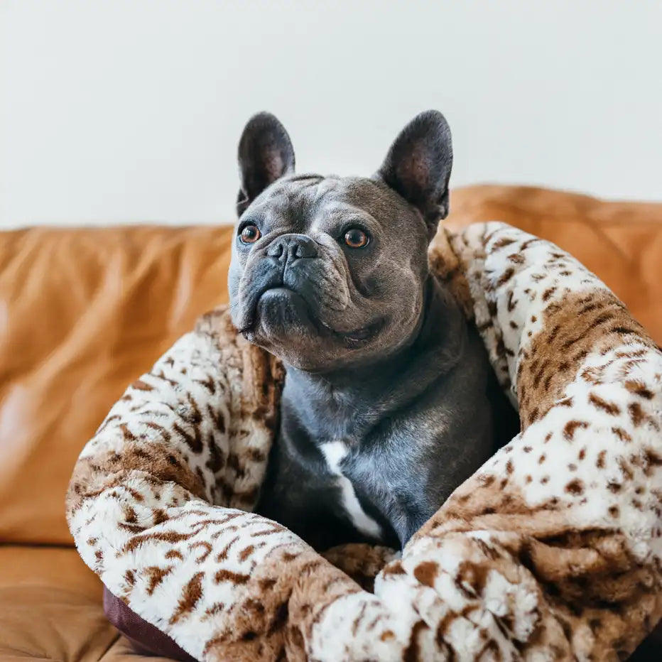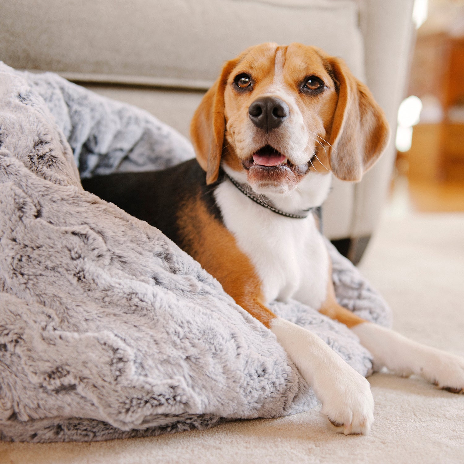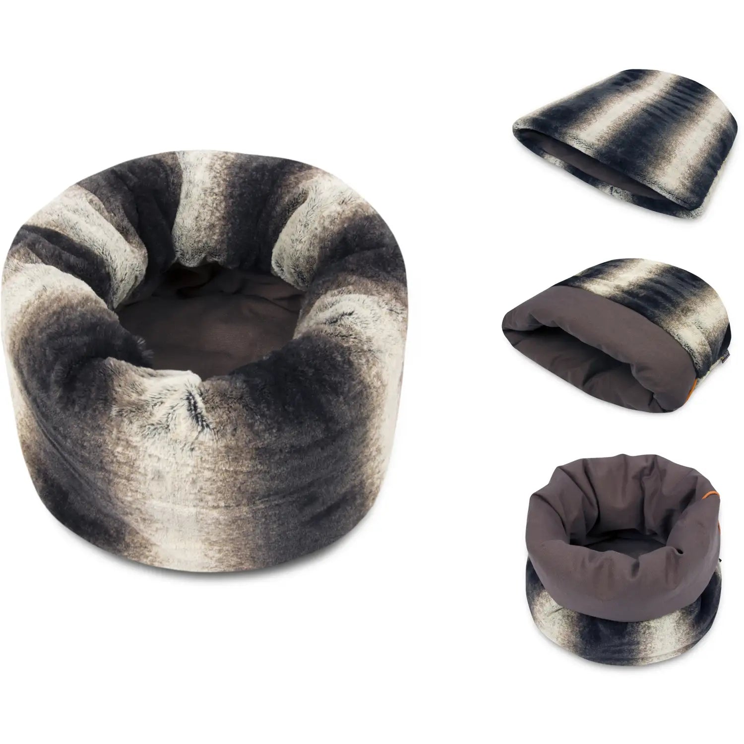 Is it a sleeping bag? A mat? A bolster bed? With the Faux Fur & Cotton Canvas Snuggle Dog Bed by P.L.A.Y. (Pet Lifestyle and You), it’s all three! Designed for dogs and cats who crave cozy comfort, this convertible bed can be shaped to fit your pet’s favorite sleeping style. Whether they love to burrow, curl, or stretch out, the Snuggle Bed adapts to their needs—creating a heavenly retreat they’ll adore.
