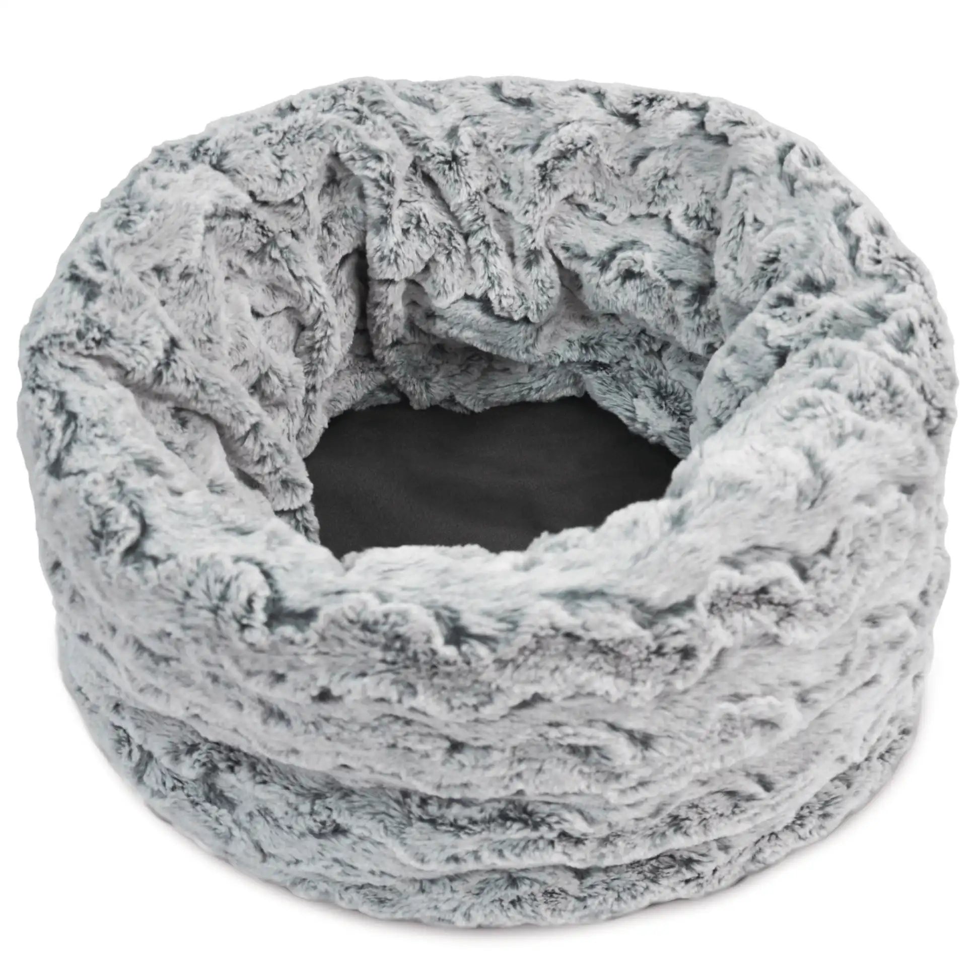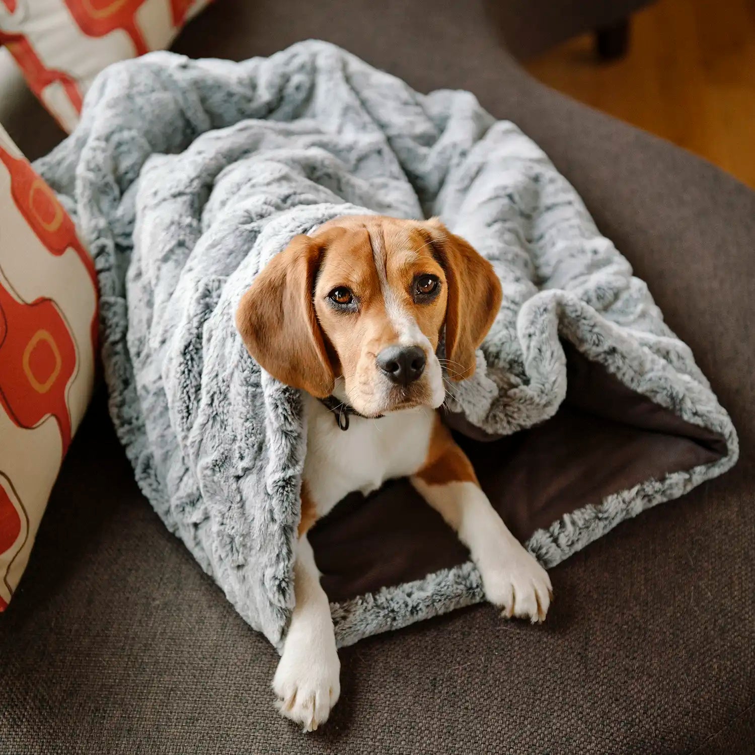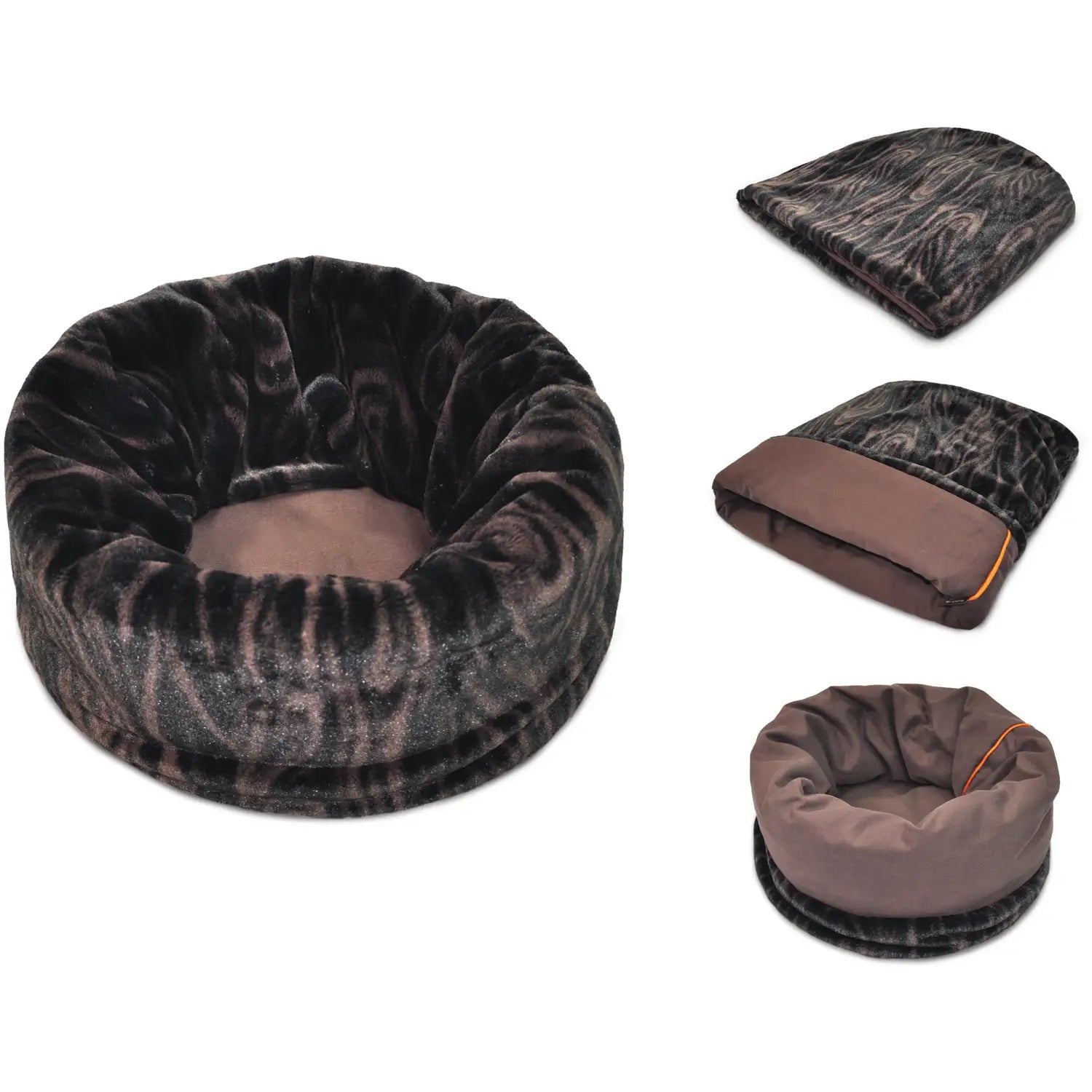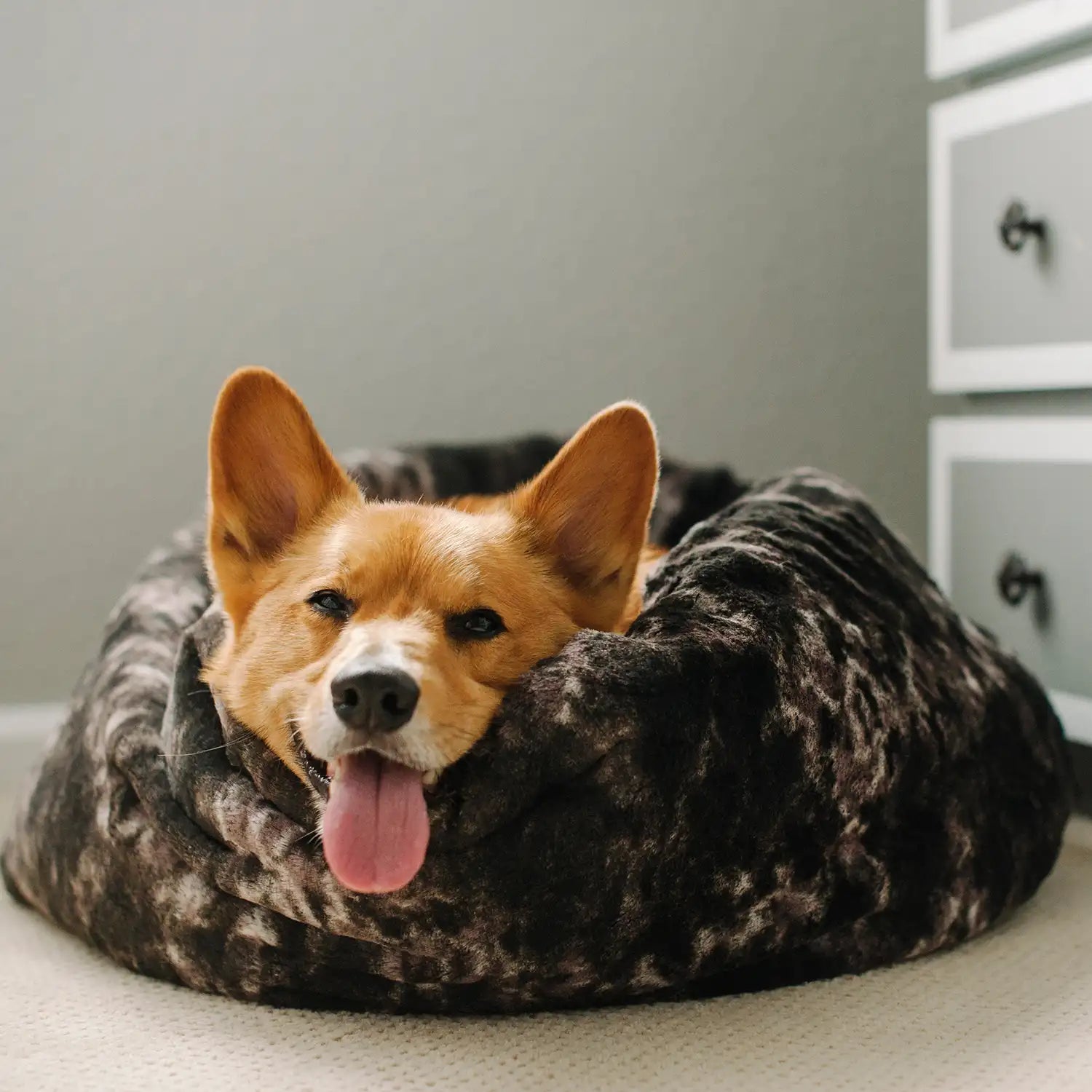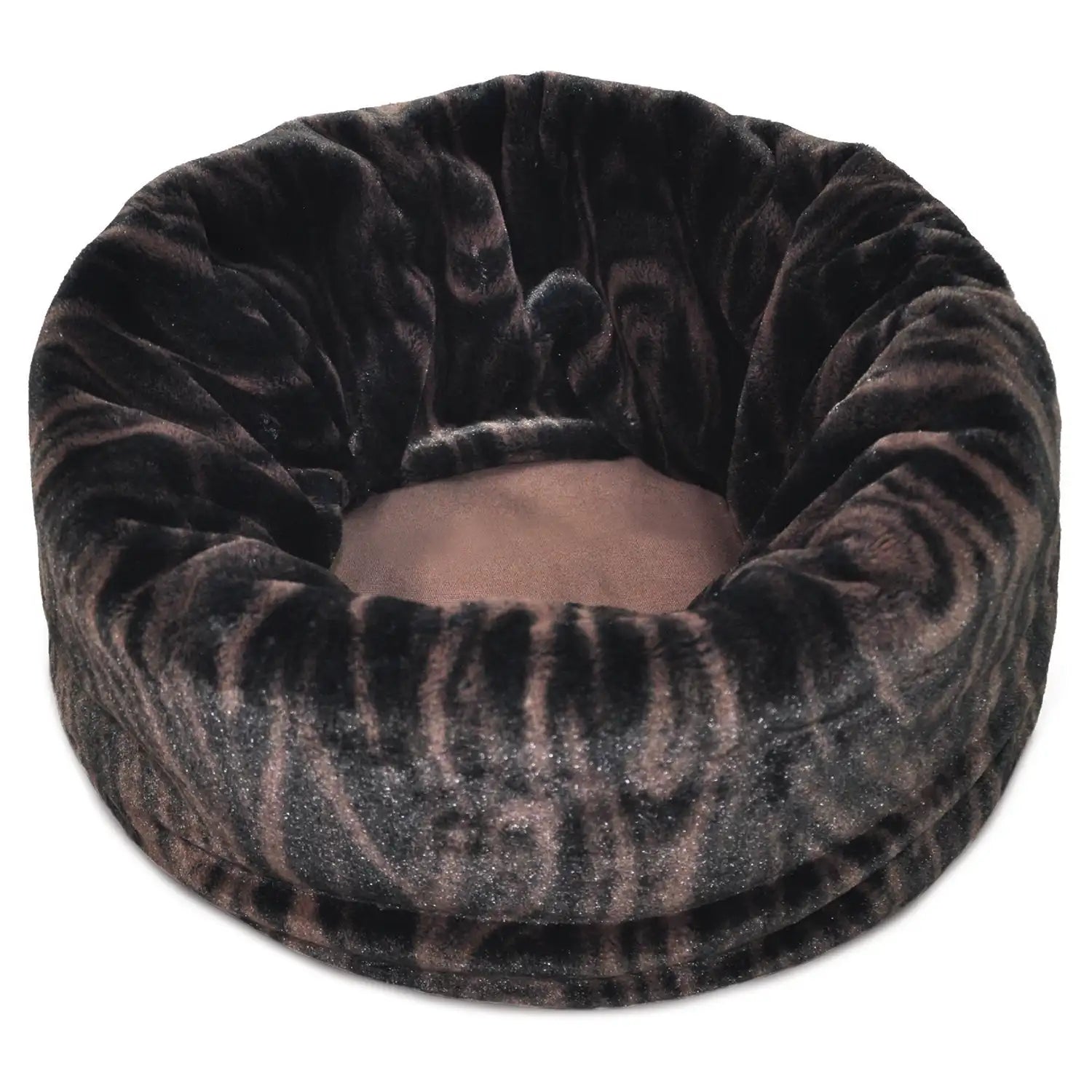 Pet Play Faux Fur/Cotton Canvas Snuggle Dog Bed