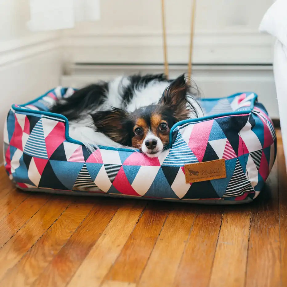 Looking to liven up your dog’s bed collection—and your home décor? The Mosaic Lounge Dog Bed by P.L.A.Y. (Pet Lifestyle and You) is made from 100% natural cotton fabric and features a modern, eye-catching pattern that complements any space. Designed for lasting comfort, this bed combines soft, supportive cushioning with durable craftsmanship for the ultimate lounging experience.