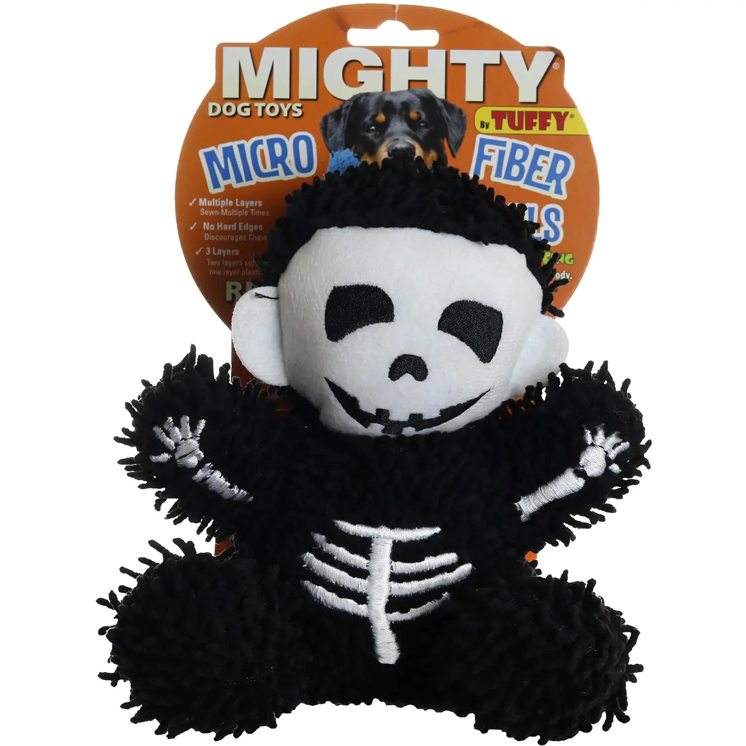 Mighty Dog Toys Skeleton Man. This Skeleton is out to pick a bone with Fido. This bony guy is filled with squeakers and contains minimal stuffing to make room for 6 squeakers located in the head, body, arms, and legs!