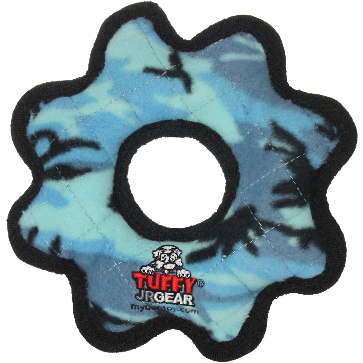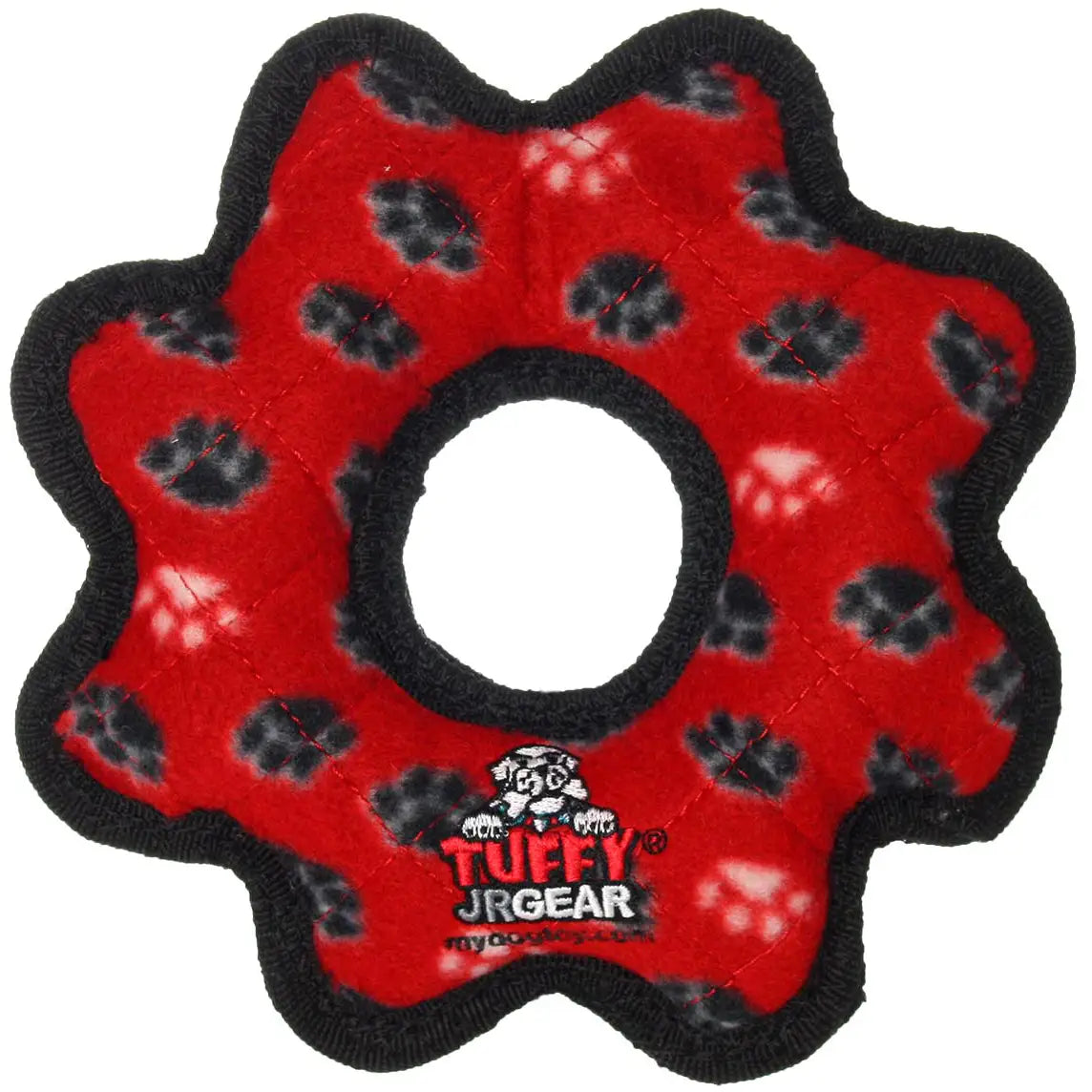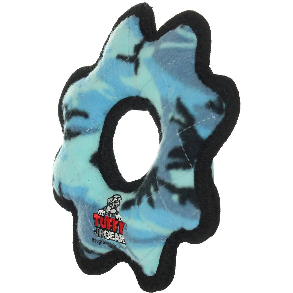 The Tuffy Dog Toy -  Jr. Ultimate Gear Ring is tough and long-lasting. It's great as a Frisbee, a tug toy, or for flyball training. The soft edges won't hurt gums. It has three built-in squeakers.