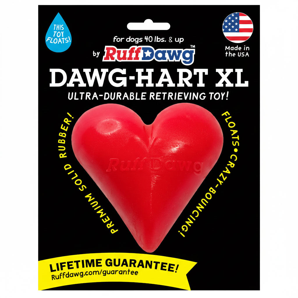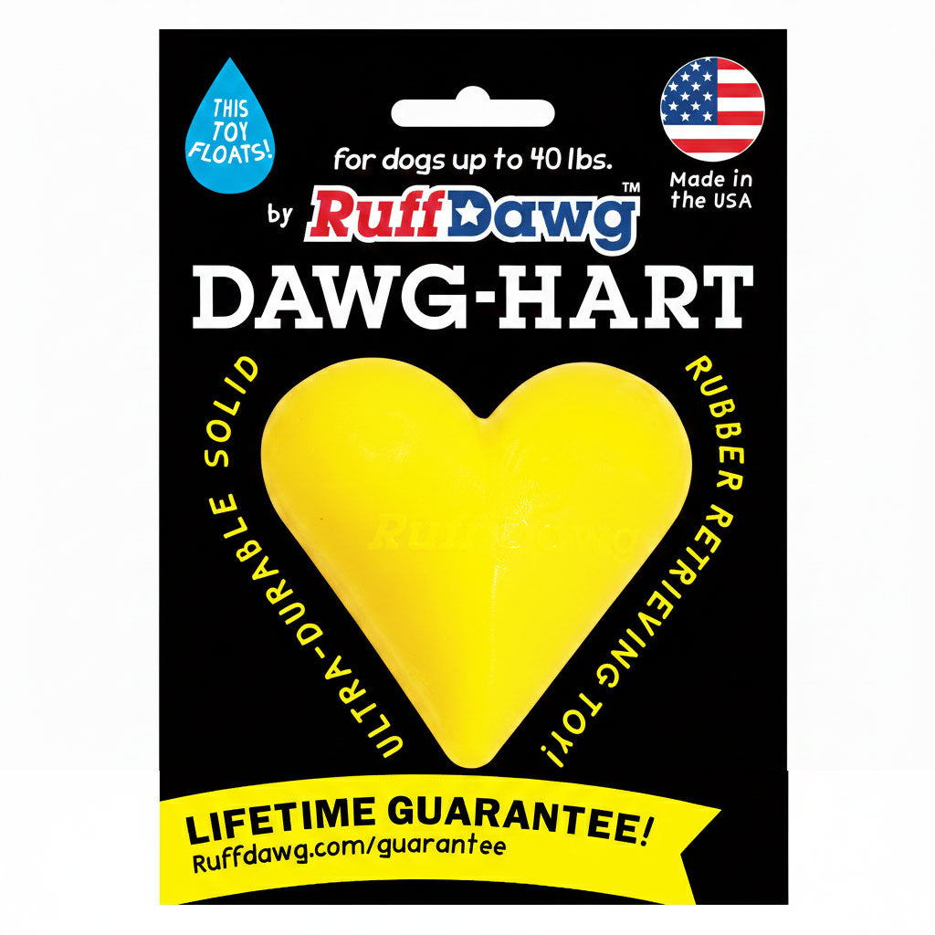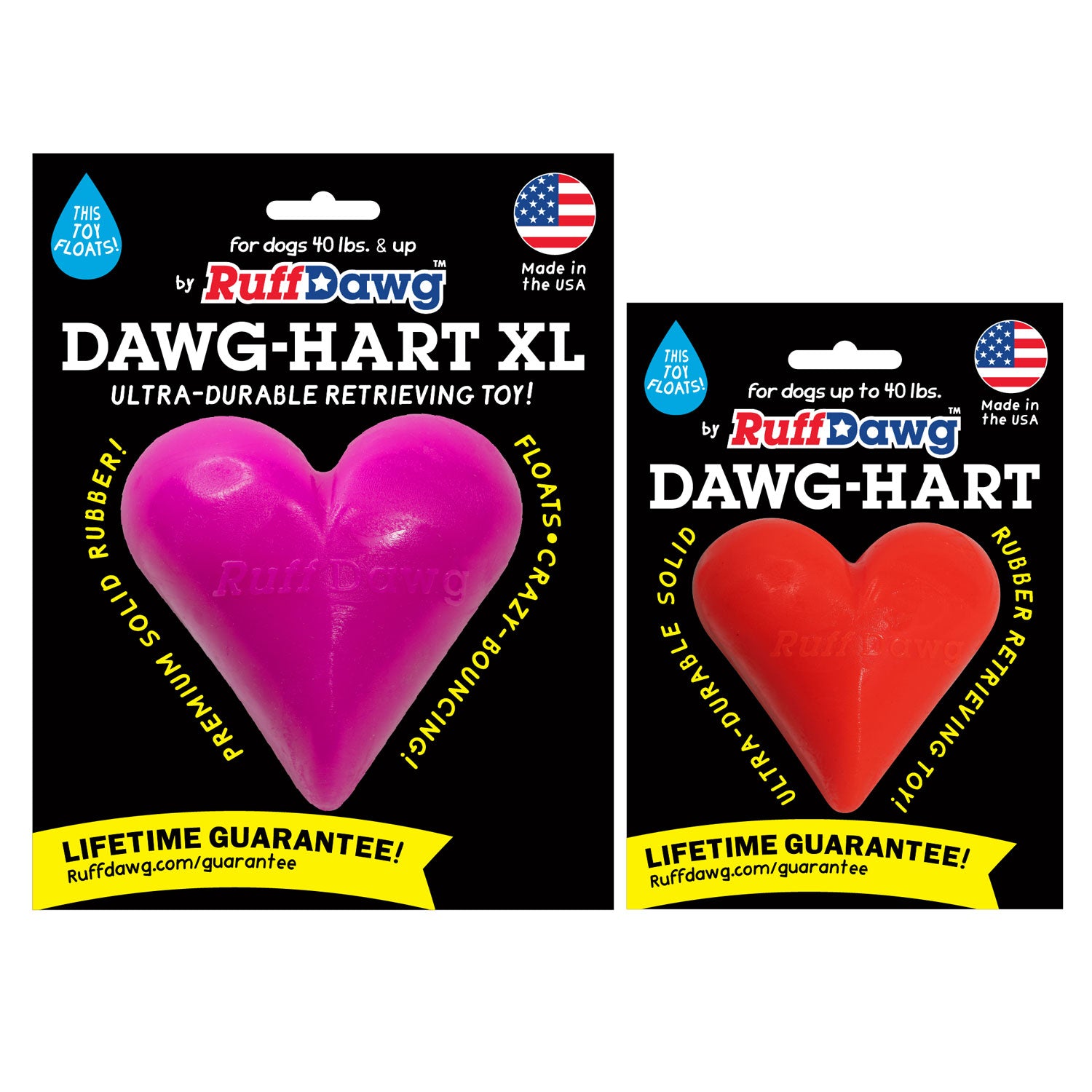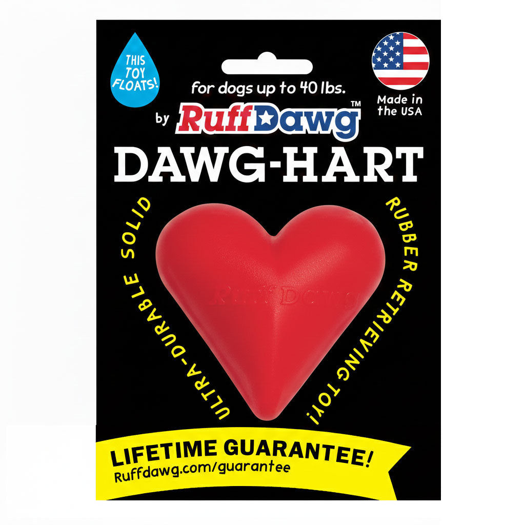 Ruff Dawg Hart - Show your pups some love with the Dawg-Hart from Ruff Dawg! These solid rubber toys float for water retrieving, and have a crazy-bounce, making fetch time extra-exciting. They take serious abuse during heavy play – all while being gentle on a dog's gums and teeth. High-visibility colors mean no lost toys in the grass or water. Proudly made in the U.S.A.