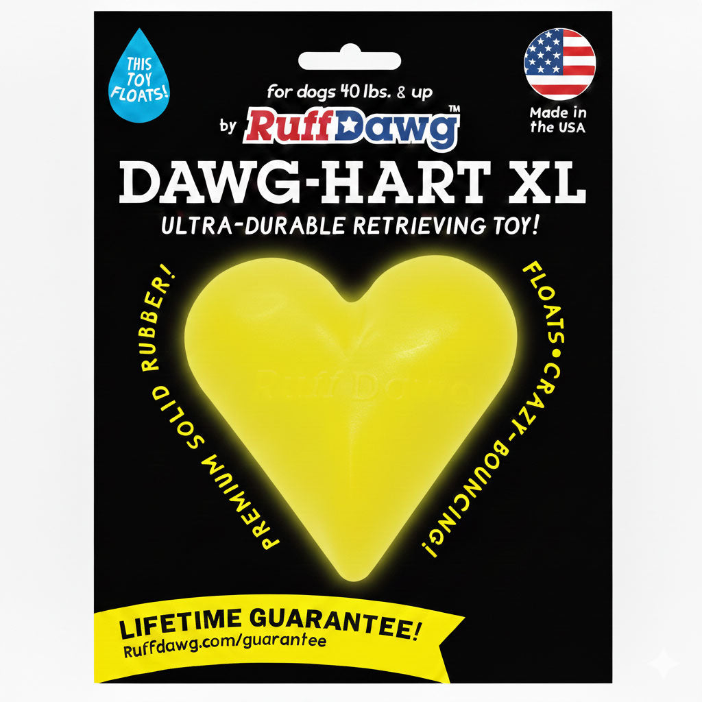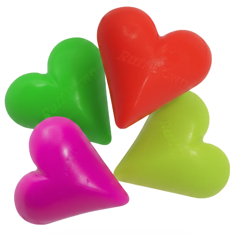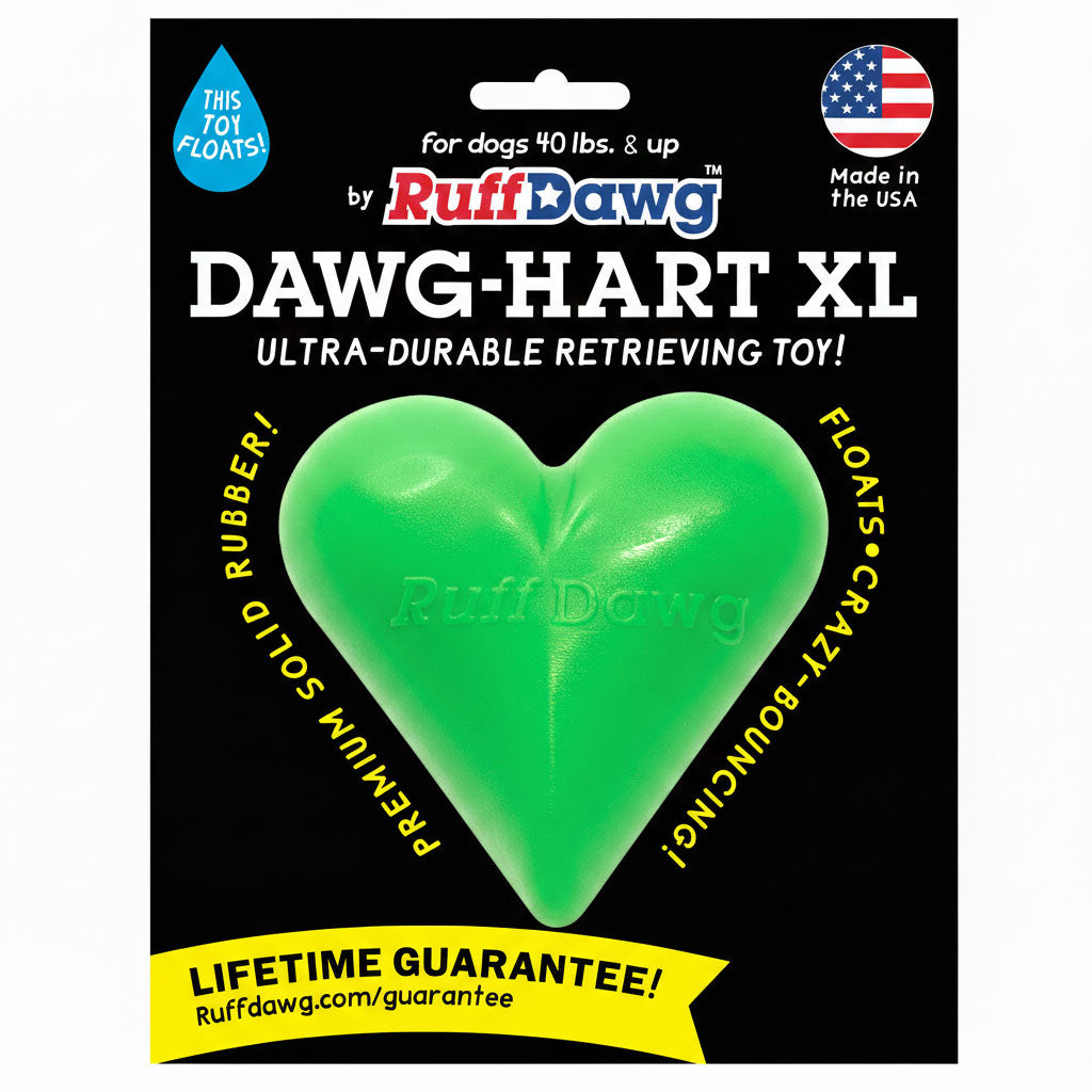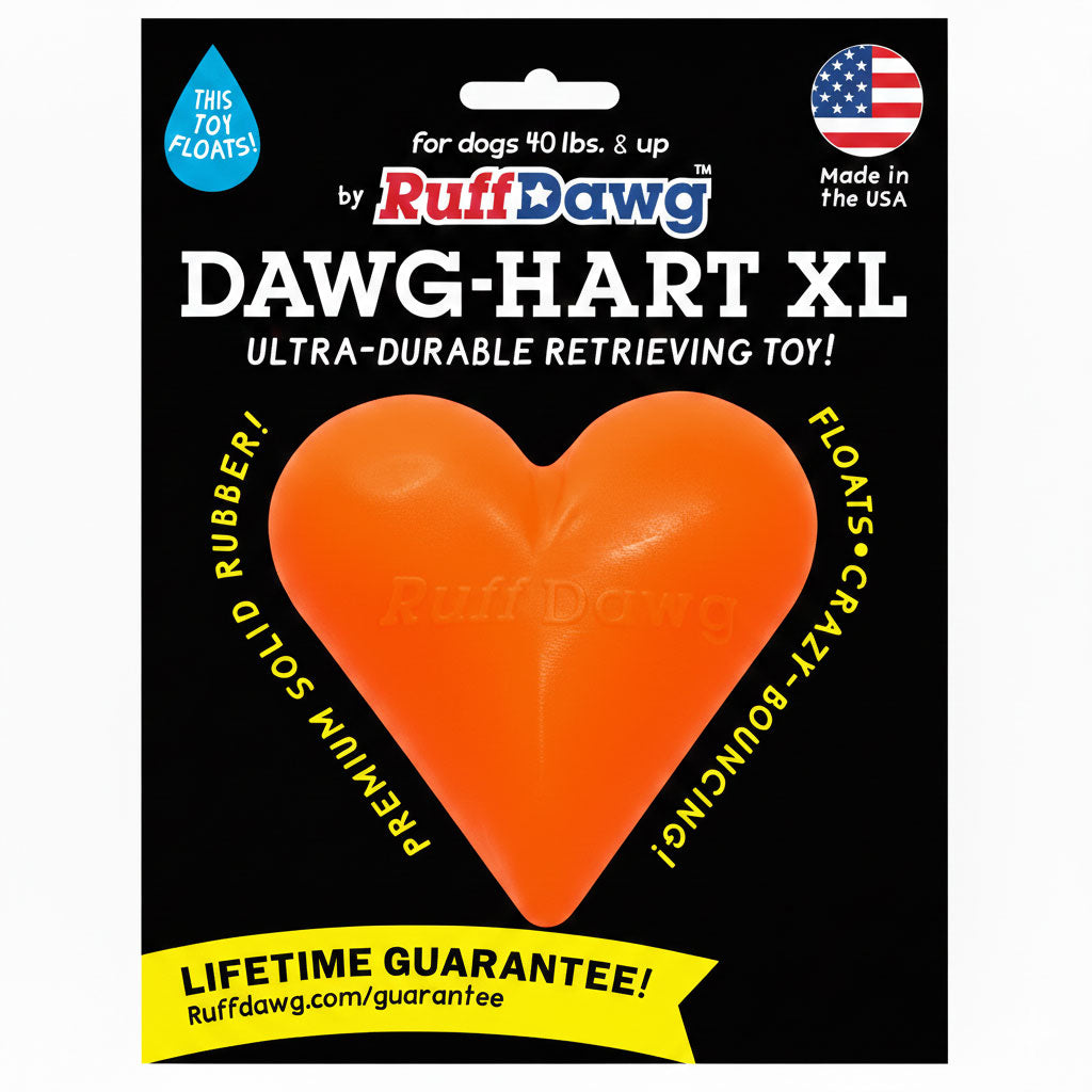 Ruff Dawg Hart - Show your pups some love with the Dawg-Hart from Ruff Dawg! These solid rubber toys float for water retrieving, and have a crazy-bounce, making fetch time extra-exciting. They take serious abuse during heavy play – all while being gentle on a dog's gums and teeth. High-visibility colors mean no lost toys in the grass or water. Proudly made in the U.S.A.