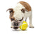 - Combines fetch, squeak, and treat play in one toy