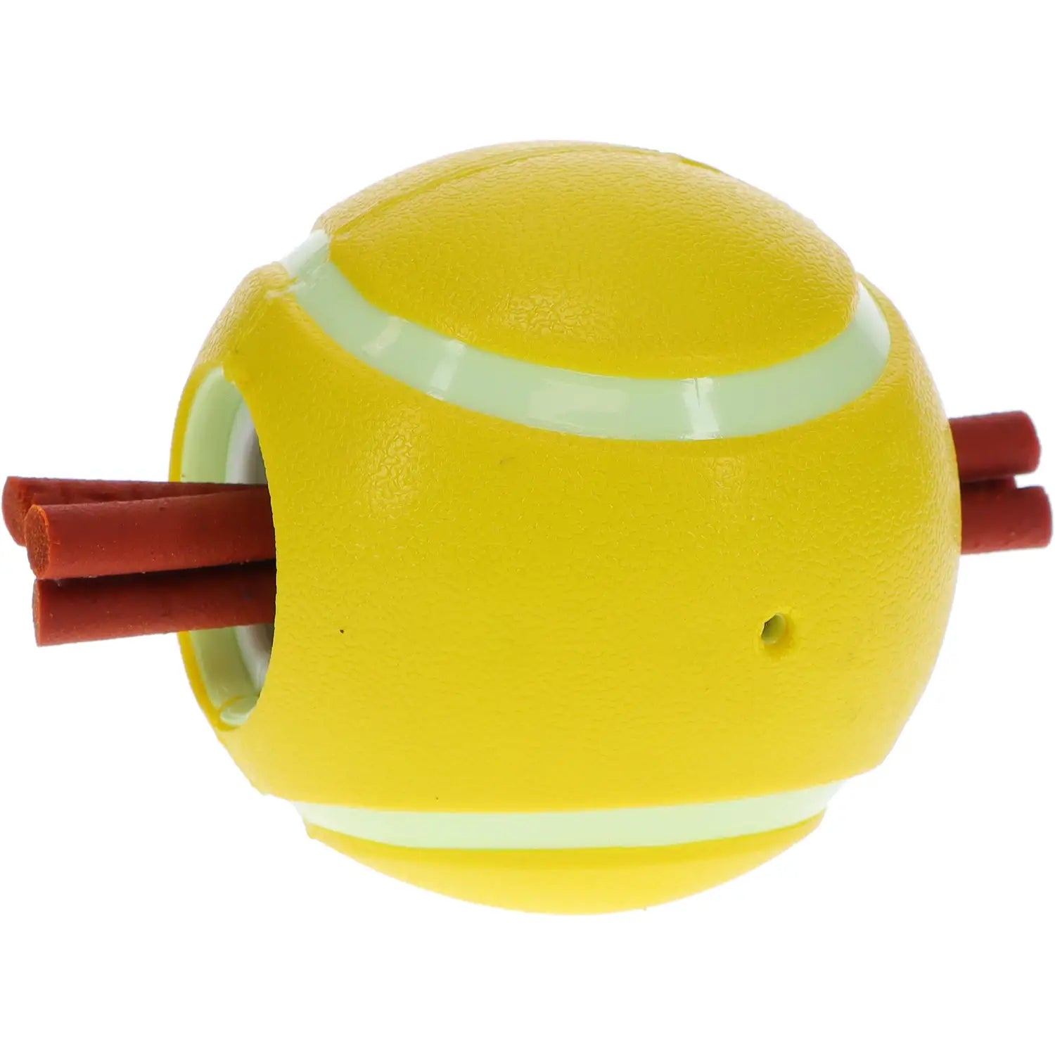 Load it up with biscuits, bully sticks, rawhides, or treat sticks, and watch your dog roll, bounce, and chew to get their reward. The smart design securely holds treats in place, turning every toss or chew session into an exciting puzzle. Whether you’re playing fetch or giving your pup a solo challenge, this toy provides long-lasting fun without losing the treat!
