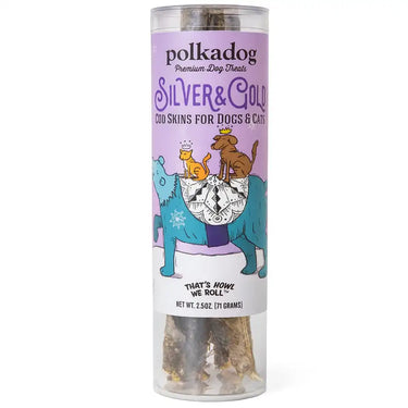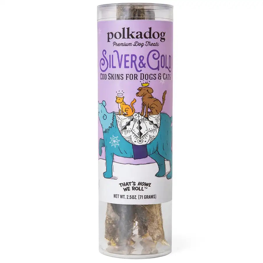 Polkadog Silver & Gold Cod Skins – Holiday Edition! Every dog and cat can strike it rich this season with a shimmering tube of Polkadog’s famous crunchy Cod Skins—now dressed in limited-edition holiday packaging. These out-of-this-world, hand-rolled cold-water delicacies are the ultimate stocking stuffers. Treat your pets to these precious gems of the ocean and watch their eyes sparkle with holiday joy.