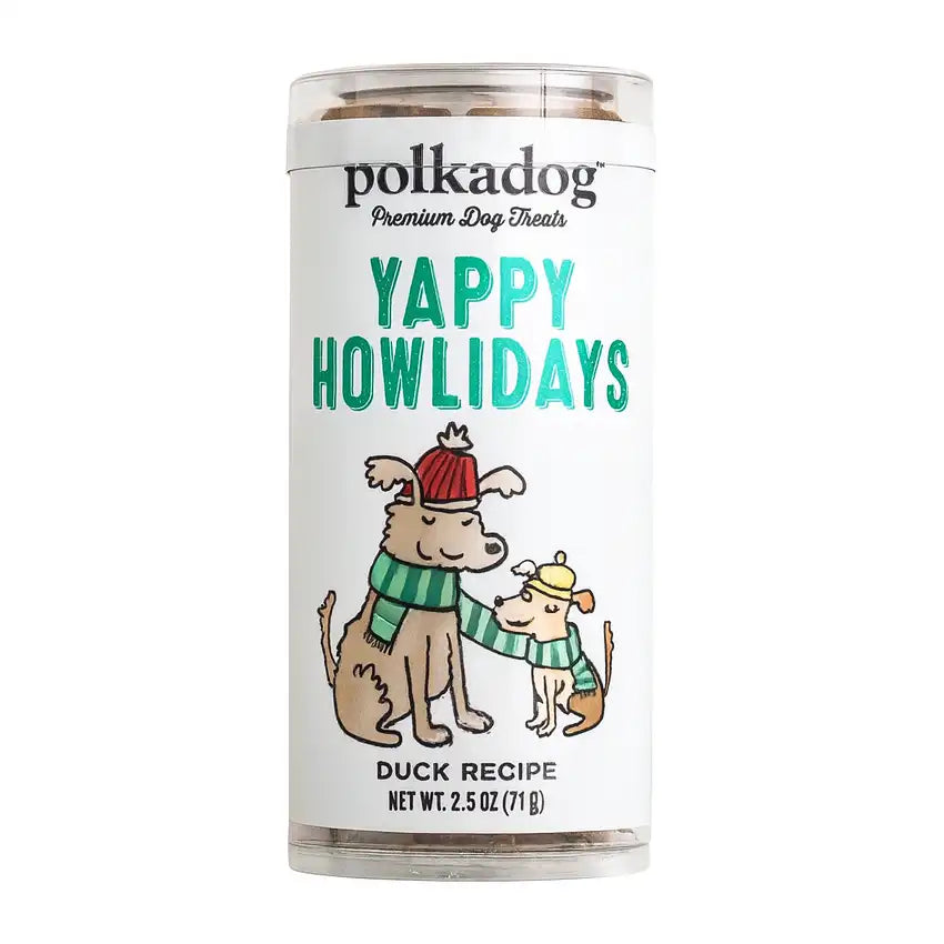 Polkadog Yappy Howlidays Treats - Give your pup a stocking stuffer they won’t forget! These super-duper crunchy holiday treats are handmade in Polkadog’s Fish Pier kitchen using just two simple, wholesome ingredients: locally sourced U.S. duck liver and natural potato flour. Grain-free, guilt-free, and packed with irresistible flavor, they’re perfectly sized for treating, rewarding, and training all season long.