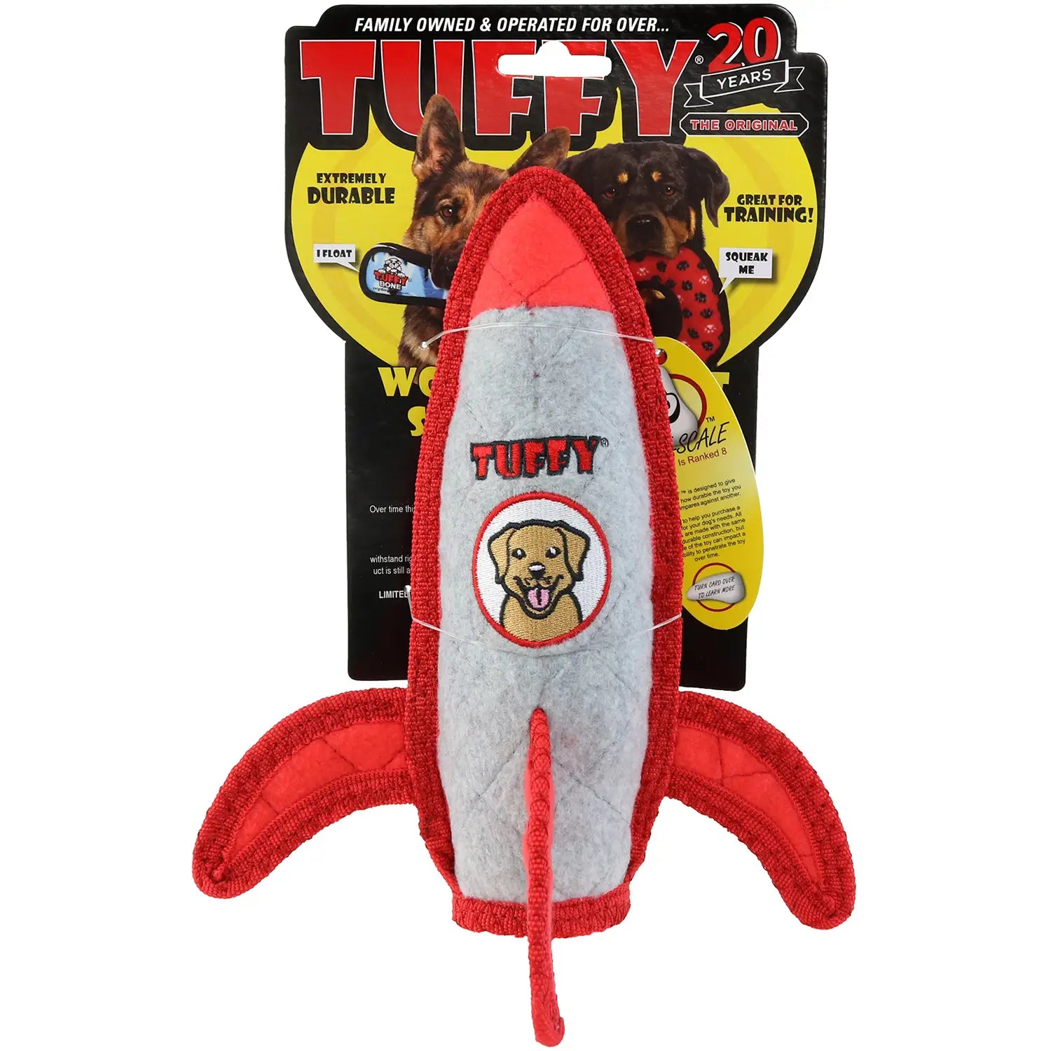 Tuffy Dog Toys Rocket Ship - Ready for playtime to blast off? This Rocket is Tuffy's latest creation, designed not only to survive re-entry but also afternoon tug times with Fido and built with multiple layers for added durability!