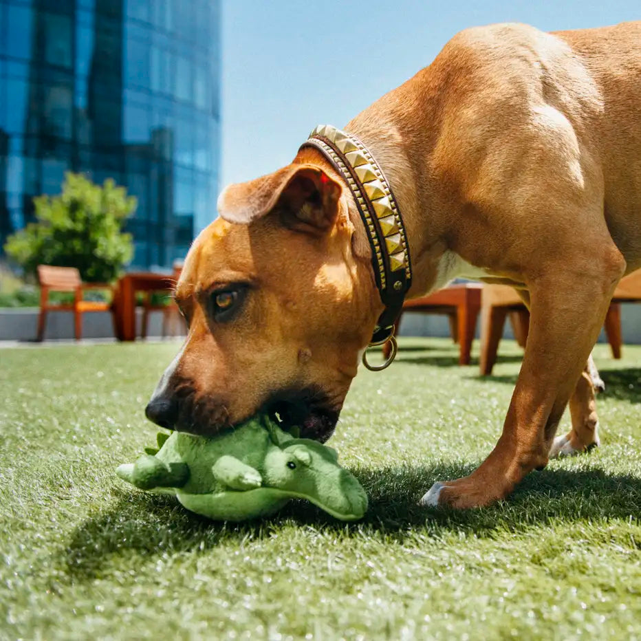Snap into adventure with P.L.A.Y.’s Safari Crocodile! This playful croc brings big personality and even bigger fun to your dog’s toy collection. Designed with sliding front limbs that glide as your pup tugs and shakes, plus an oversized squeaker with a wild, attention-grabbing sound, this toy keeps dogs fully engaged from the first chomp to the last toss. Perfect for interactive play or solo safari exploration, the Safari Crocodile is ready to make a splash in your pup’s daily routine.