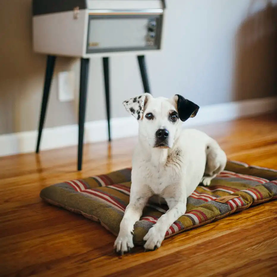 The Horizon Chill Pad by P.L.A.Y. (Pet Lifestyle and You) puts the “chill” in chill time. Lightweight, versatile, and durable, this travel-friendly mat is made from the same soft woven fabric as the Horizon Bedding Collection. Whether you’re heading out on an adventure or settling in at home, your dog will always have a cozy, stylish place to rest. Perfect for use in crates, on the go, or anywhere comfort is needed.