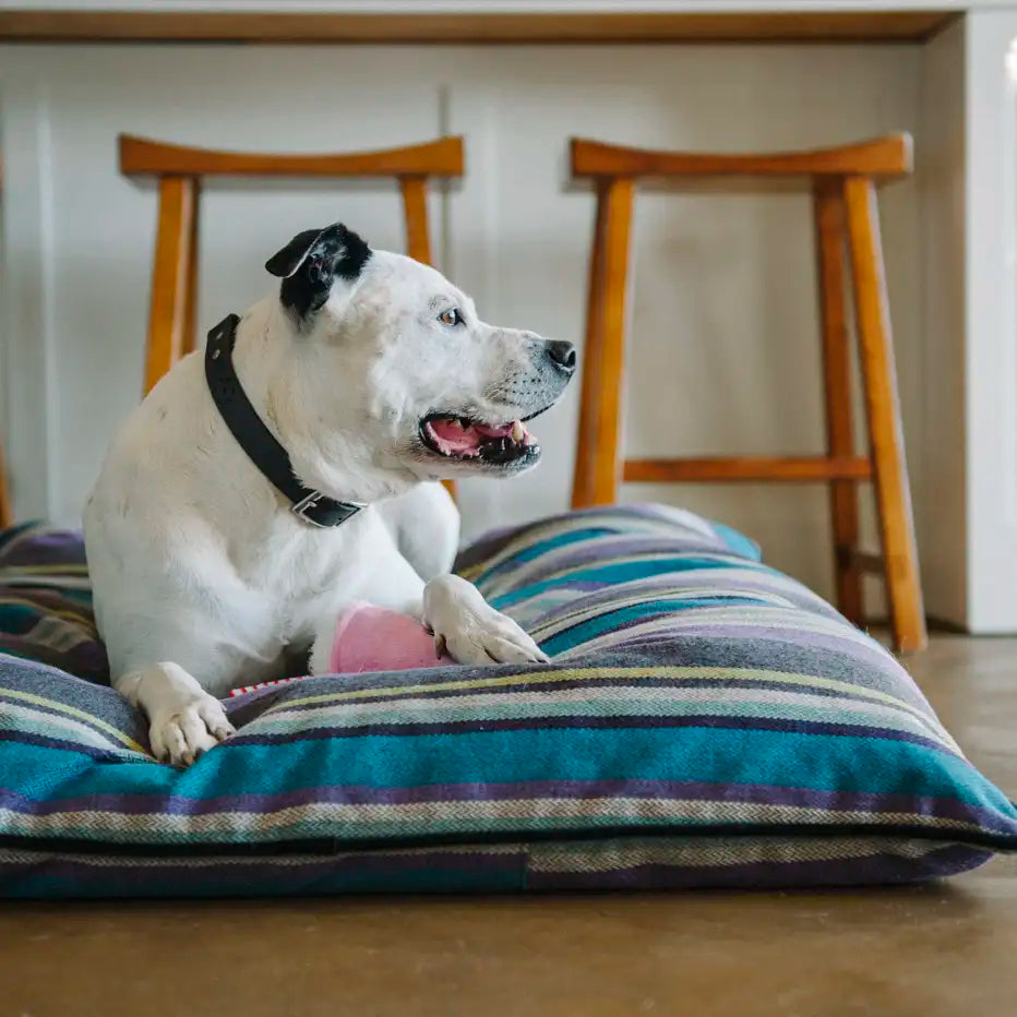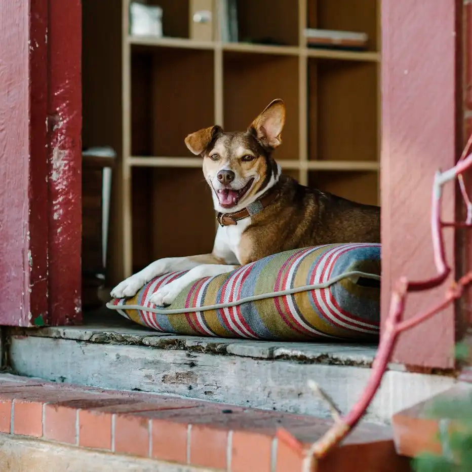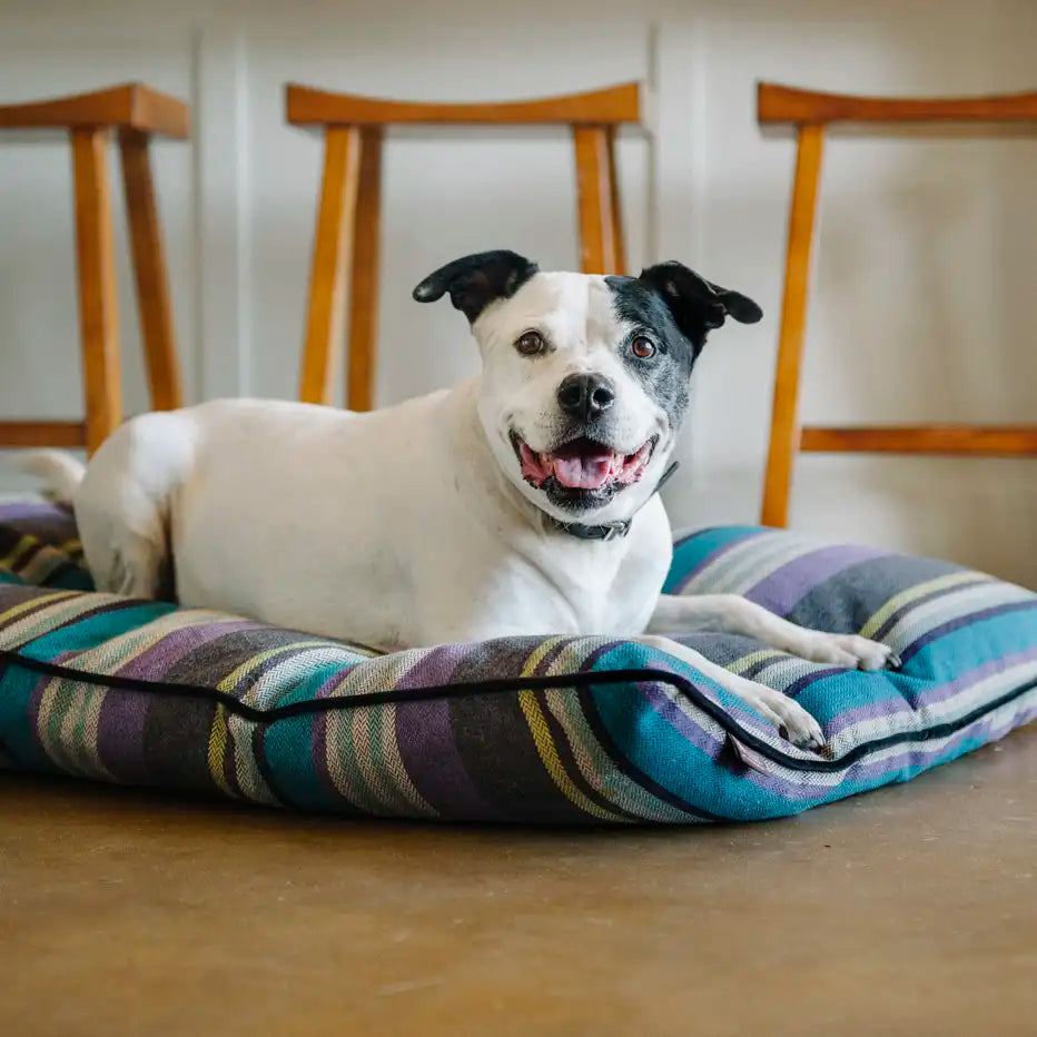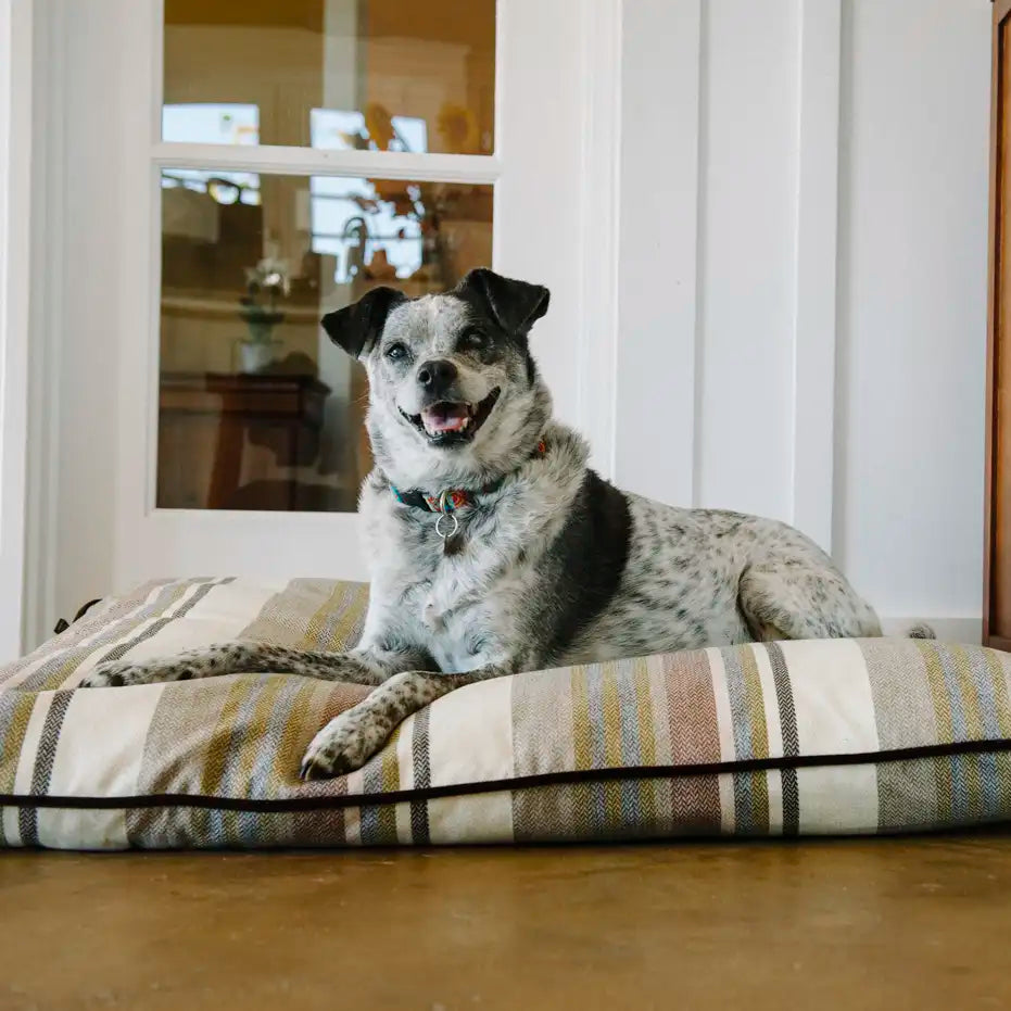 Inspired by the rich colors of Mother Nature, the Horizon Pillow Dog Bed by P.L.A.Y. (Pet Lifestyle and You) blends rugged texture with timeless style. Its woven fabric design brings a touch of the outdoors into any space—perfect for a cozy cabin retreat or a breezy beachside home. Whether your dog likes to stretch out, curl up, or sprawl belly-up, this bed provides a soft, supportive place to rest in any sleeping style.