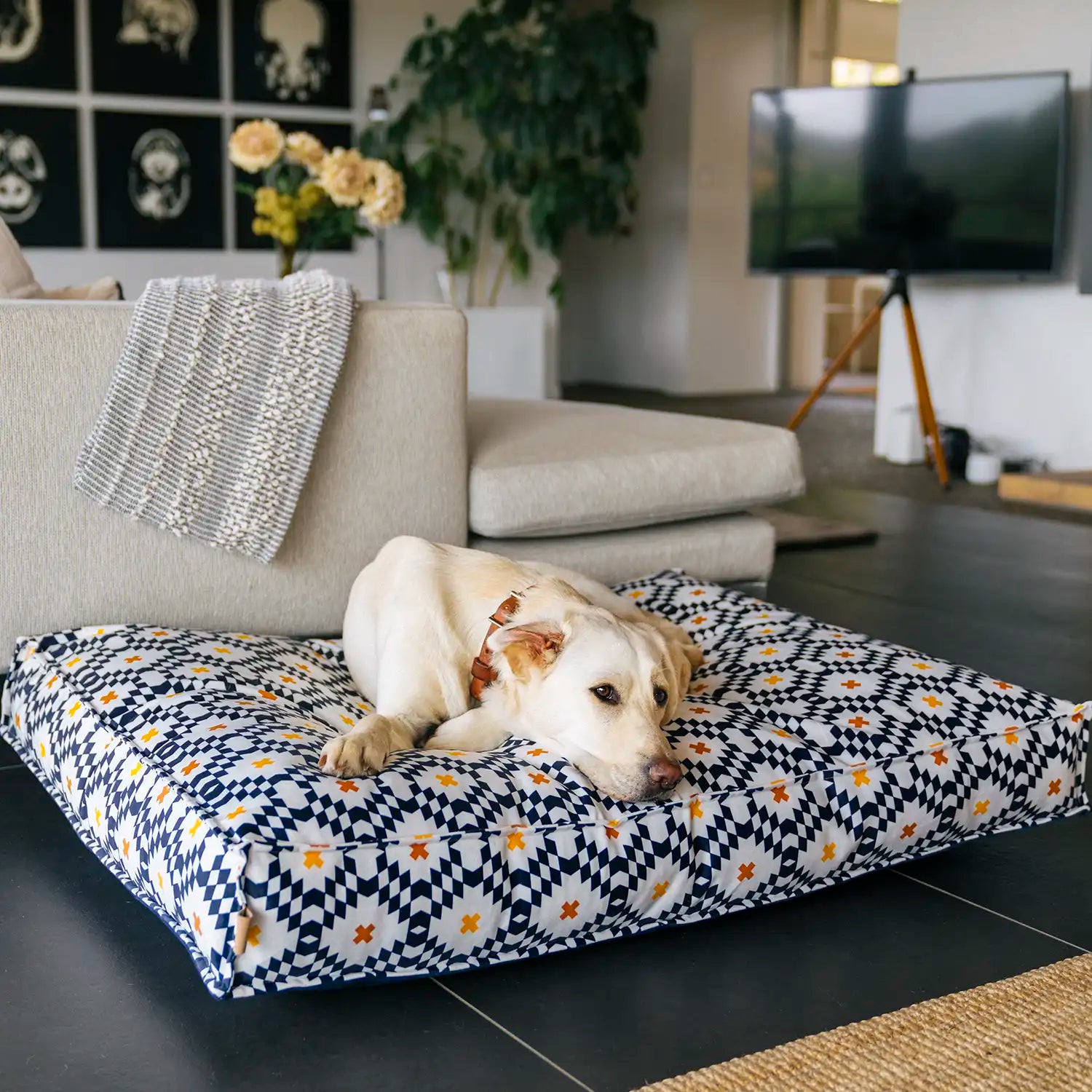 Treat your dog to a bed that never goes out of style. The Pet Play Marina Boxy Dog Bed by P.L.A.Y. (Pet Lifestyle and You) combines a modern coastal design with the exceptional durability and comfort you expect from P.L.A.Y. Featuring a reversible cover and reinforced construction, this bed is built to look great and feel even better—wash after wash, nap after nap.
