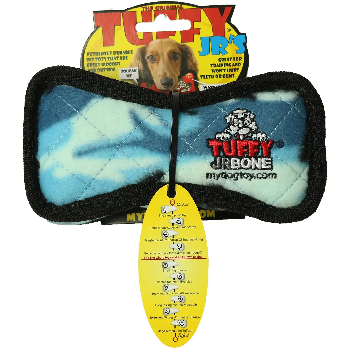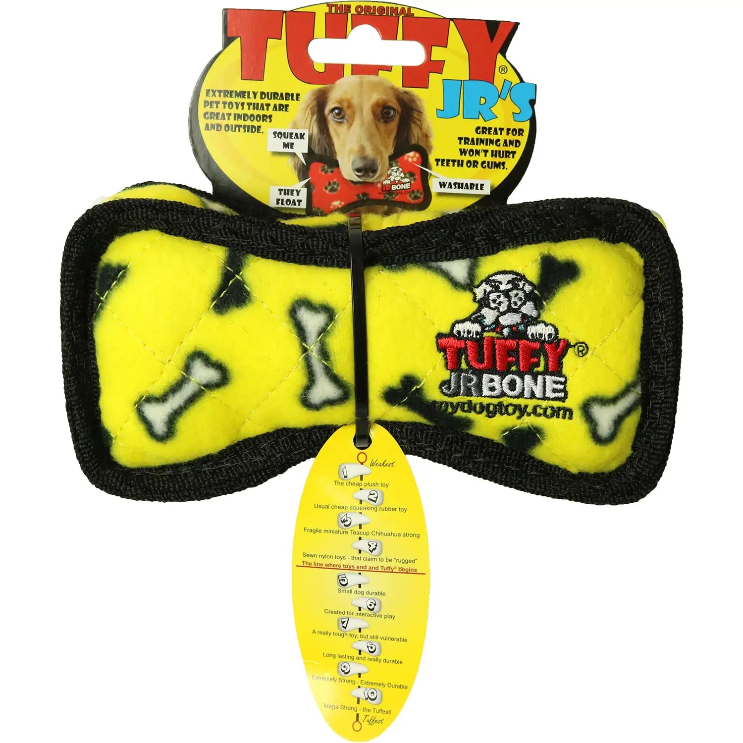 Tuffy Dog Toys Jr Bone – An excellent toy for those dogs that like to tug or whip their toys back and forth. -- soft edges won't hurt gums. Great For Indoors! Washable! And Floats!! Perfect for dogs 20 lbs and under.