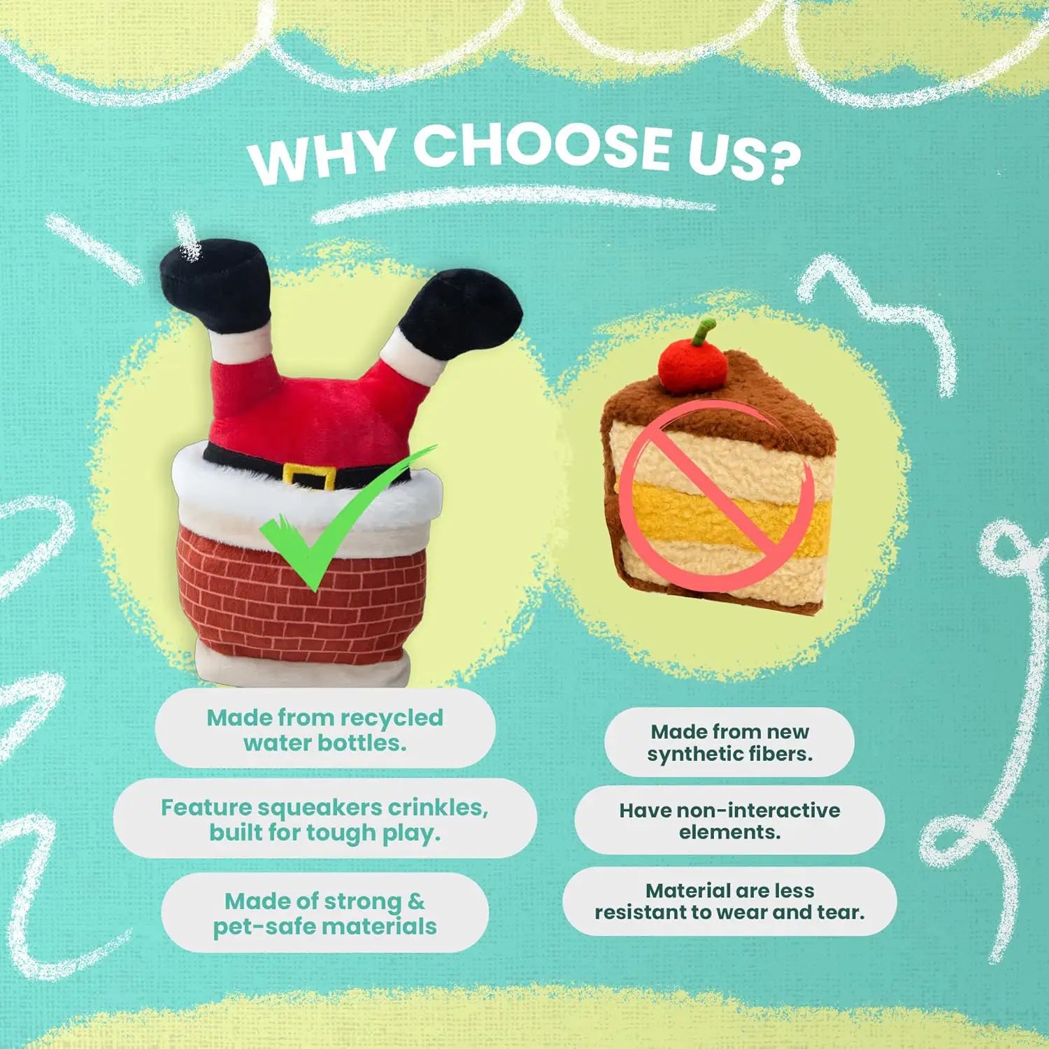 Snugarooz Slippin' Santa — Santa’s taking a tumble! This playful holiday toy brings silly seasonal fun to your dog’s playtime. Slippin' Santa is made with soft plush material and features both crinkle and a built-in squeaker to keep pups engaged. Made from recycled water bottles, he’s festive, funny, and eco-friendly — the perfect addition to your dog’s holiday toy lineup.