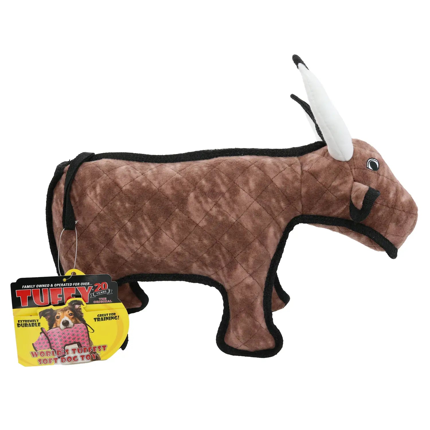 Tuffy Dog Toys Bevo the Bull Medium – No bull for this all-new Bevo! He comes from the best long-horn stock and is ready to take on your canine companion! With super strength and durability, Bevo will become a lifelong friend. For interactive play with one or multiple dogs. Easy to toss and Great For Indoors! Washable! And Floats!! -- soft edges.