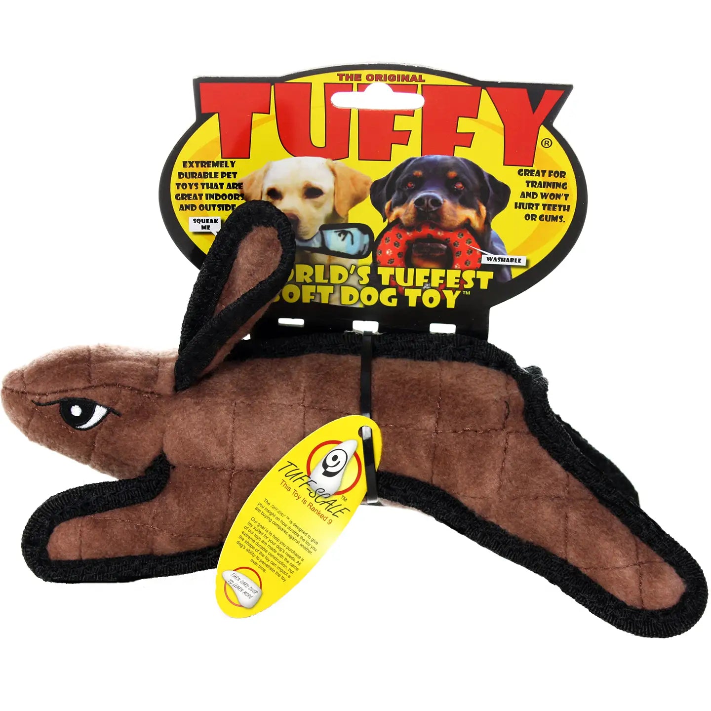The Tuffy Tuff Scale rates toys from 1–10 based on durability. This helps you choose the right toy based on your dog’s play style and strength. The higher the number, the tougher the toy.