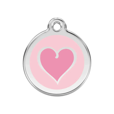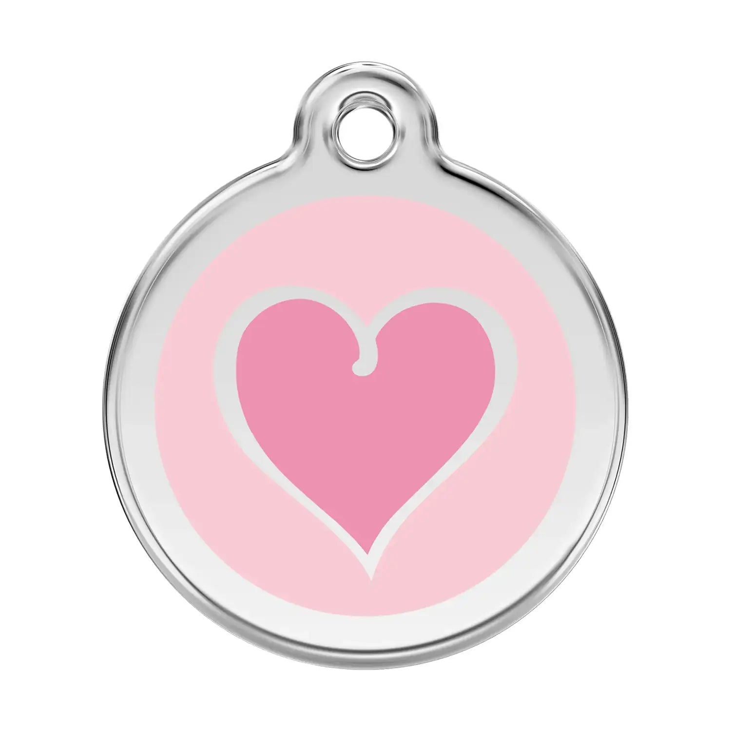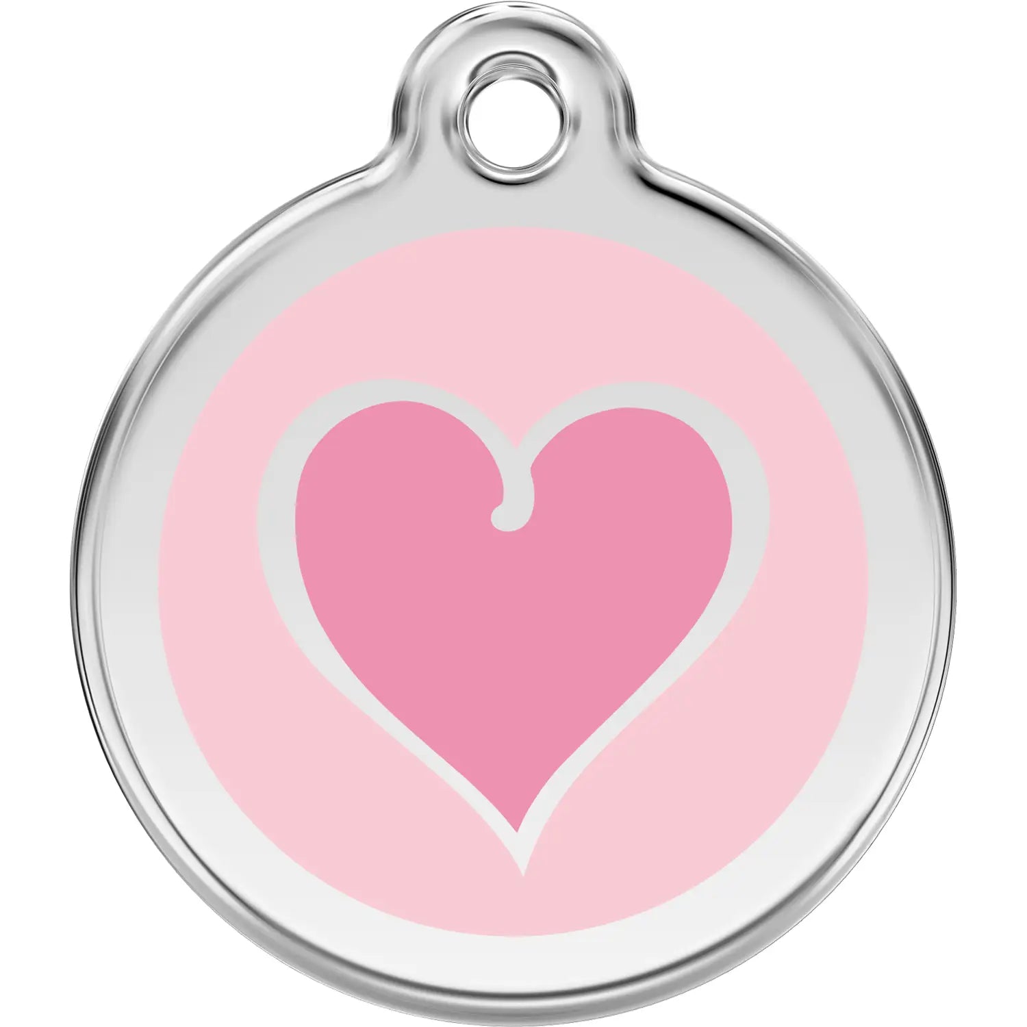 Red Dingo Pink Heart Pet ID Dog Tag - Soft, sweet, and just a little dramatic. This pink heart tag suits the dog who gives side-eyes and snuggles in equal measure. Engrave your pet's vital information on these solid stainless steel tags. Built to last a lifetime, Red Dingo tags won't rust, corrode, or break. Made from 3mm thick stainless steel with a decorative enamel design. Designed in Australia, Engraved in the U.S.A. for the coolest dogs in the world.