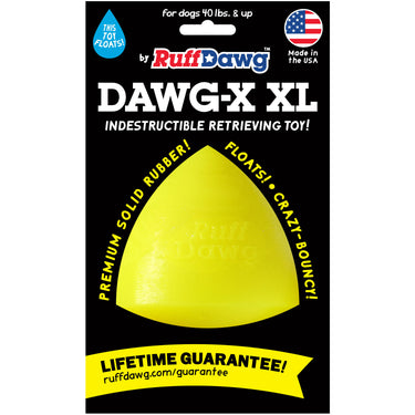 Ruff Dawg Dawg-X – Indestructible Dog Fetch Toy. Built for endless games of fetch, chase, and tug. Made in the USA from ultra-durable, non-toxic rubber, this indestructible dog toy is designed to stand up to the toughest chewers while remaining gentle on teeth and gums.