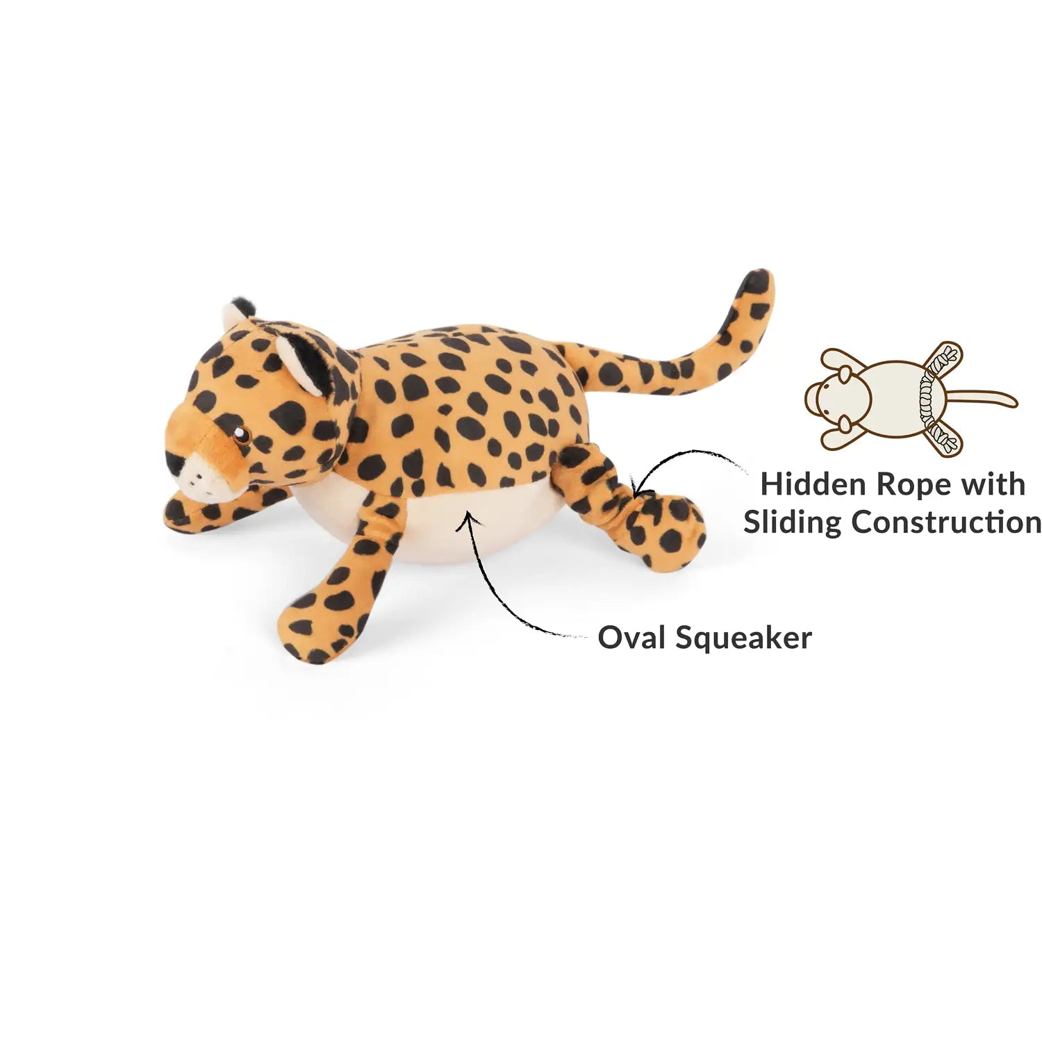 Unleash the wild side of playtime with P.L.A.Y.’s Big Five of Africa Leopard Dog Toy! Inspired by the agility and excitement of the African savannah, this sleek leopard plush is designed to spark your dog’s natural chase-and-pounce instincts. With sliding hind limbs for dynamic movement and an oversized squeaker that delivers a distinctive, attention-grabbing sound, it’s made for interactive fun your pup won’t want to put down.