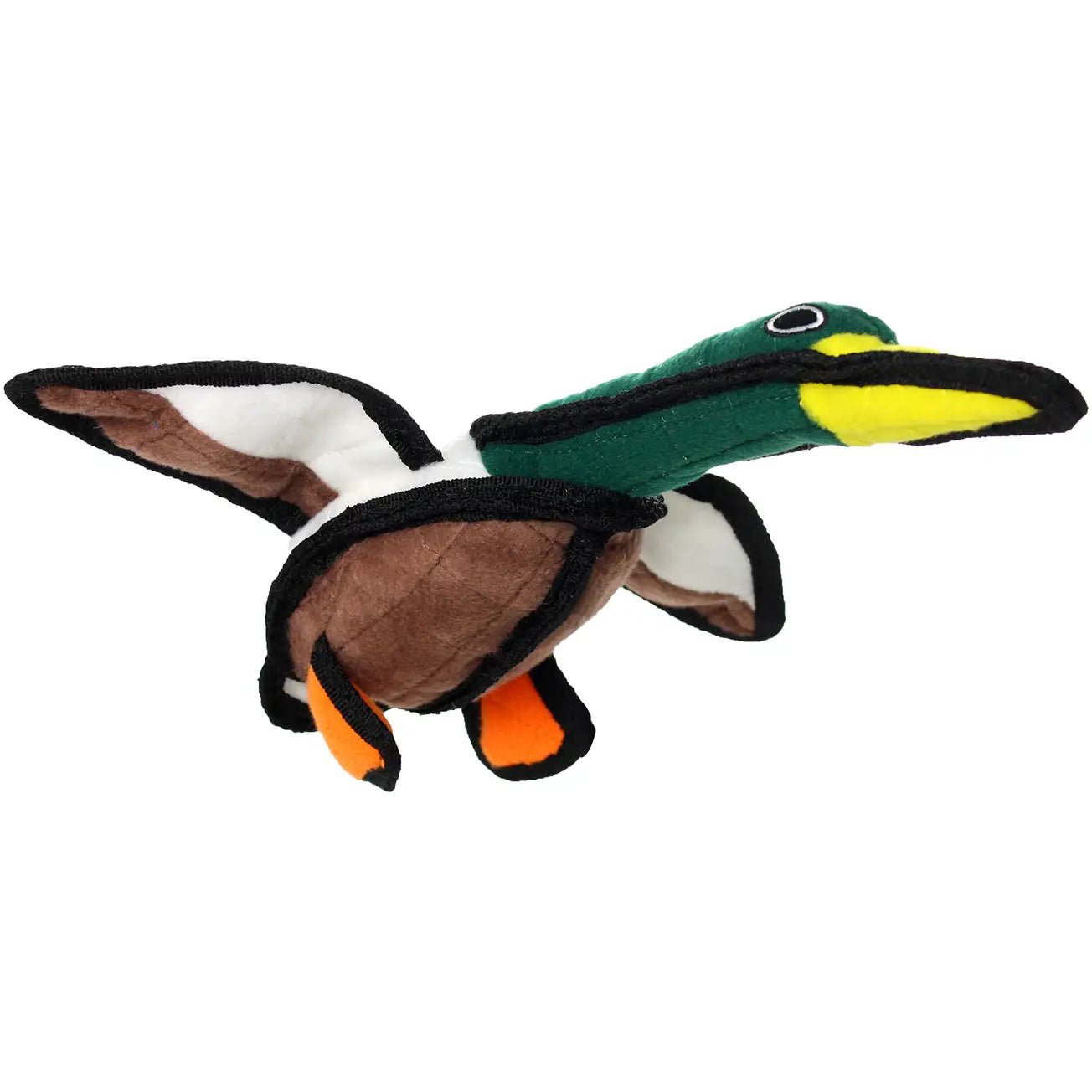 Tuffy Dog Toys Dudley the Duck JR! There is no time to dilly-dally with Dudley the Duck JR! Fly him through the air with a game of fetch, or pull him through the pool with a game of tug. This daring duck loves it all! Your Pooch will be pleased with this fun and adventurous toy! Features 2 Built-in Squeakers. Easy to toss and Great For Indoors! Washable! And Floats!! -- Soft edges won't hurt gums. For Dogs: Under 35 lbs.