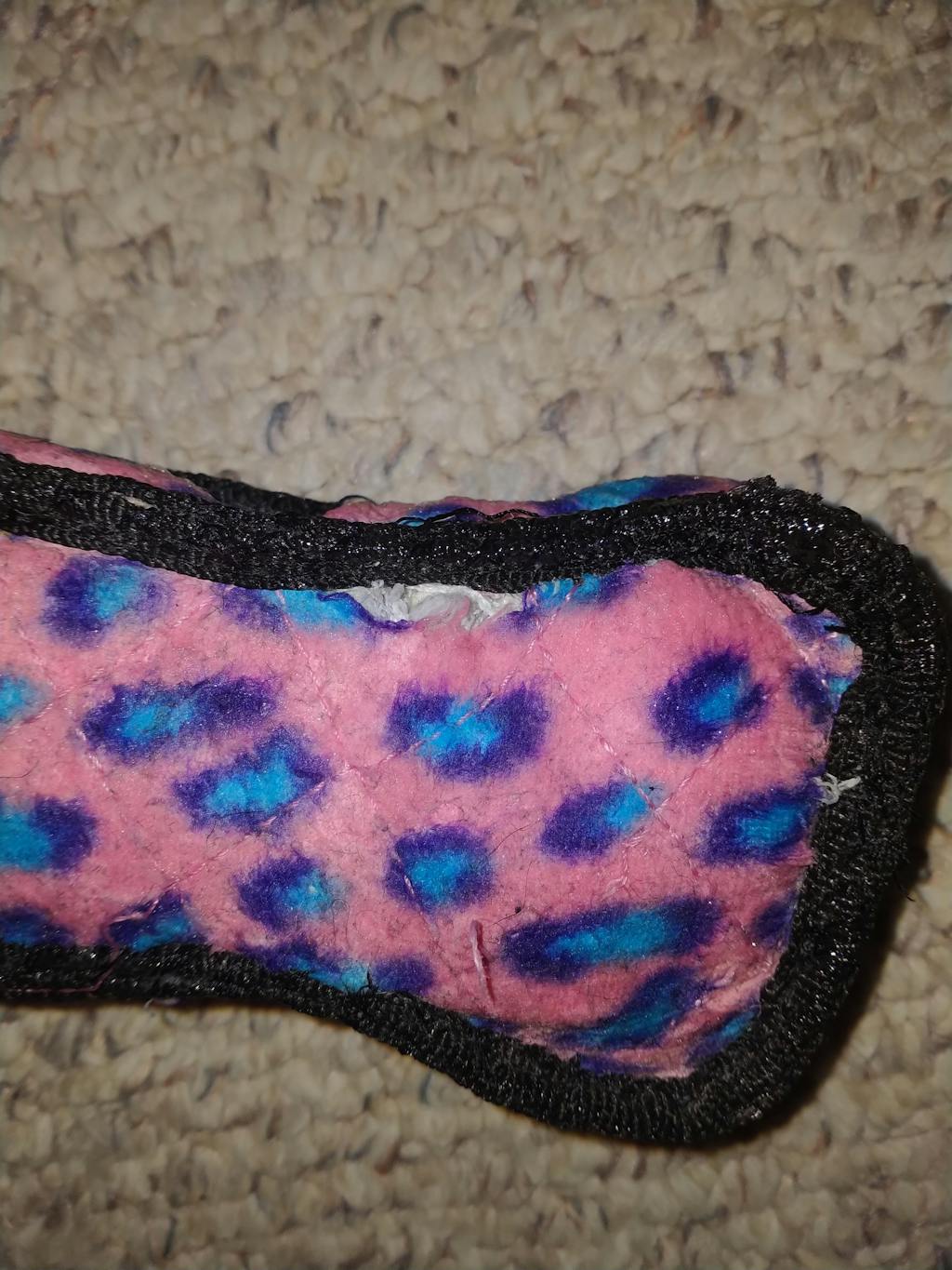 If your dog exposes the white stuffed core, remove the toy immediately to prevent ingestion. Loose threads should also be cut off promptly.
