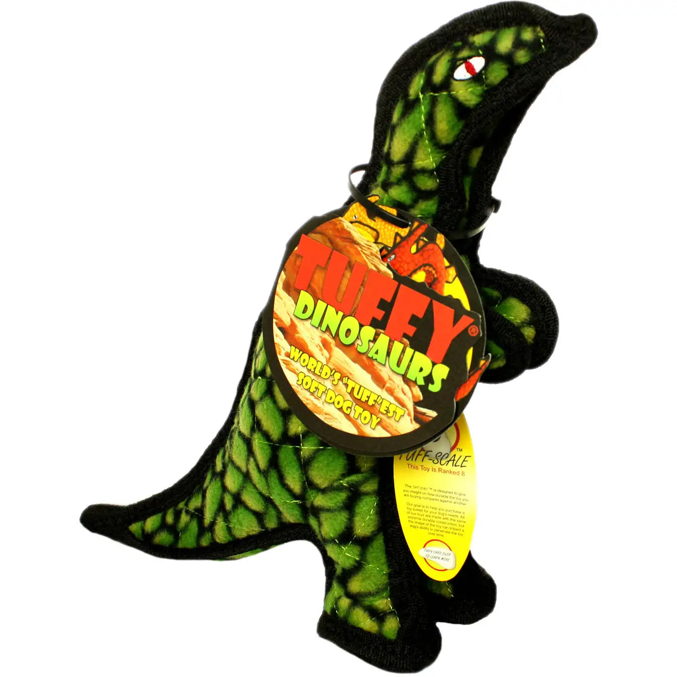 Tuffy Dog Toys Trex the T-Rex JR - Extinct? Not a chance! Meet a mini version of the mighty dinosaur plush built for endless fun. Smaller than the original Tuffy T-Rex, this JR size is the perfect companion for dogs of all ages who love durable plush toys. Designed with the same legendary strength as all Tuffy Dinosaur Dog Toys, Trex the T. rex JR is constructed with 3 layers of tough material: