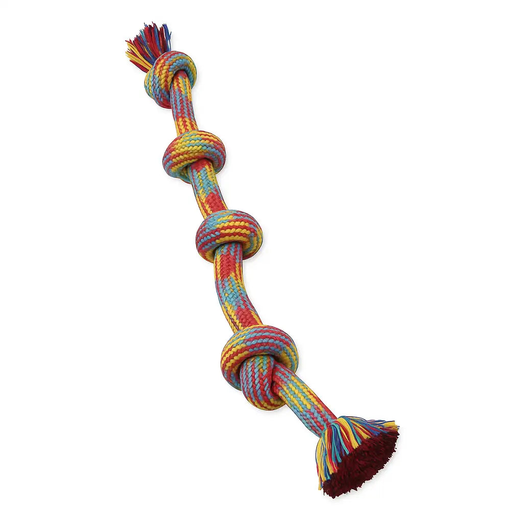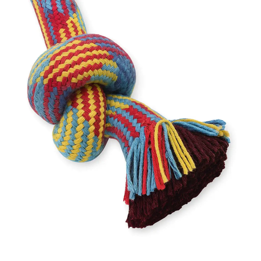 Mammoth Flossy Chews Colossal 4-Knot Rope Tug 34” - Go big or go home! This Colossal Rope Tug is built for massive fun and even bigger dogs. Measuring an impressive 34" long, this 4-knot braided rope toy is perfect for powerful games of tug-of-war, high-energy fetch sessions, and hours of satisfying chewing. Crafted from durable cotton-blend flossy fibers, it’s designed to handle tough play while naturally helping to clean teeth and reduce plaque and tartar buildup.