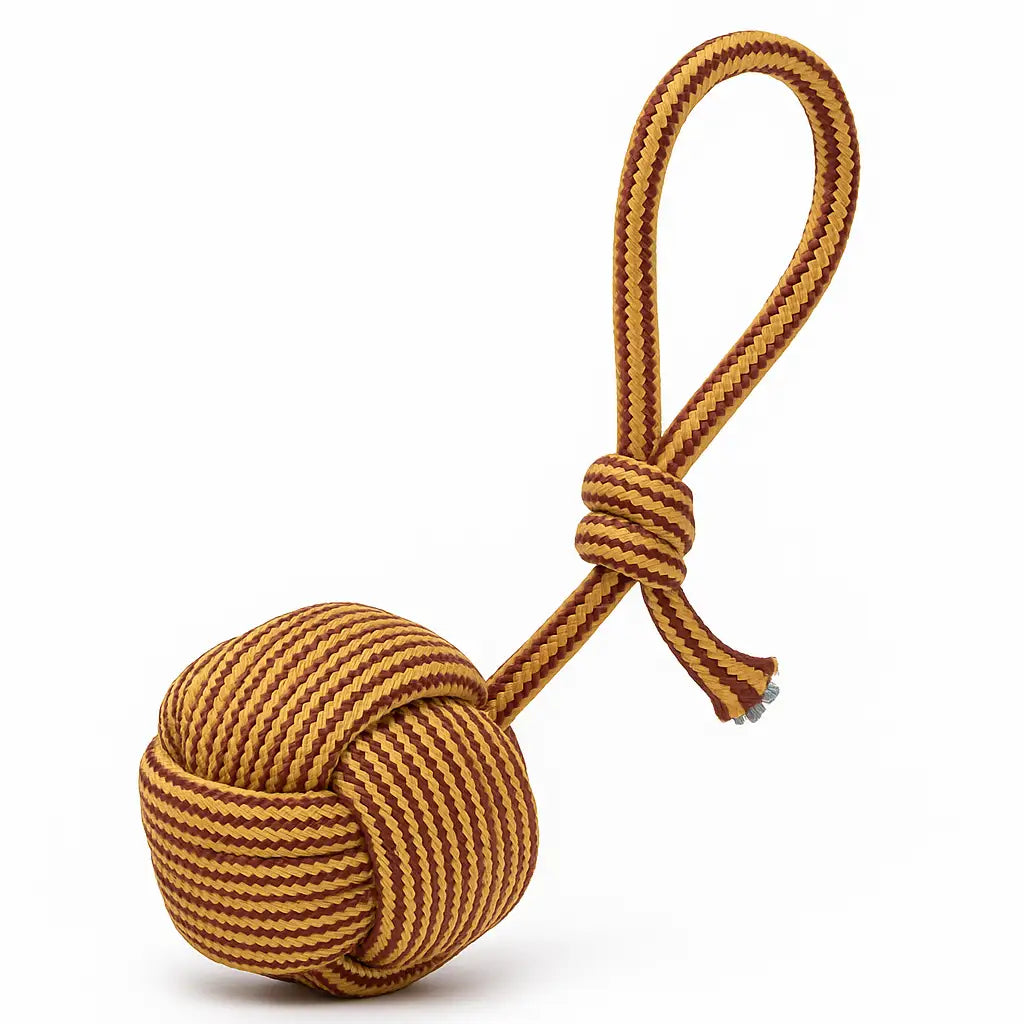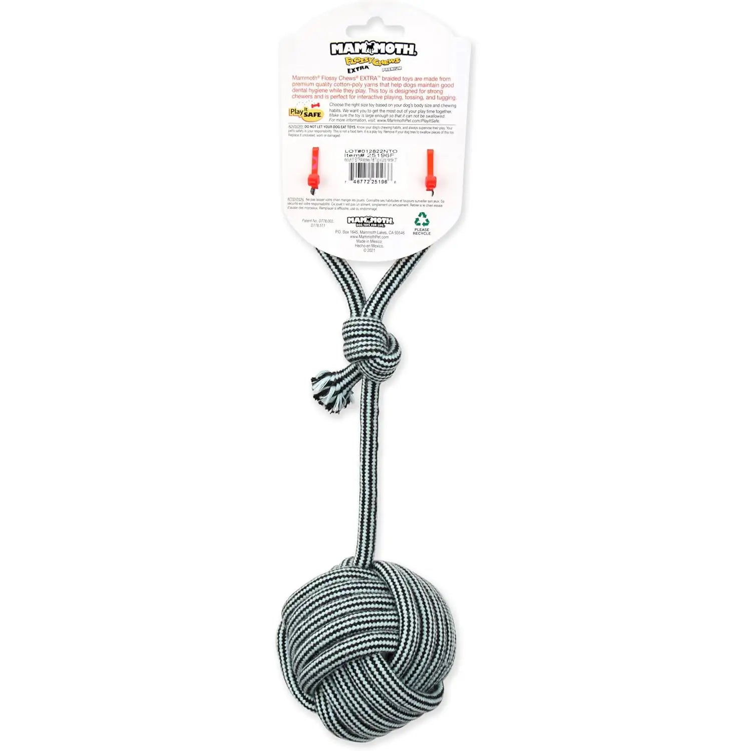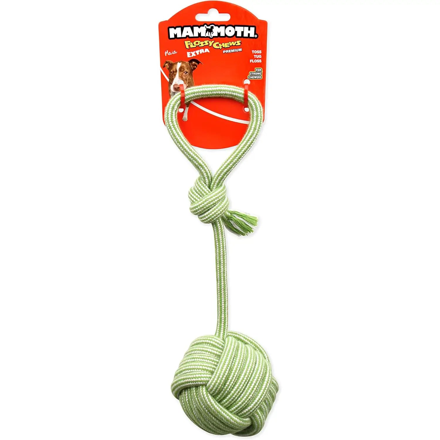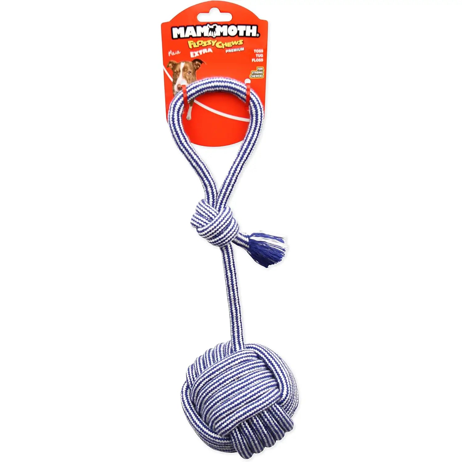 Mammoth Extra Flossy Chews Monkey Fist Tug - Tougher, stronger, and built for big-time fun! The Mammoth Extra line takes playtime to the next level with premium materials, bold colors, and durable construction dogs love. The Monkey Fist Tug features a poly-cotton woven outer sheath and a reinforced inner core made from poly-cotton woven fibers — delivering extra strength for powerful chewers. As your pup tugs, chews, and plays, the rope fibers naturally help clean teeth and massage gums for a healthy mouth and happy playtime. Perfect for tug-of-war or fetch with your favorite furry teammate!