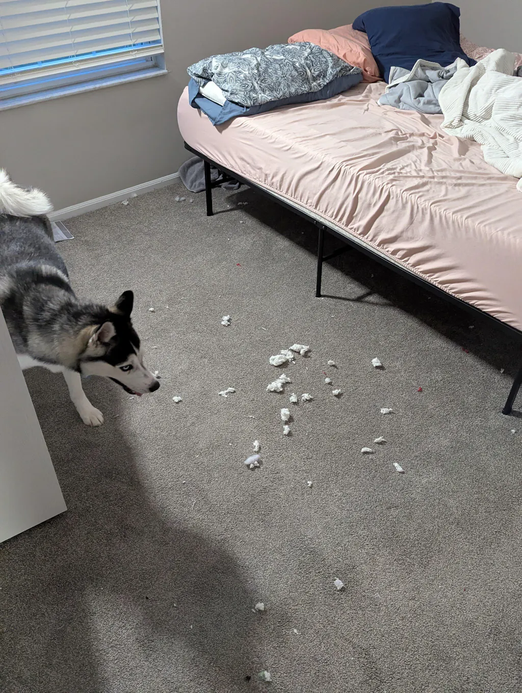 If your dog exposes the white stuffed core, remove the toy immediately to prevent ingestion. Loose threads should also be cut off promptly.