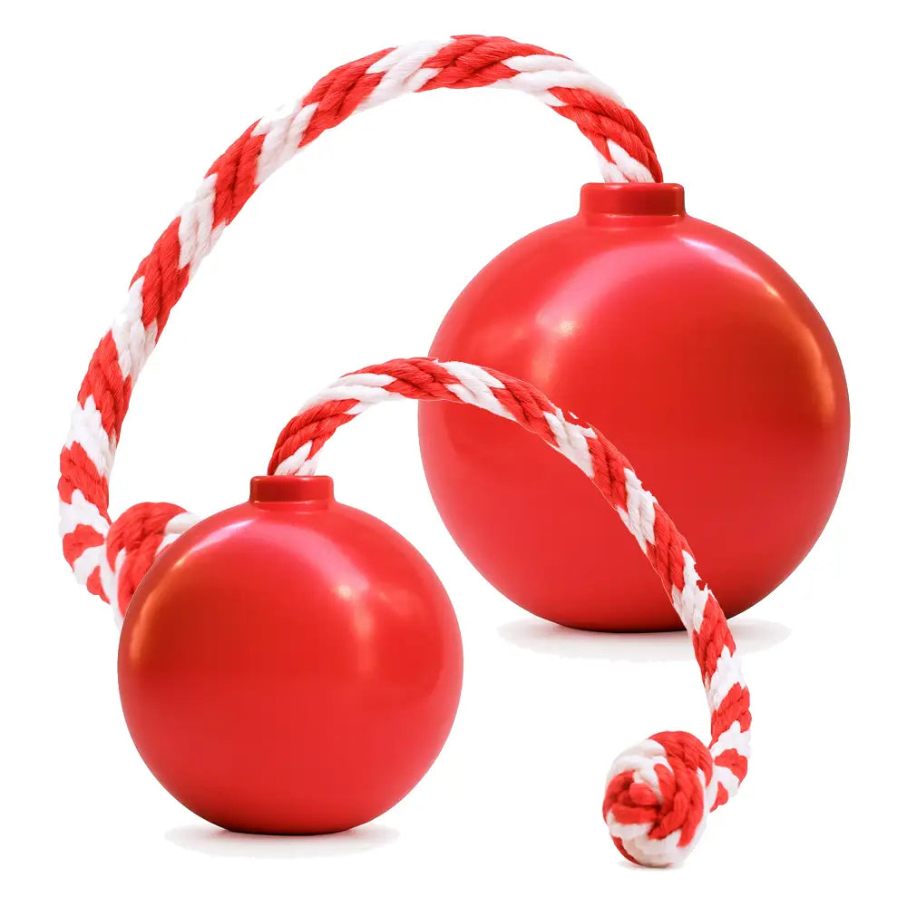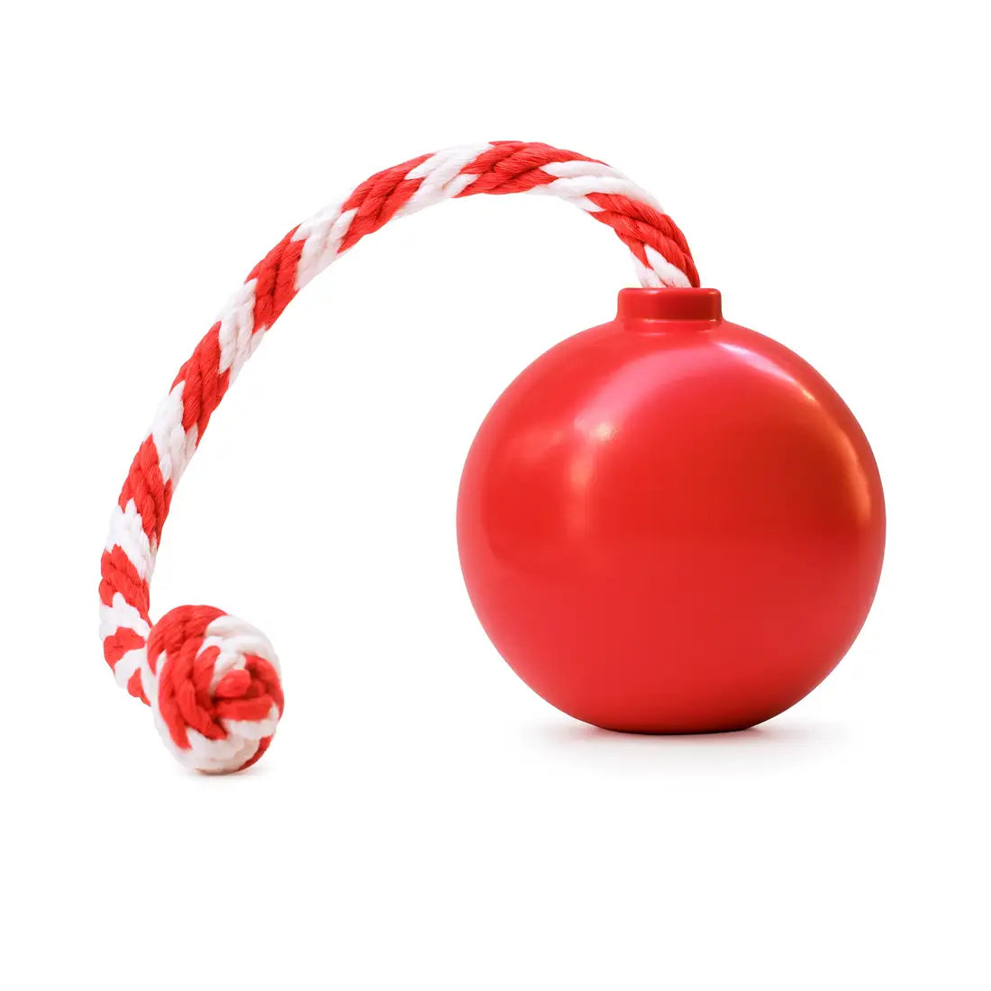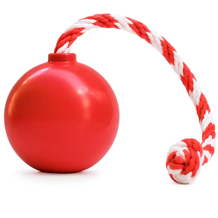 MULTIPURPOSE TOY: The Cherry Bomb is a chew toy, a treat dispenser, a tug toy and a retrieving toy all in one! It is designed to withstand the abuse of most "power chewer" dogs.