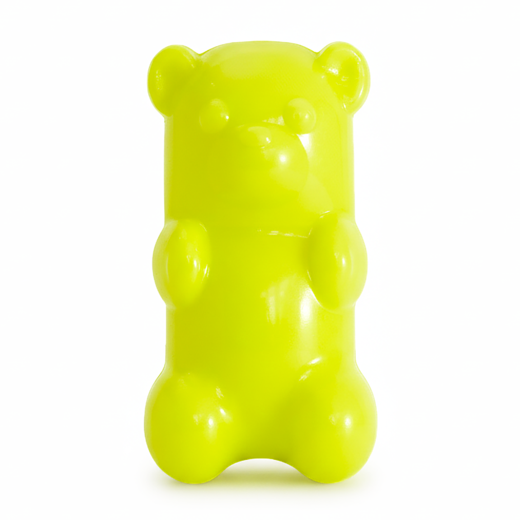 Ruff Dawg Gummy Bear is a bouncy, squishy retrieving toy designed for dogs of all sizes. Made from premium rubber that’s gentle on teeth and gums, Gummy Bear is perfect for interactive play like fetch and tug. For extra enrichment, Gummy Bear can be filled with treats or strung on a rope for easy throwing and tugging. Its fun shape also makes it a sweet prop for pet photography. Assorted colors.