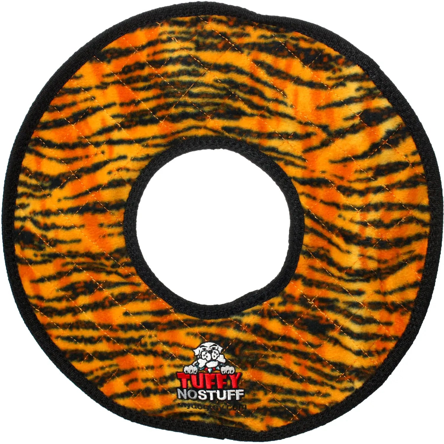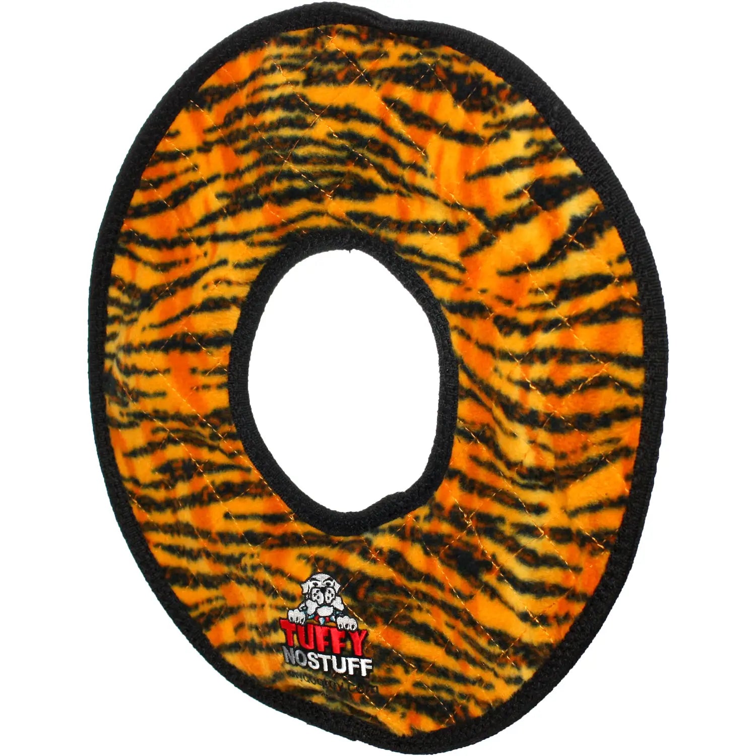 Tuffy Dog Toys No Stuff Mega Ring - The "TUFF" with no Stuff! Extremely Durable Mega Ring Dog toy with the same great construction but NO "Stuffing" in the center! Great for interactive play with one or multiple dogs. It can be used as a Frisbee or a tug toy on land or in the water. Great for flyball training! Easy to toss and Great For Indoors! Washable! And Floats!! The soft edges won't hurt gums. NO POLY STUFFING.