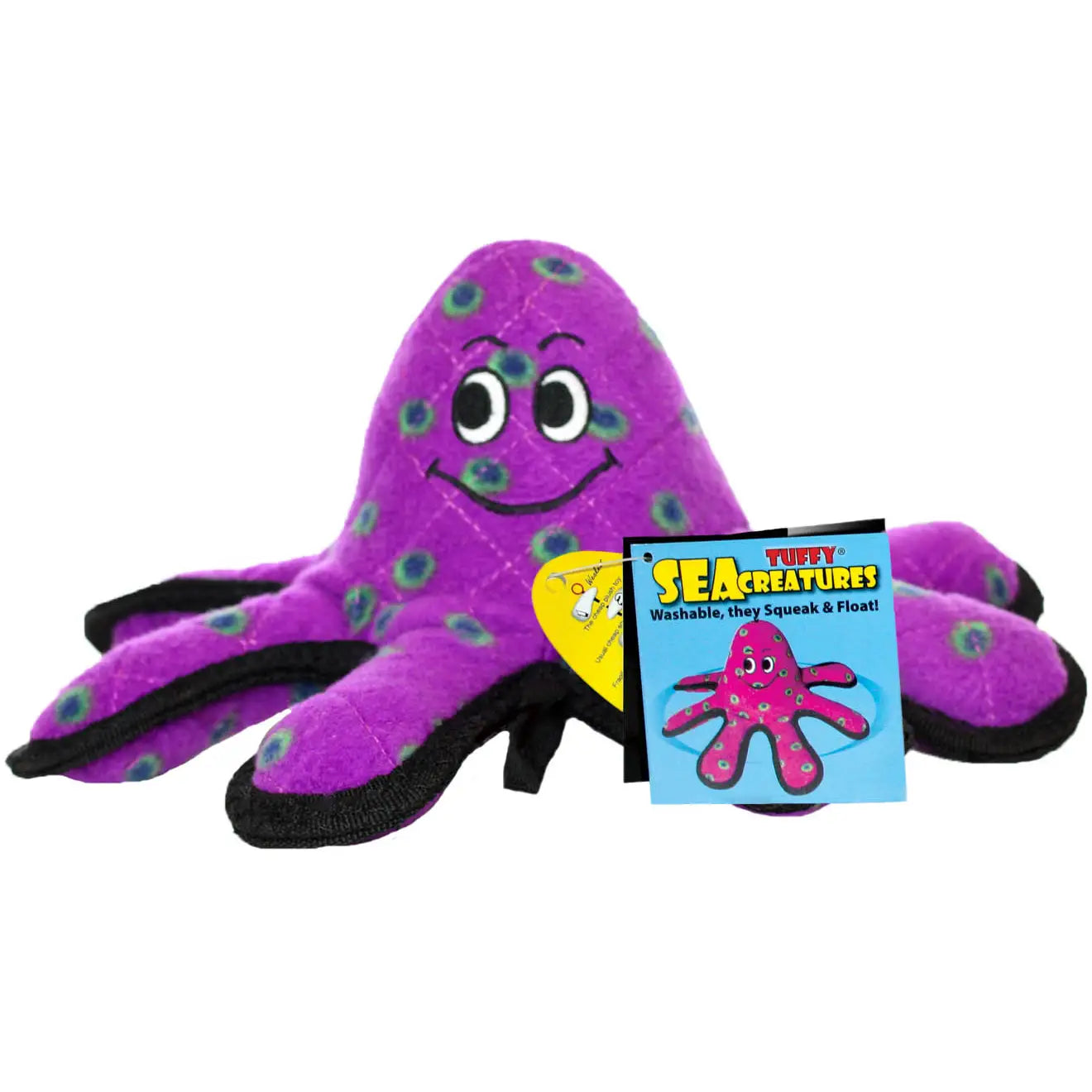 Tuffy Dog Toys Oscar the Octopus - Small but mighty, Oscar the Octopus is built for endless interactive fun! With multiple arms for tugging and tossing, this playful sea creature is perfect for fetch, tug-of-war, or multi-dog play. The soft edges are gentle on teeth and gums, and Oscar even floats for water-loving pups. Tuffy Ocean toys are made with three layers.