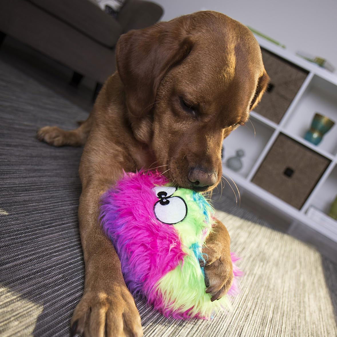 GoDog's Rainbow Furballz with Chewguard - This silly character Furballz is made from soft stuffed plush in a mega bright multi colored design. Each Furballz is lined with Chew Guard Technology they will stand up to tough play! Each Furballz features a large Mega Grunter, just in case your guy needs some added excitement.