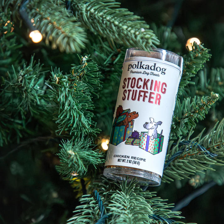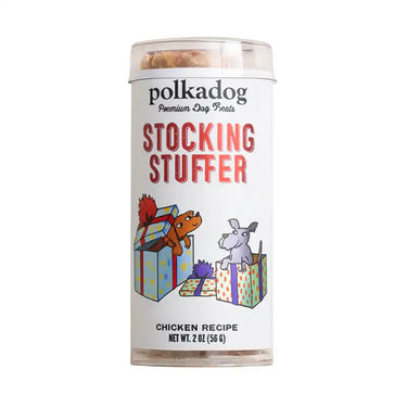 Polkadog Stocking Stuffer Treats - Deck the paws with crispy, crave-worthy goodness! Polkadog’s holiday Chicken Little Bits are a seasonal favorite—made from fresh, U.S.-raised chicken mixed with long-grain brown rice and a touch of potato flour, then gently dehydrated in Boston for the perfect crunchy bite. Nutritious, delicious, and perfectly sized for training or stocking stuffing, these festive treats bring big holiday cheer to every good dog.