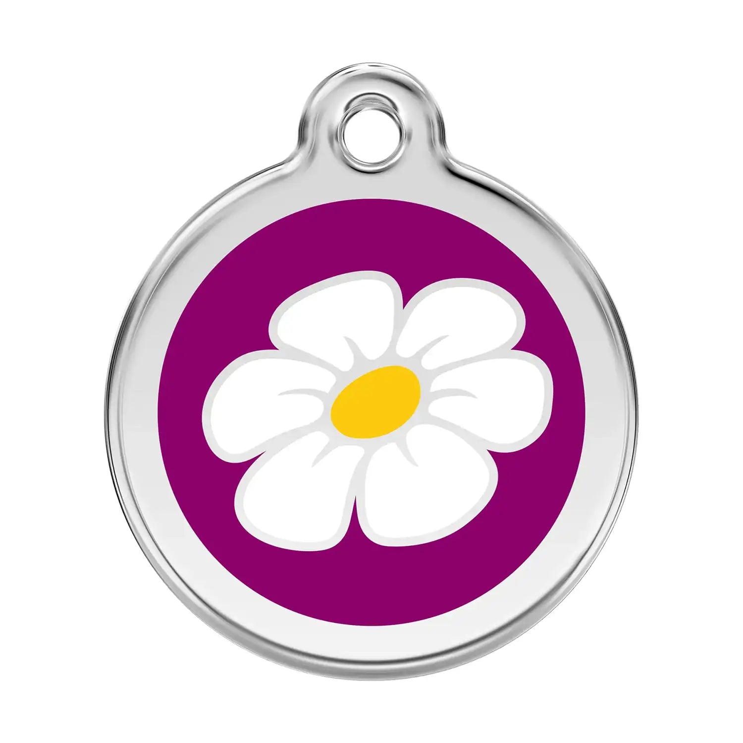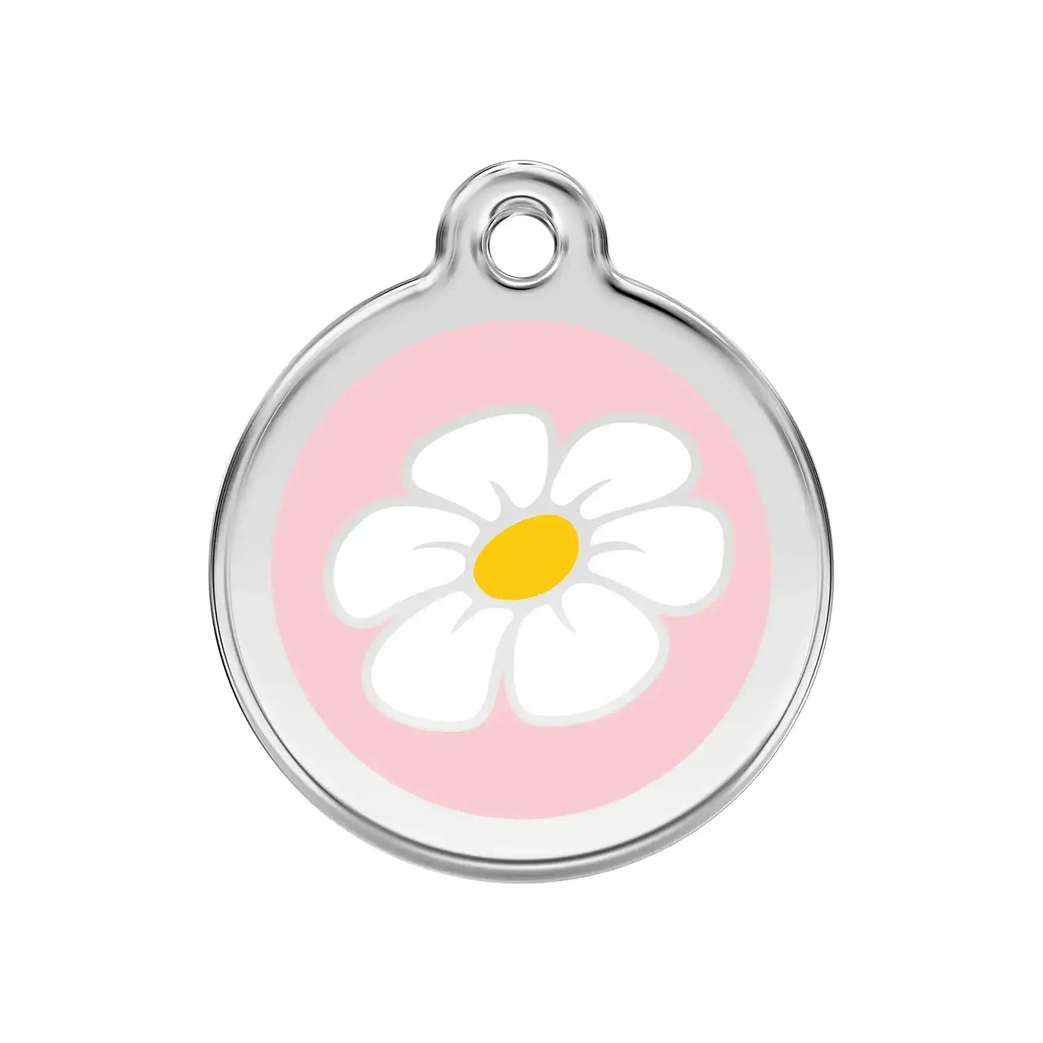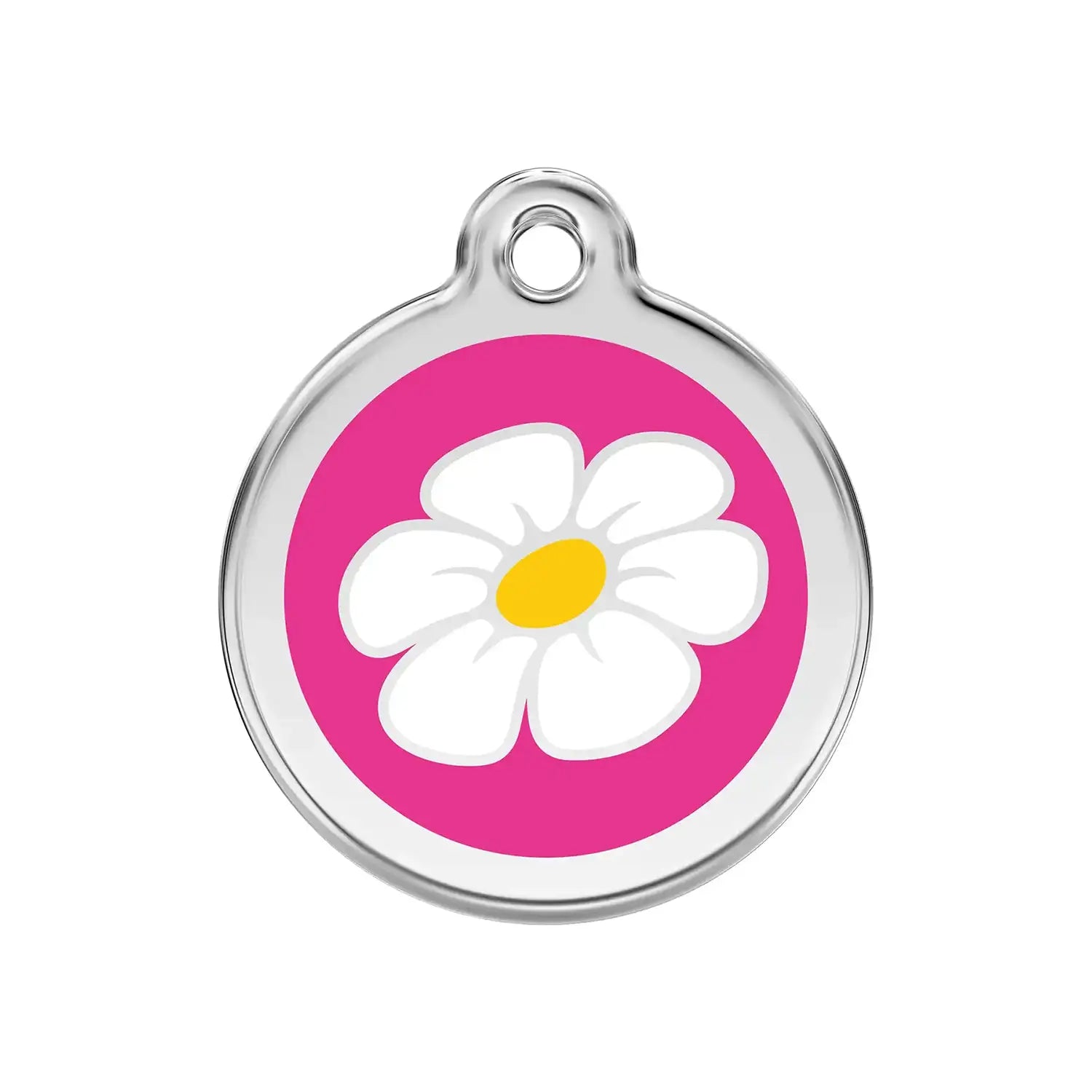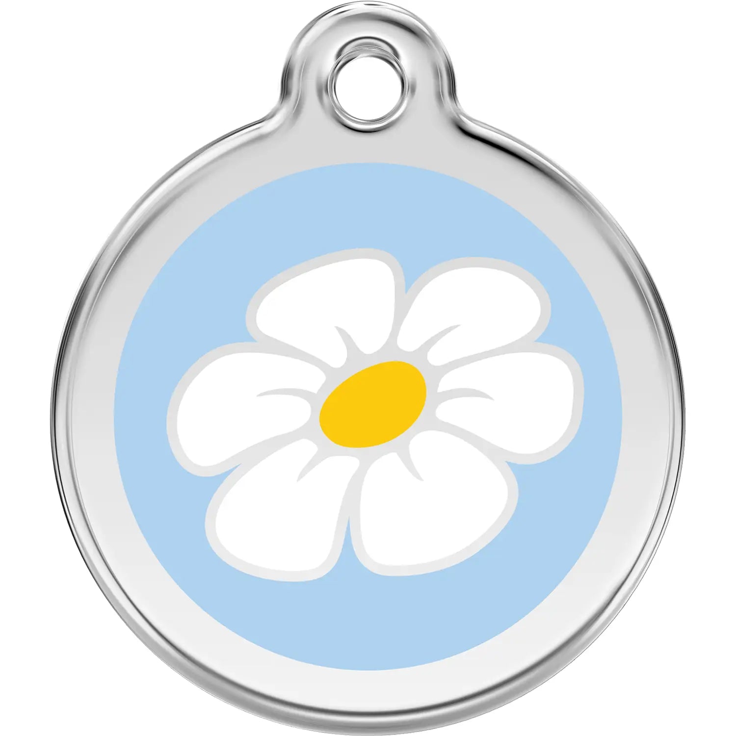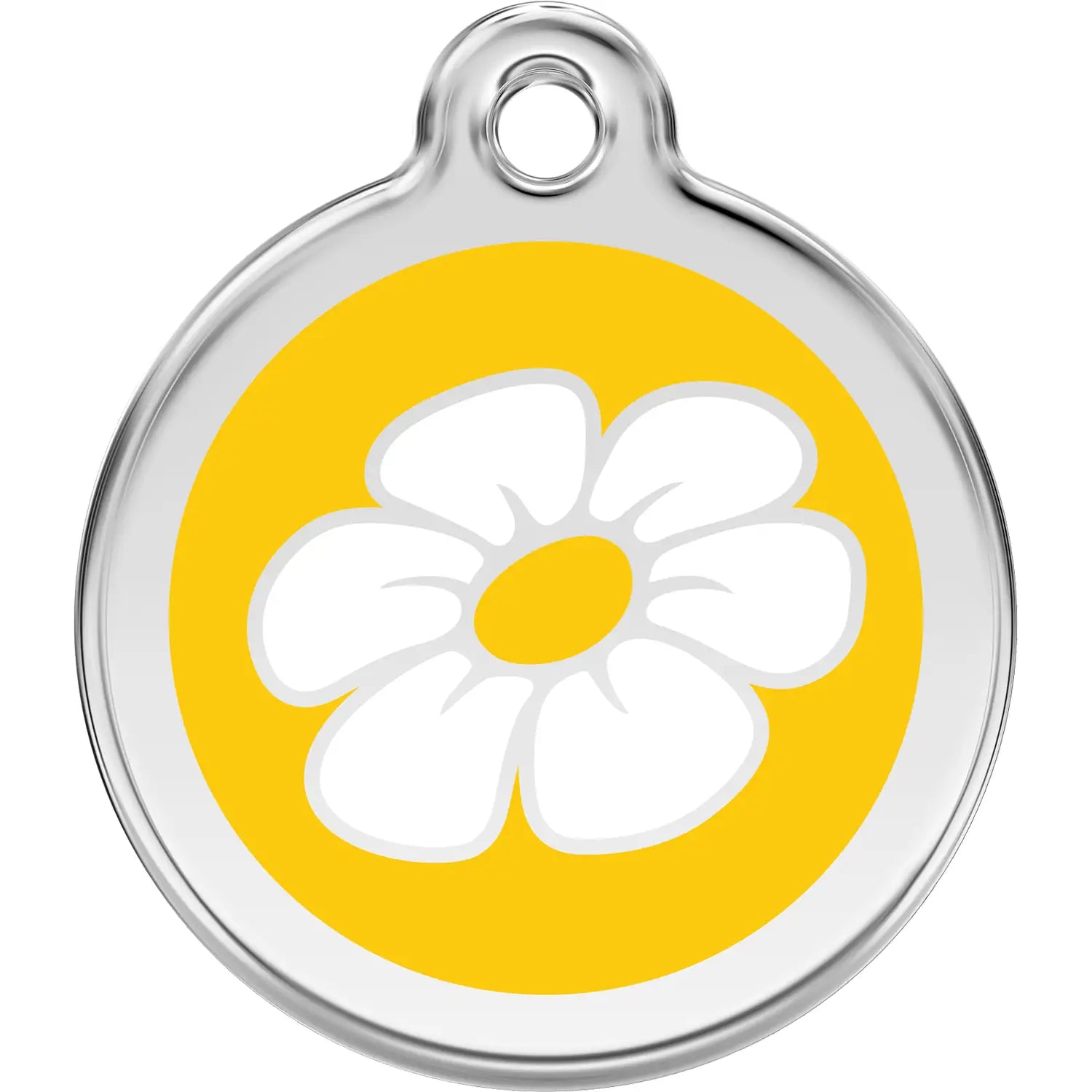 Red Dingo Daisy Pet ID Tag - Soft and sunny with just the right amount of sass. The daisy tag suits the dog who brightens every room, rain or shine. Red Dingo tags are designed to withstand rust, corrosion, and breakage and are made from 3 mm-thick stainless steel with a decorative enamel design. Designed in Australia, Engraved in the U.S.A. for the coolest dogs in the world.