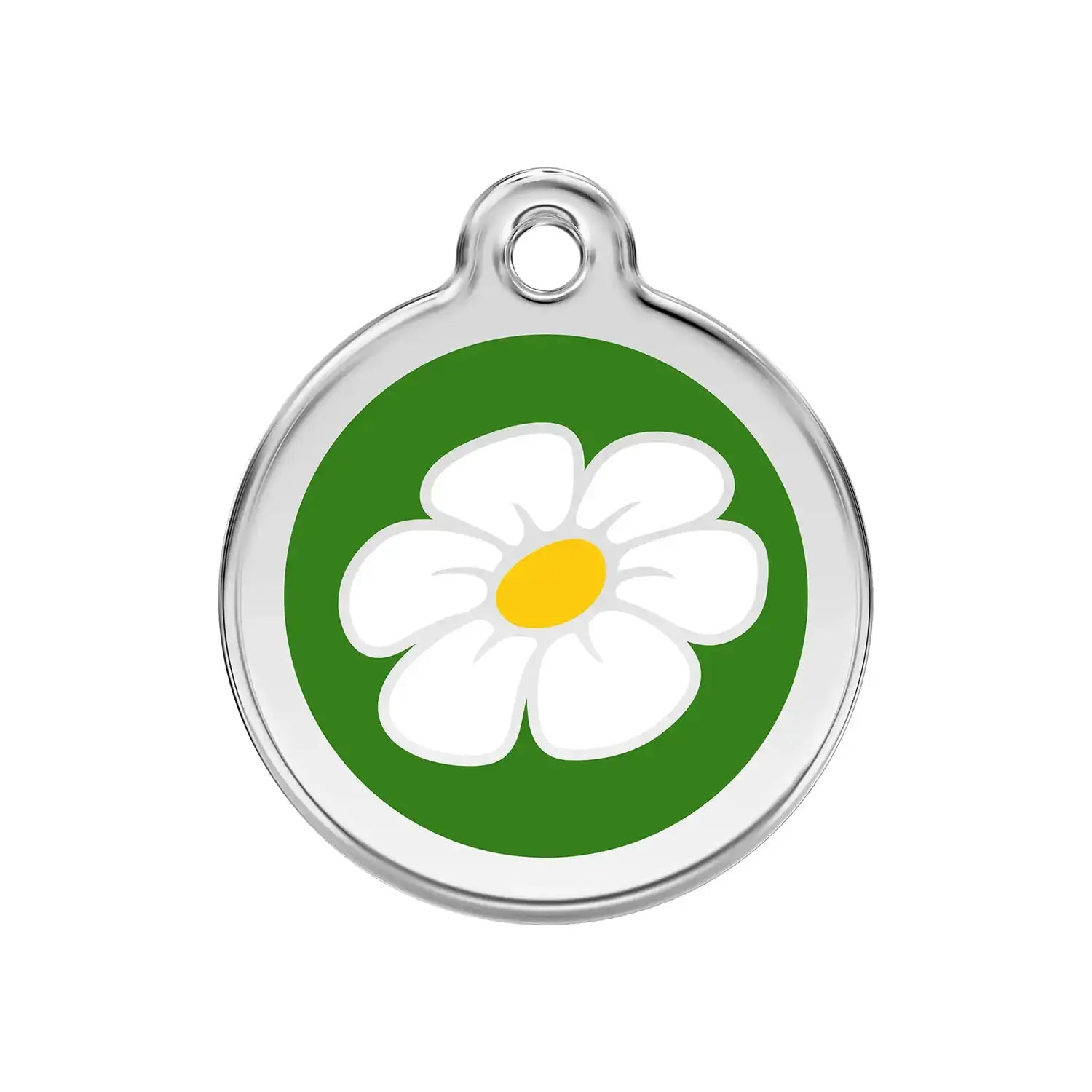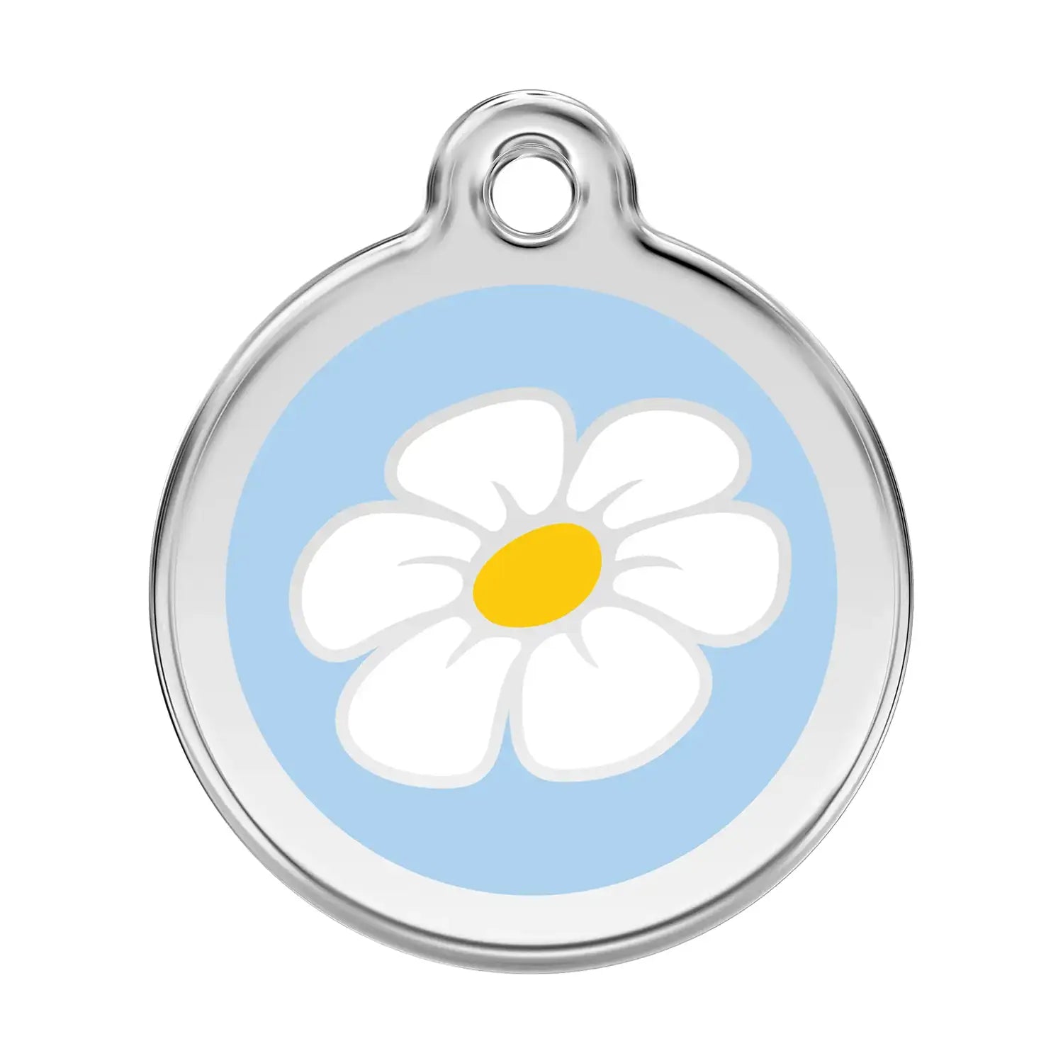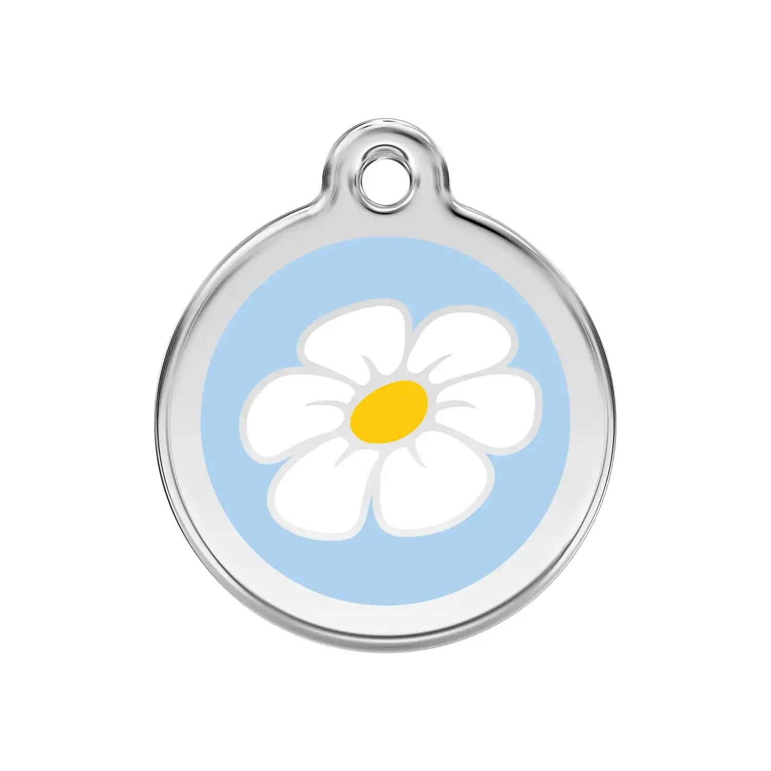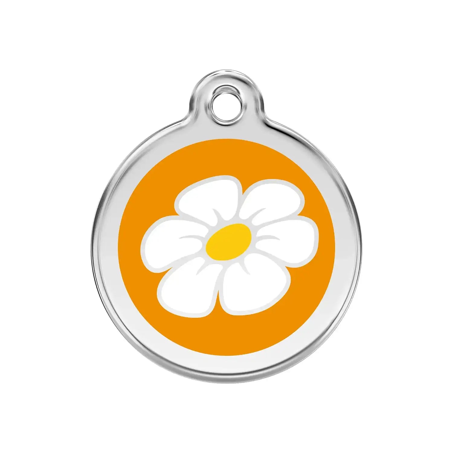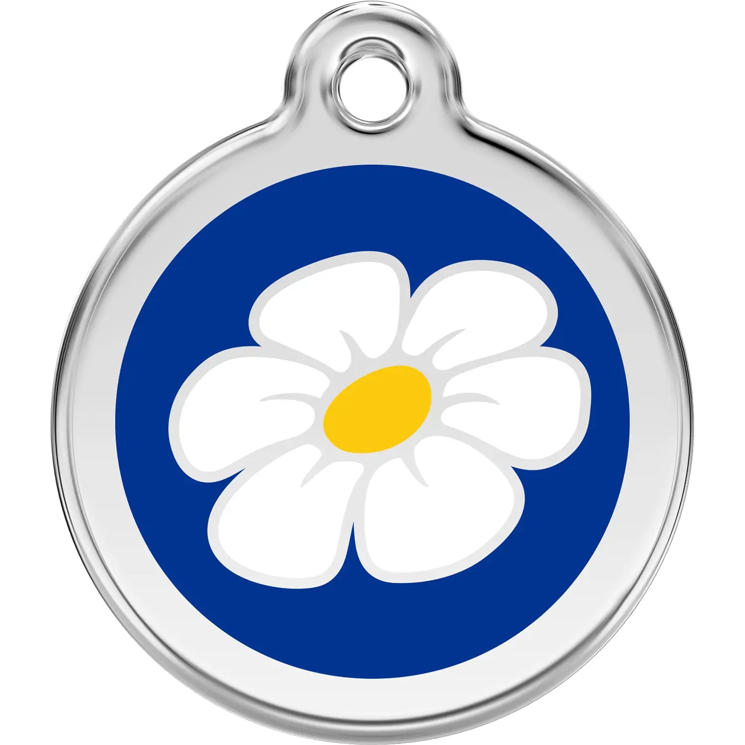 Red Dingo Daisy Pet ID Tag - Soft and sunny with just the right amount of sass. The daisy tag suits the dog who brightens every room, rain or shine. Red Dingo tags are designed to withstand rust, corrosion, and breakage and are made from 3 mm-thick stainless steel with a decorative enamel design. Designed in Australia, Engraved in the U.S.A. for the coolest dogs in the world.