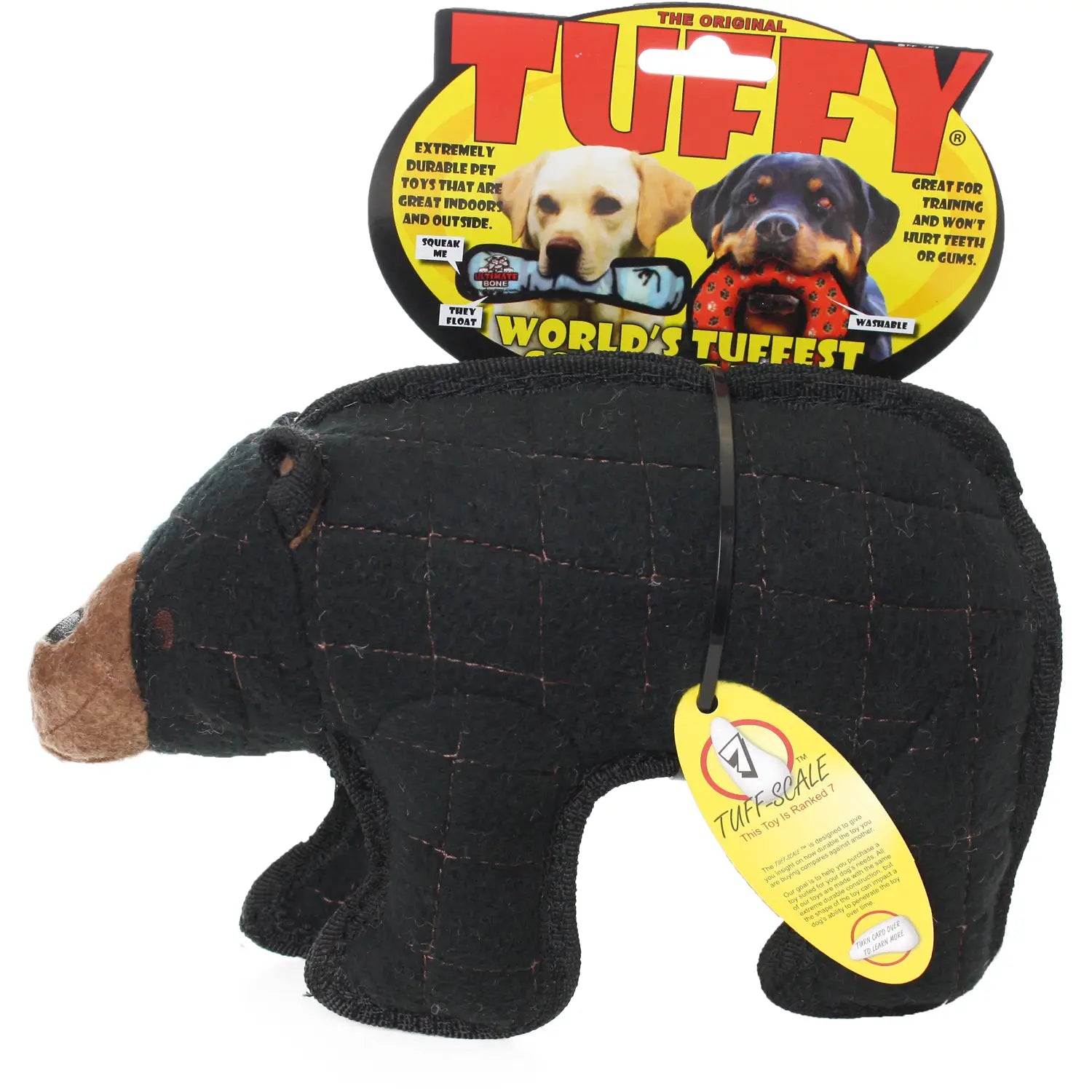 Tuffy Dog Toys Beaufort the Bear - This is one black bear with a beautiful big heart! A bit shy, your dog must befriend this beast for an assured best friend for life! Your Pooch is sure to be pleased with this fun and adventurous toy! For interactive play with one or multiple dogs. Easy to toss and Great For Indoors! Washable! And Floats!! -- soft edges won't hurt gums.