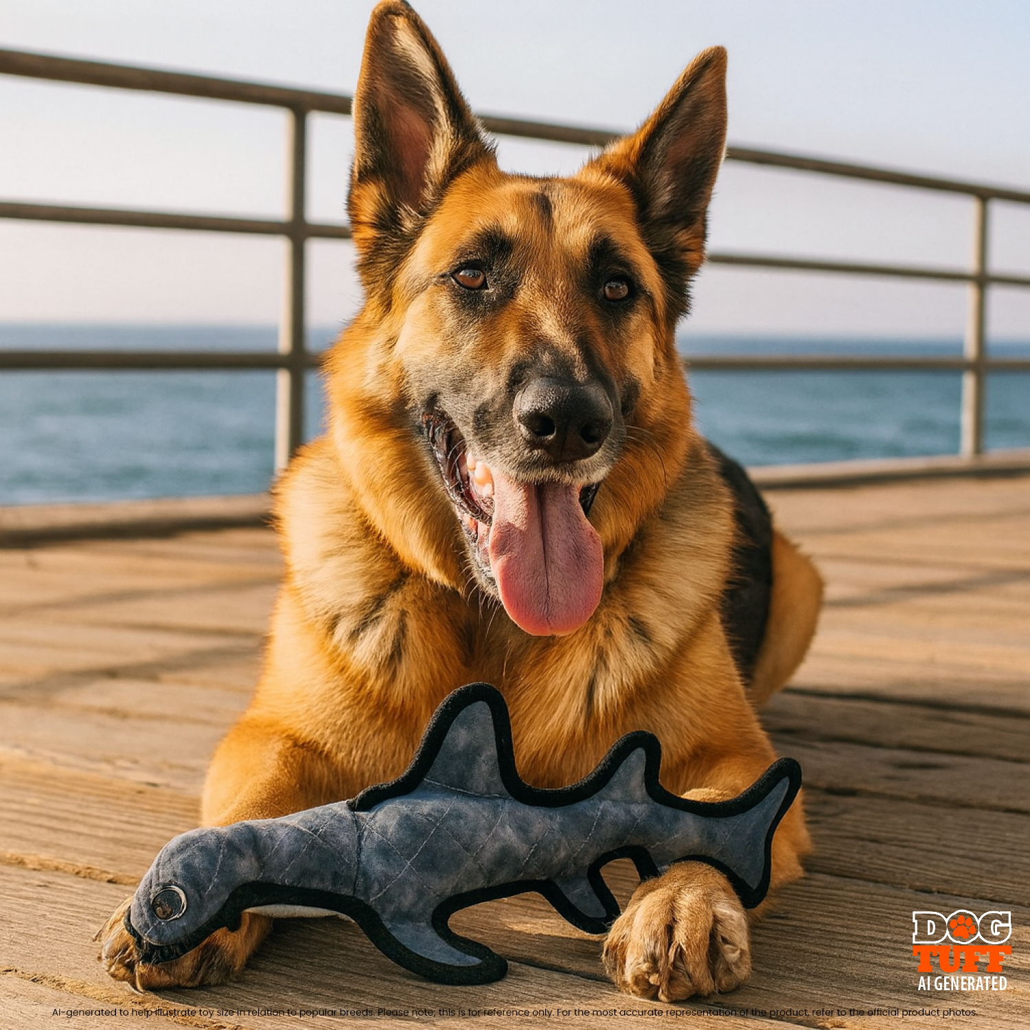 Tuffy Dog Toys – Hadley the Hammerhead Shark - Dive Into Jaw-Some Durability! Time for Fido to take a bite out of boredom with Hadley the Hammerhead, the ultimate tough shark dog toy from the Tuffy Ocean Creatures Collection! Whether you're headed poolside, lakeside, or just playing tug-of-war in the living room, Hadley brings the deep-sea action straight to your pup. Built with multiple layers of durable fabric and reinforced stitching, this floating plush dog toy is perfect for fetching, tugging, and tossing all day long.