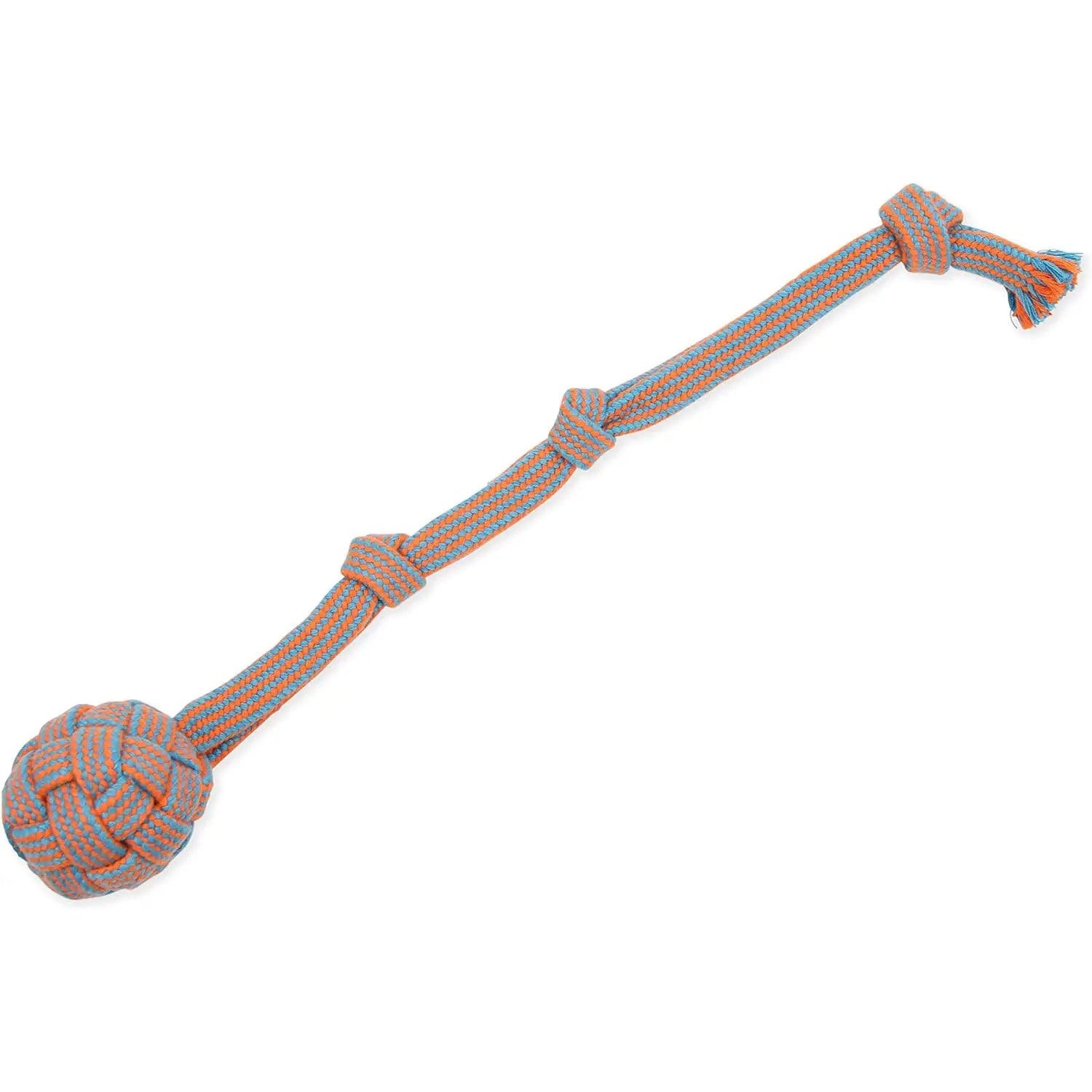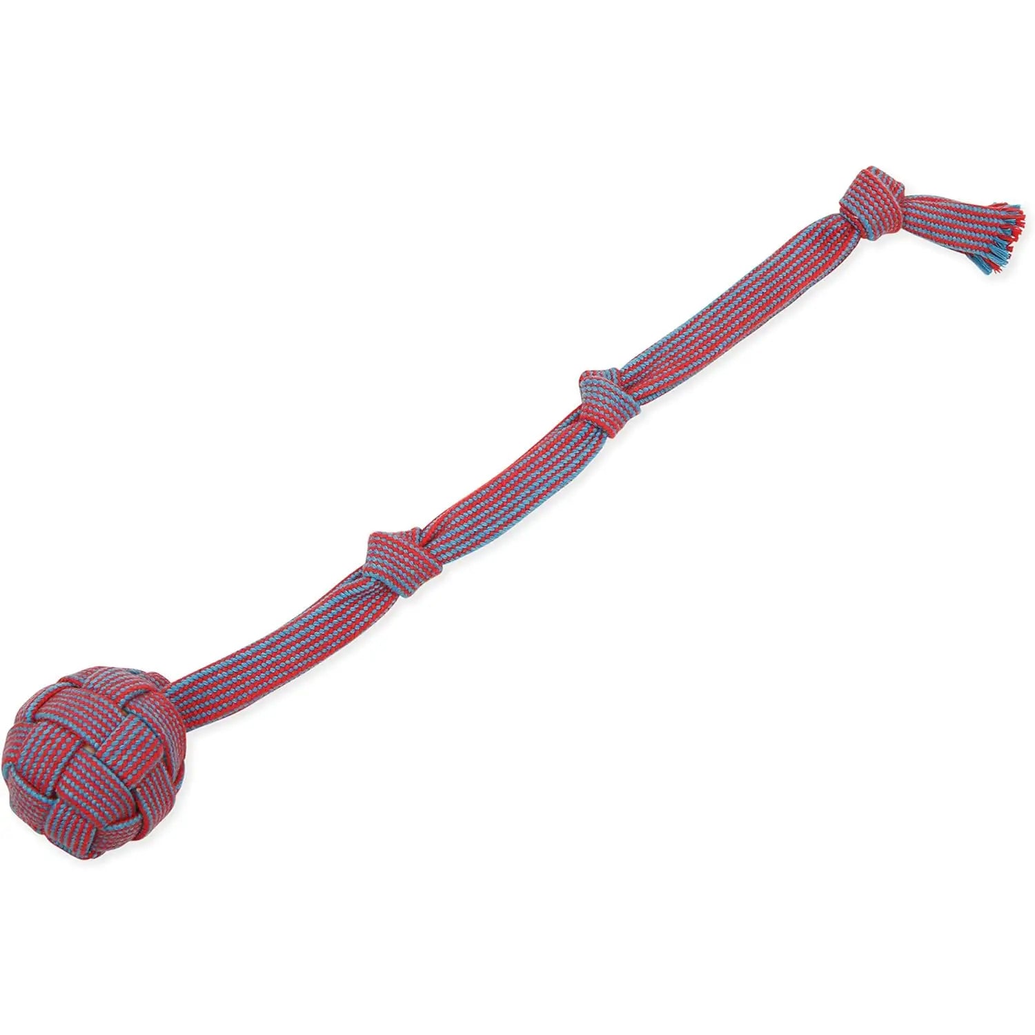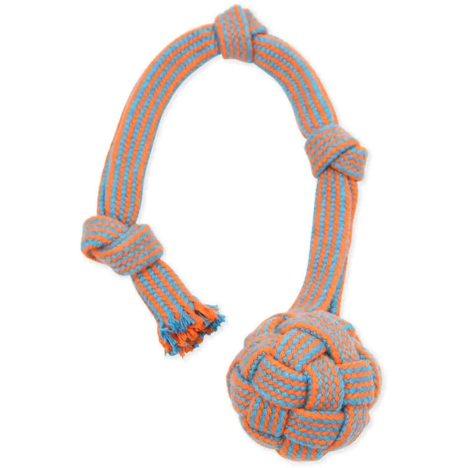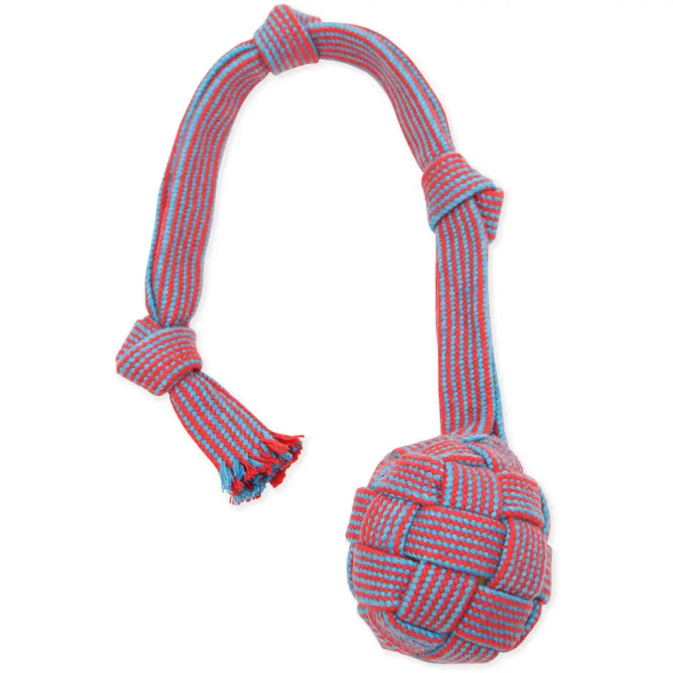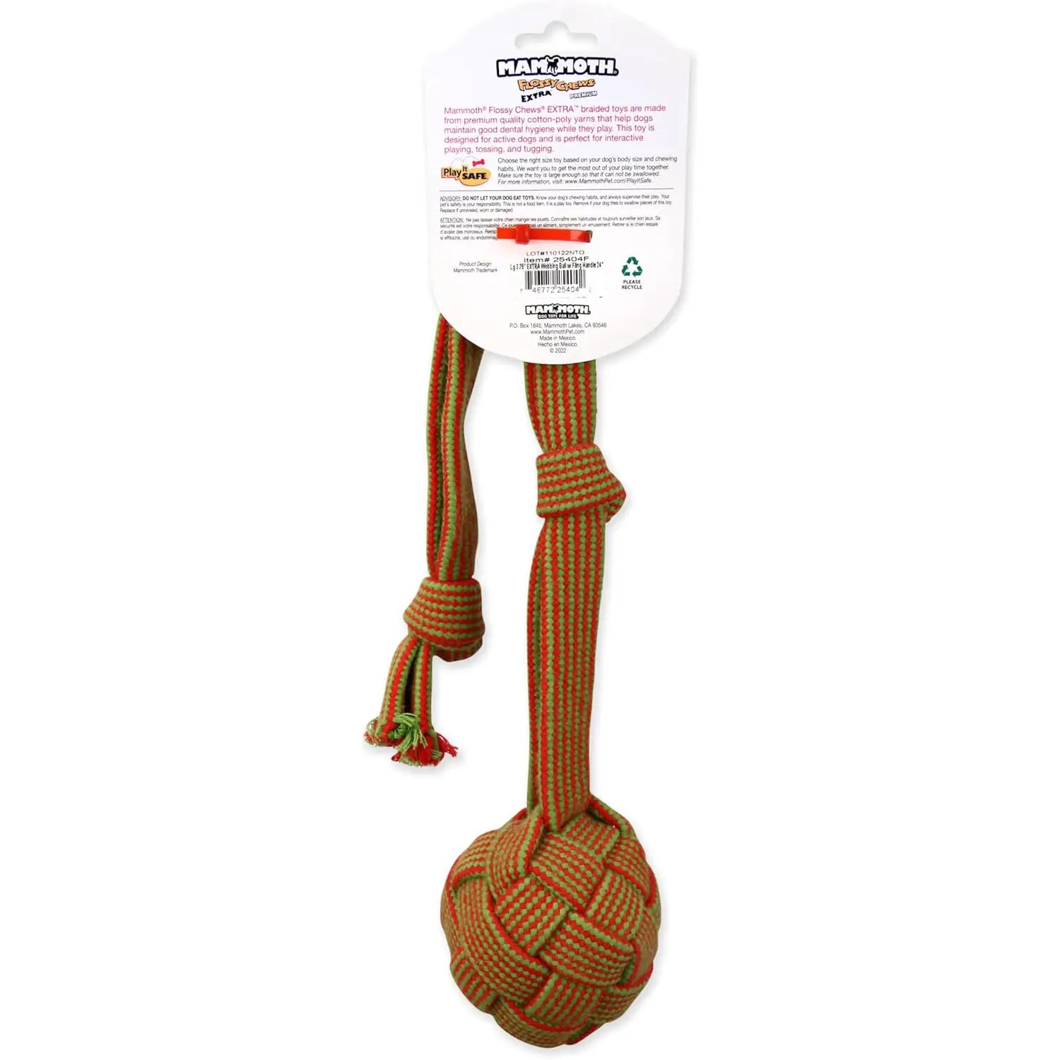 Mammoth Flossy Chews EXTRA Webbing Balls rope toys are made from premium materials in fun shapes and colors dogs love. The outside webbing is 2x thicker than standard flossy chews. The outer core is made from a poly cotton woven sheath, and the inner core is made from poly cotton woven fibers. EXTRA toys are tougher than our standard rope chews and are made more durable for strong chewers. Rope fibers floss dog's teeth as they chew and play. Excellent for flinging and fetching.