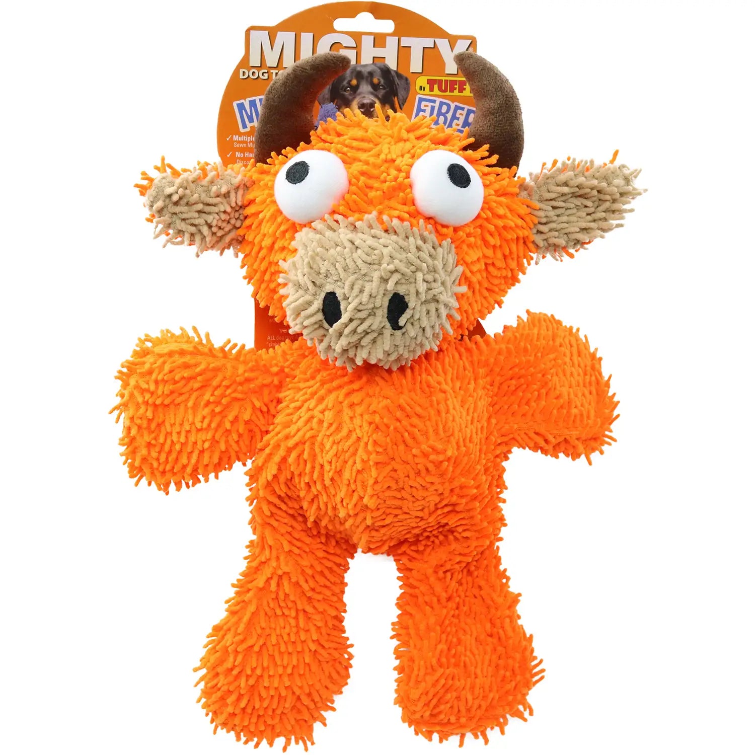 Mighty Dog Toys Microfiber the Bull - Orlando is ready for playtime, not to mention the Rodeo. Orlando is durable yet super soft. Built with multiple layers of materials on the inside and very minimal stuffing. With 6 Squeakers, Orlando is as loud as he is fun.