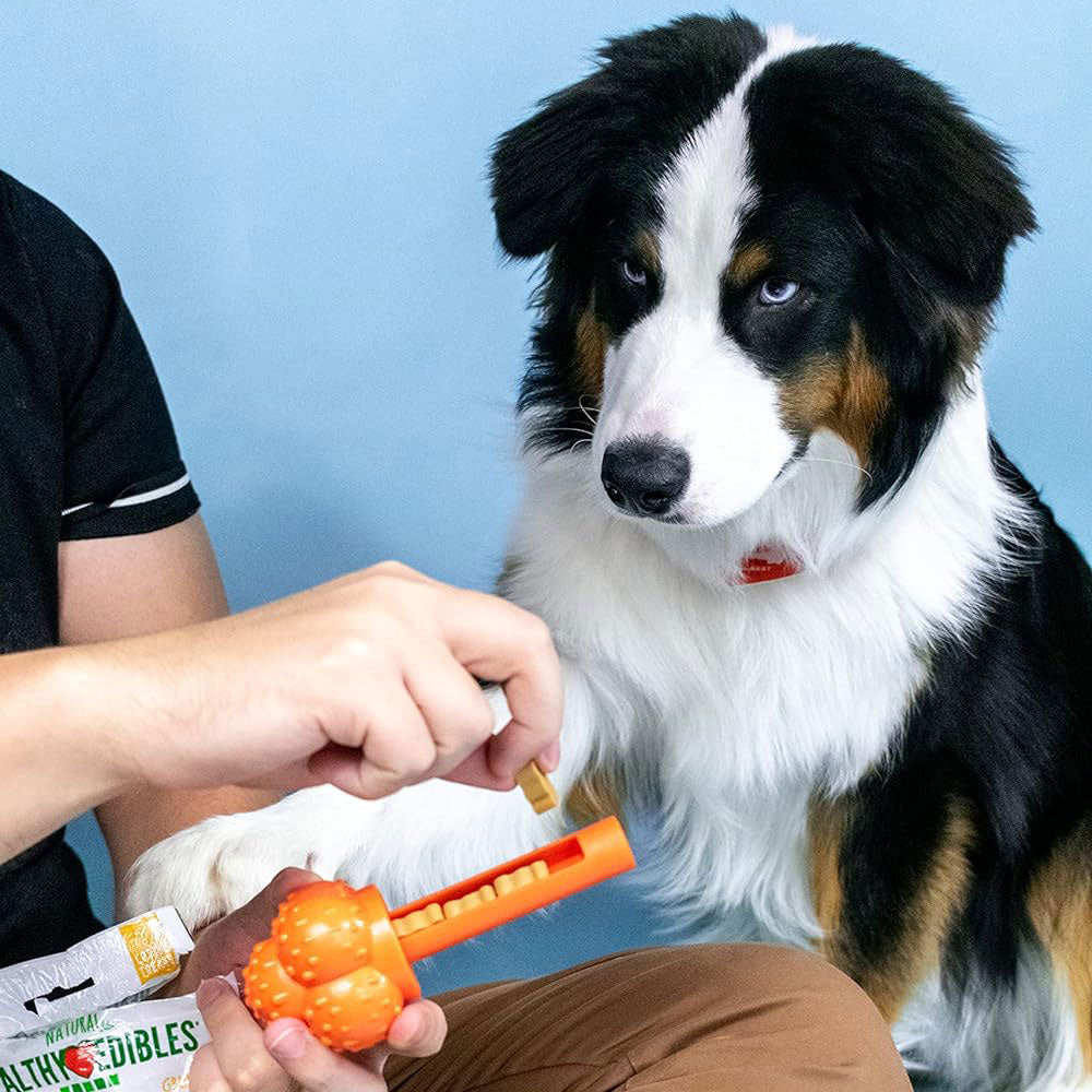 - Fill with snacks and spreads such as soft treats, kibble, peanut butter, yogurt, and much more