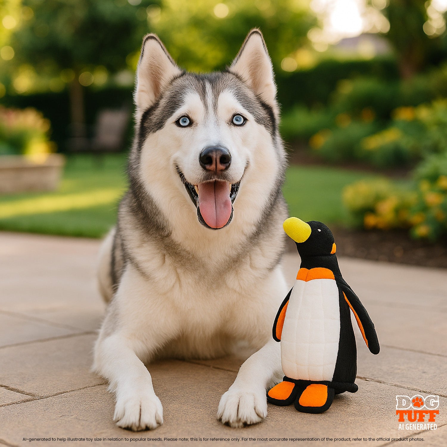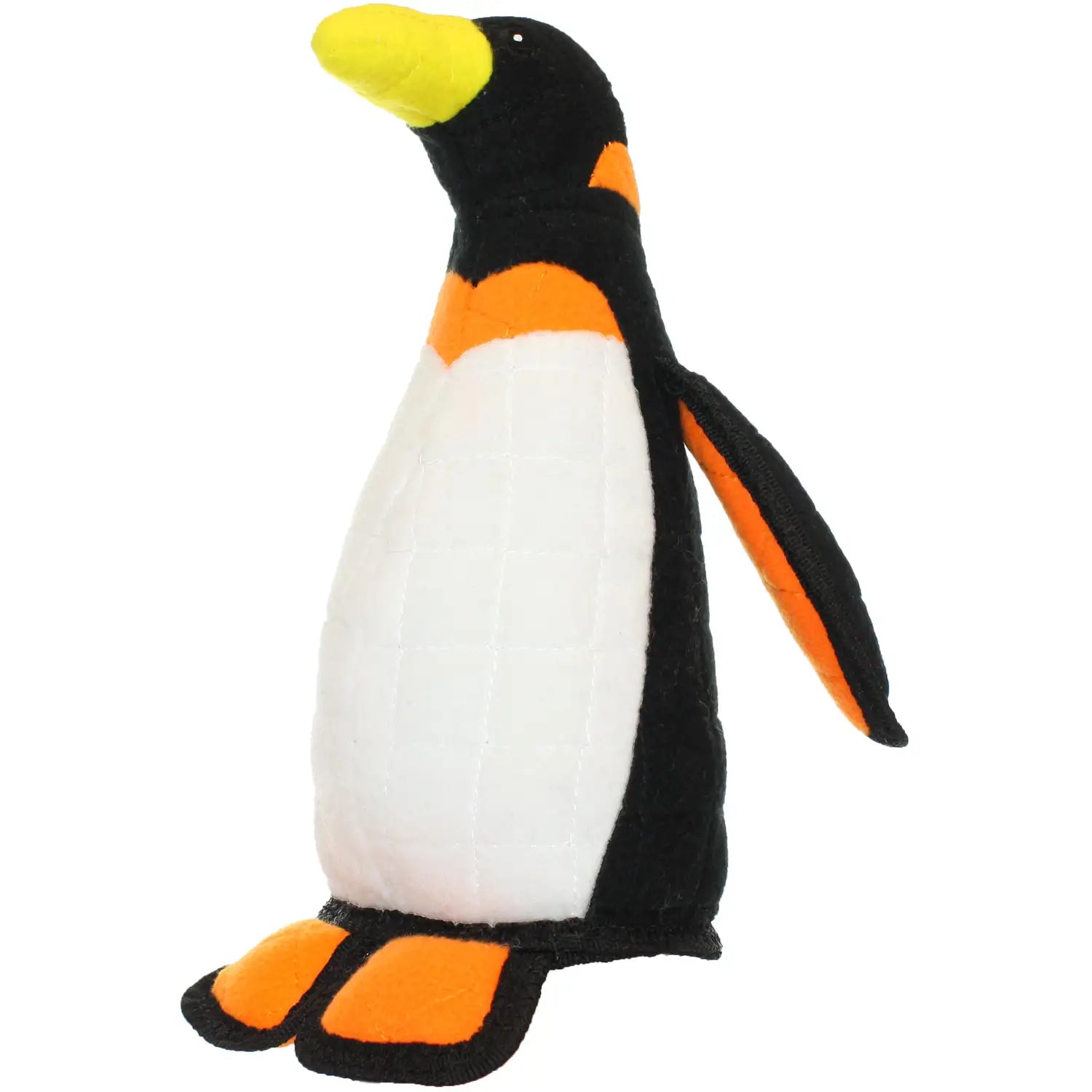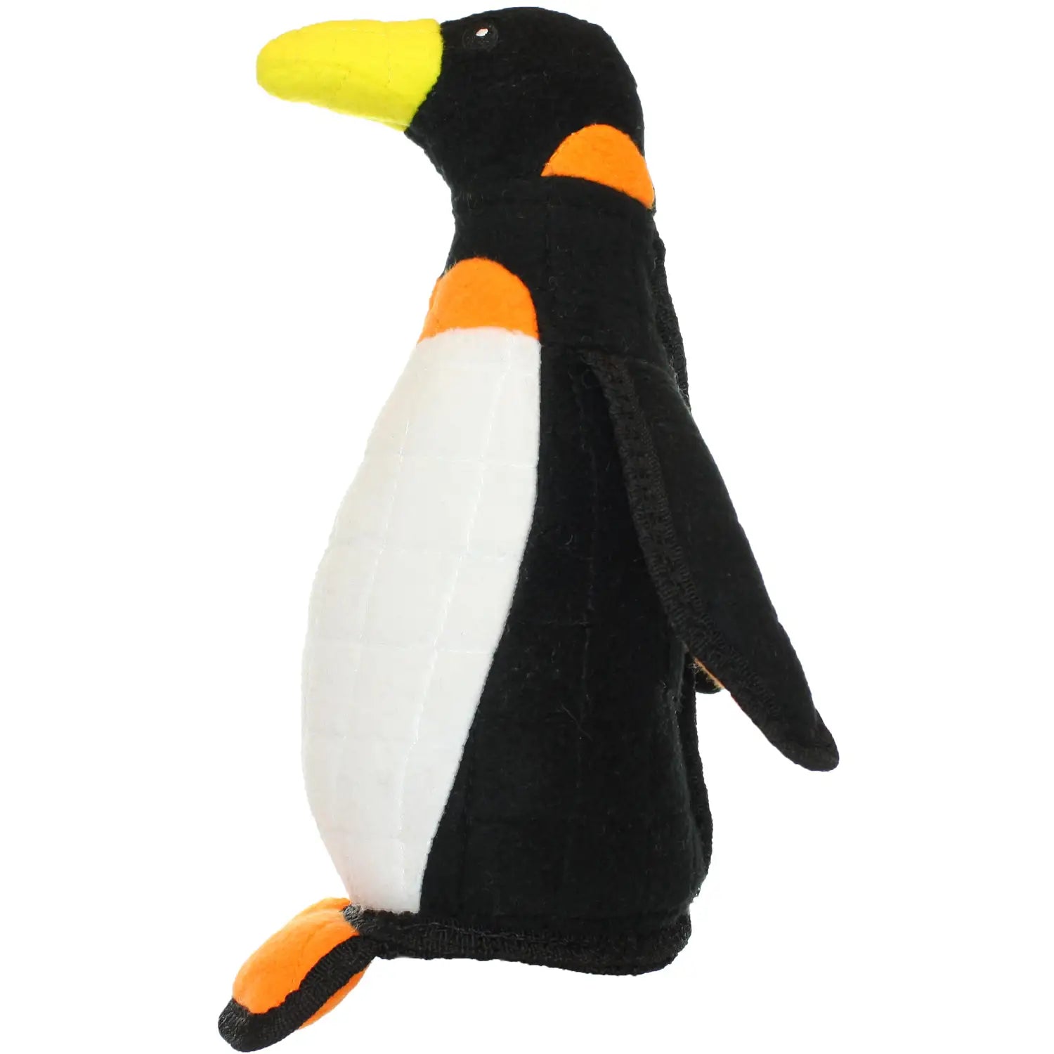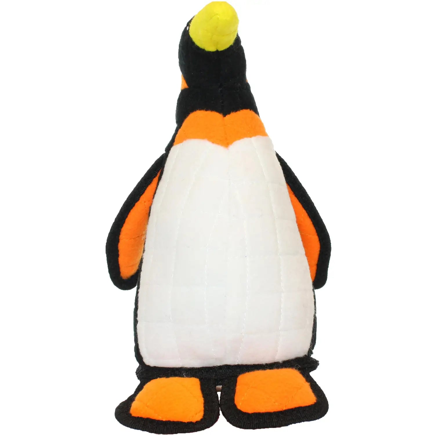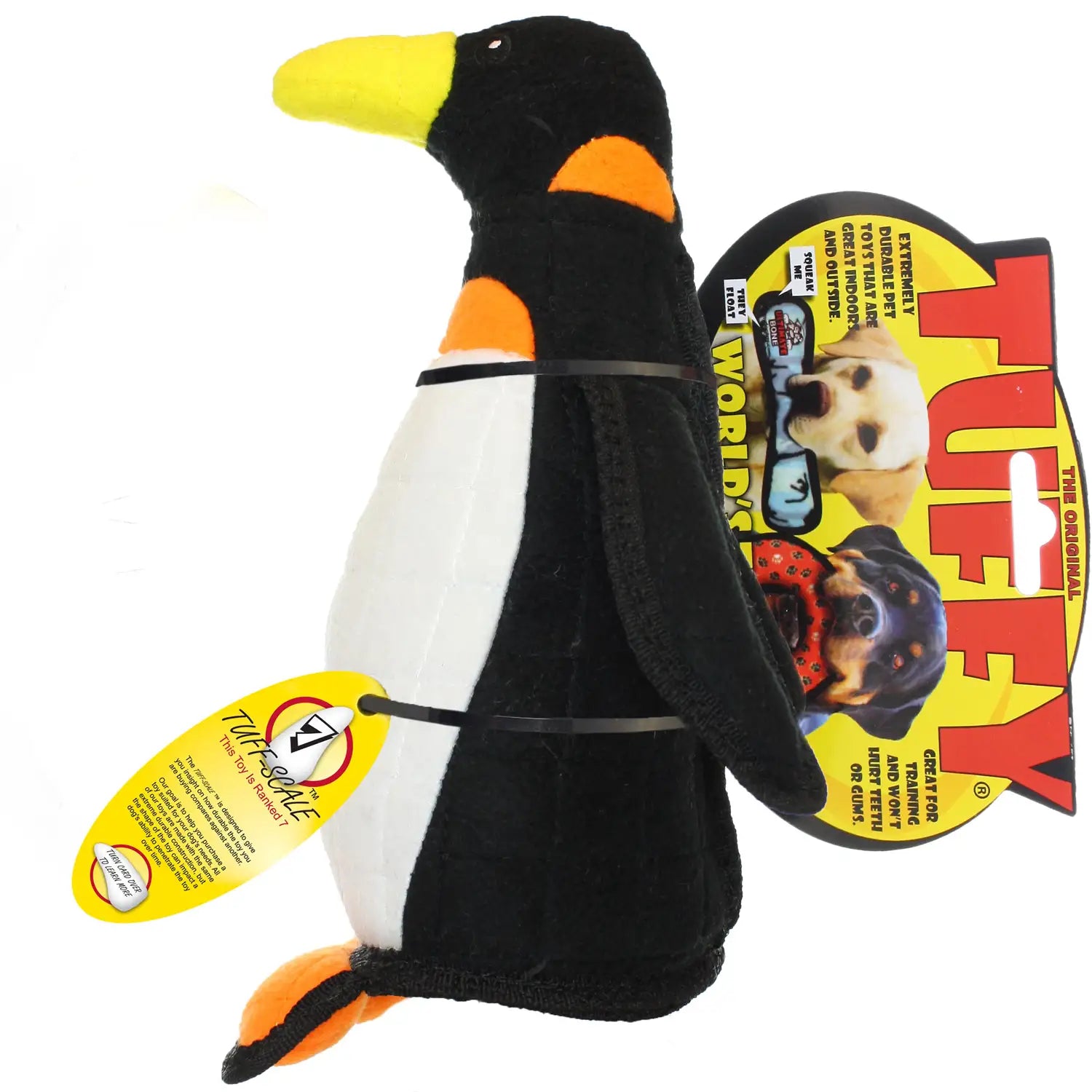 Tuffy Dog Toys Peabody the Penguin- Pull up your britches for this perfectly prim penguin! He'll teach your pooch proper play behavior - a perfect pal for any pup! Easy to toss and Great For Indoors! Machine Washable! And Floats!! -- soft edges won't hurt gums. The Zoo Series are not guaranteed due to their detailed construction. Mr. Peabody contains 1 Squeaker for added enjoyment.
