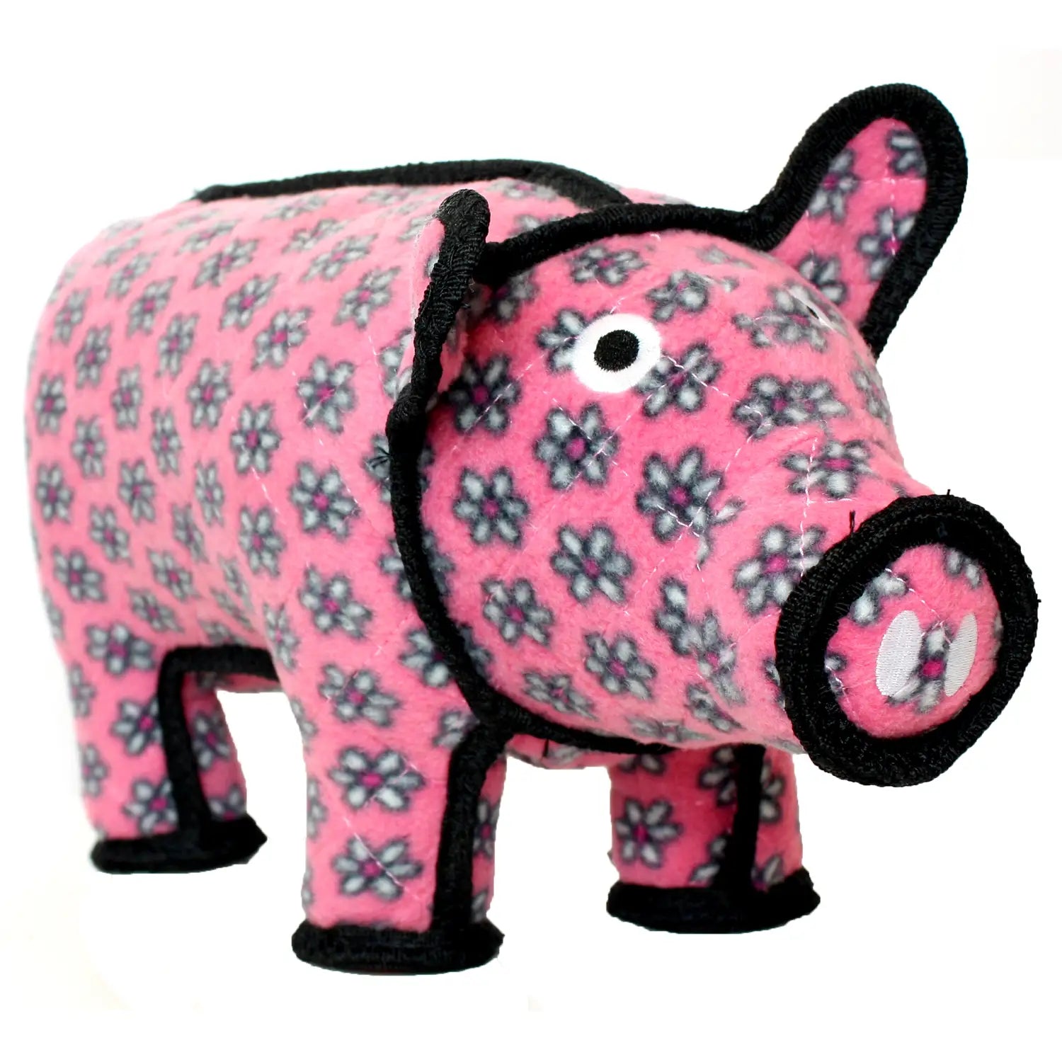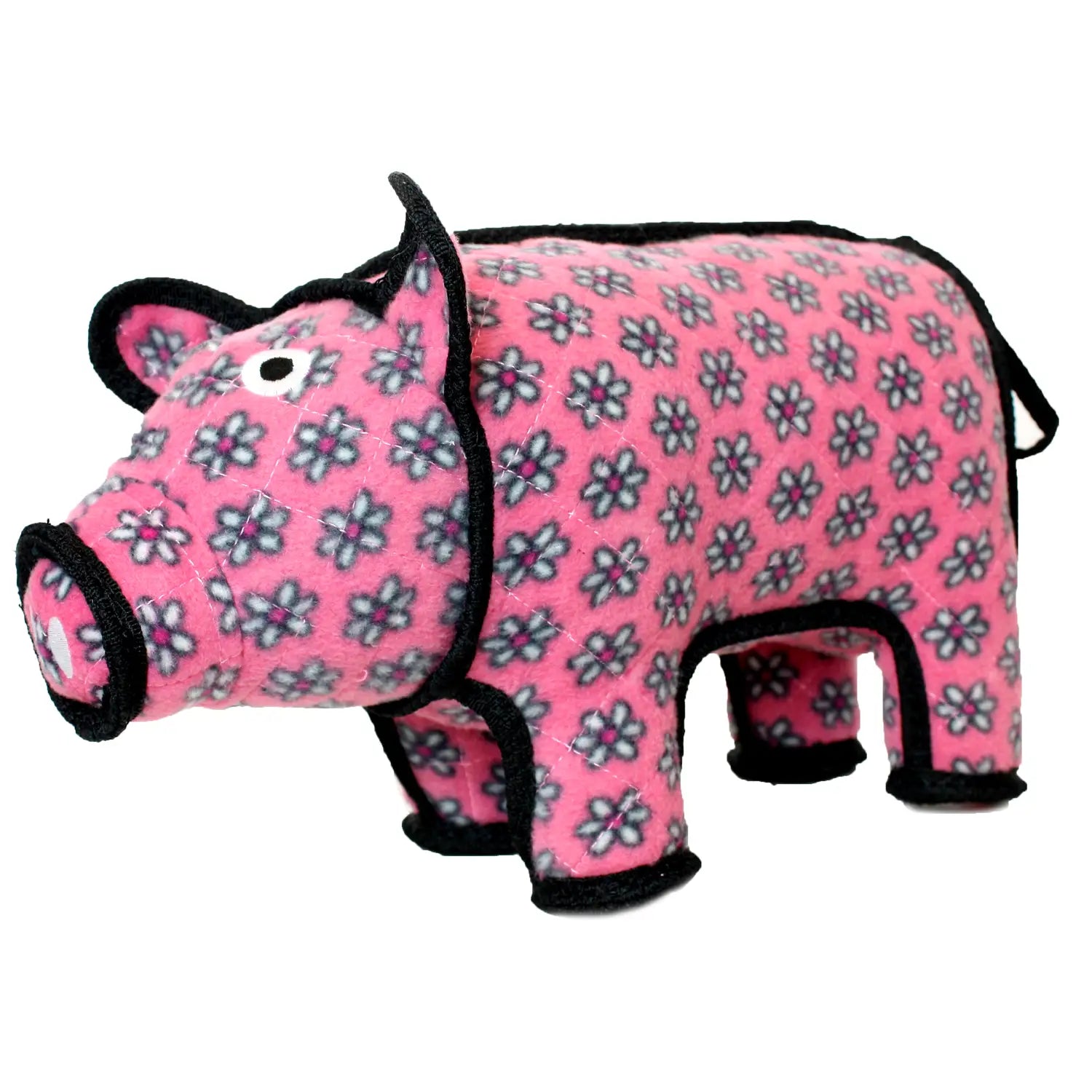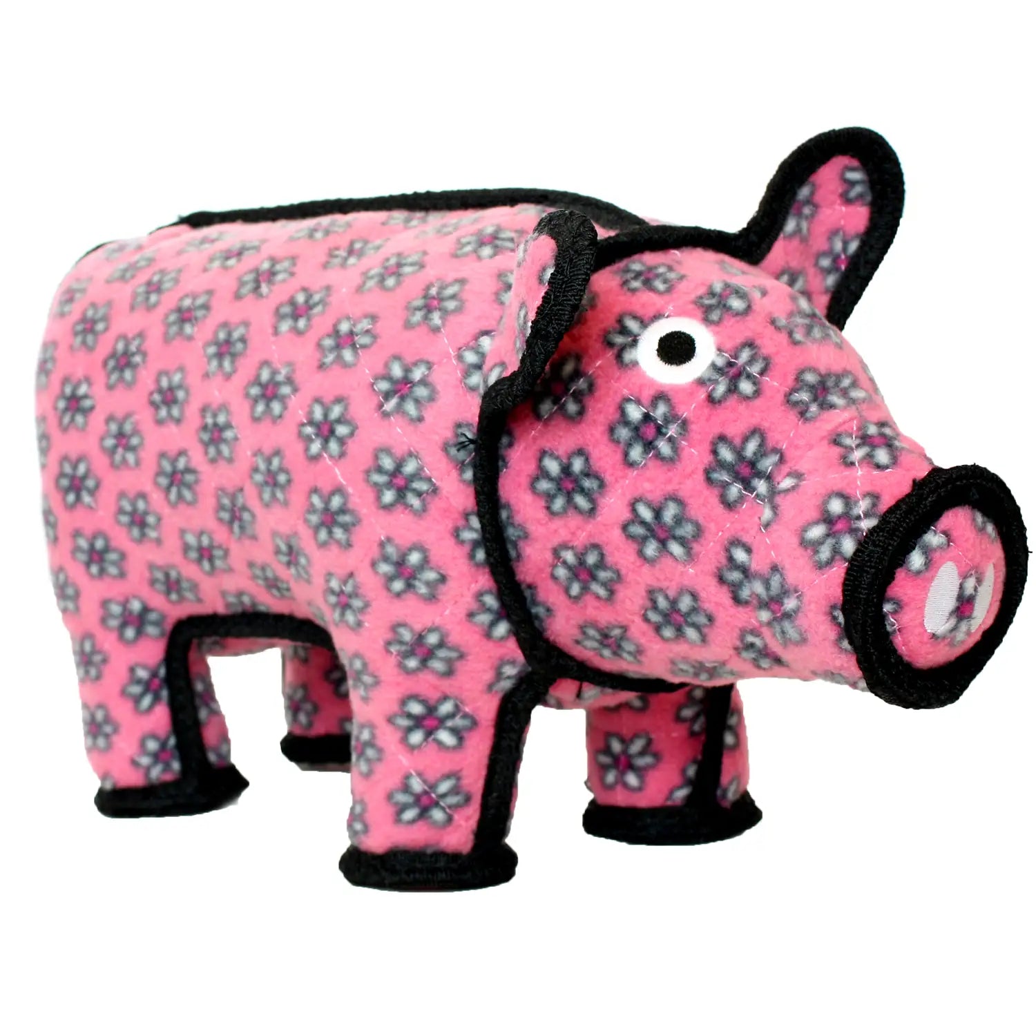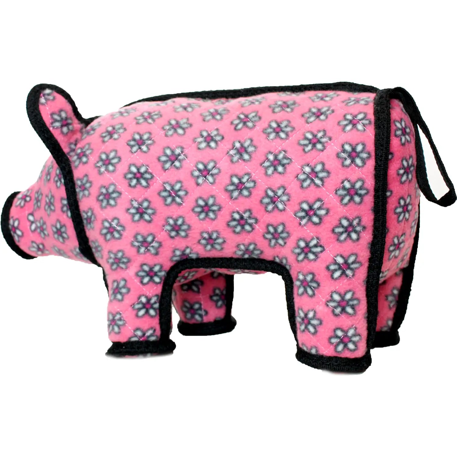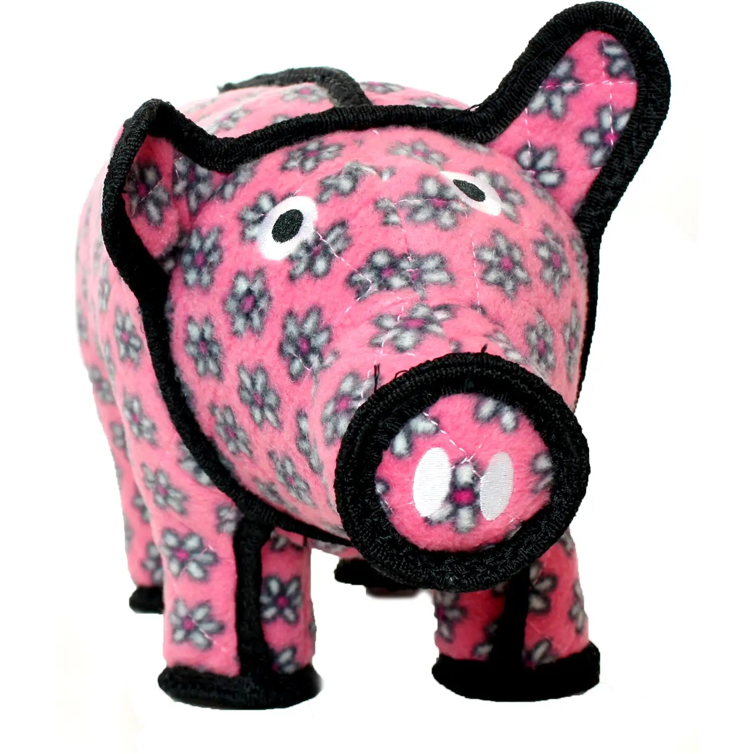 Tuffy Dog Toys Polly the Pig - She's a playful pig with a style all her own! Prancing all day long, you will not find a more perfect playmate for your pup. With little pink flowers and plenty of panache, Polly is sure to please even the most particular and precocious pooches. Tuffy Dog Toys are designed to be Interactive Play toys not chew toys. Click for JR size Polly the Pig.